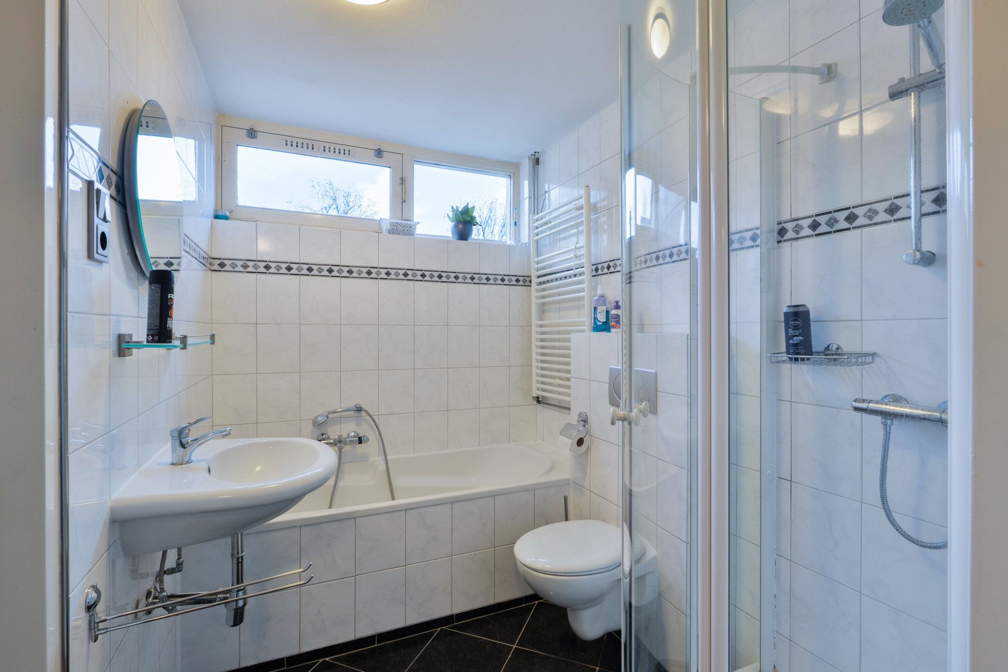 Overloop naar 3 ruime slaapkamers en een volledig betegelde badkamer welke tevens direct toegankelijk is vanuit de ouderslaapkamer. De badkamer beschikt over een ligbad, douchecabine, wastafel , designradiator en toilet.