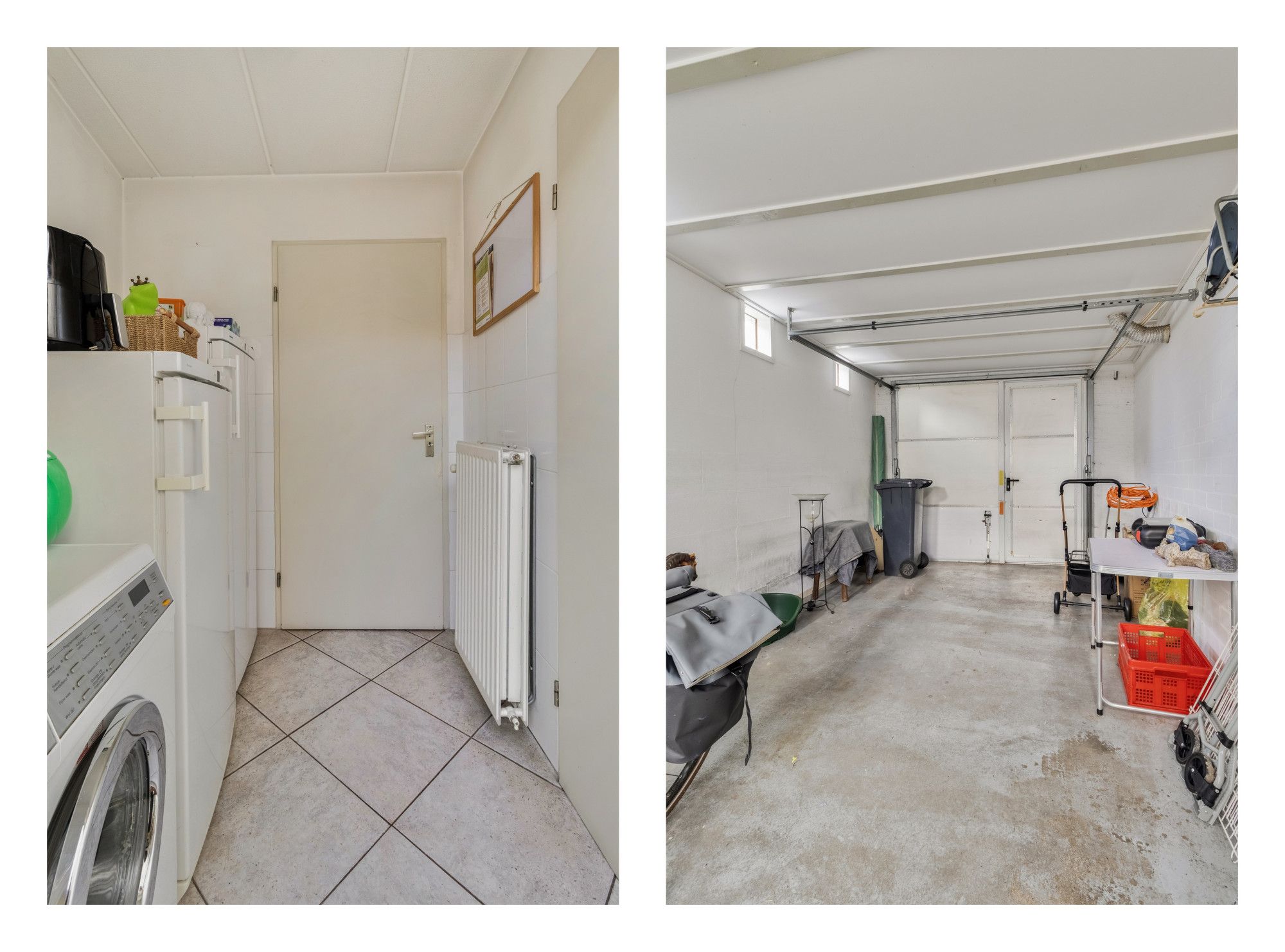 De praktische bijkeuken is voorzien van een witgoedaansluiting en uitstortgootsteen en biedt toegang tot de achtertuin en de aangebouwde garage.