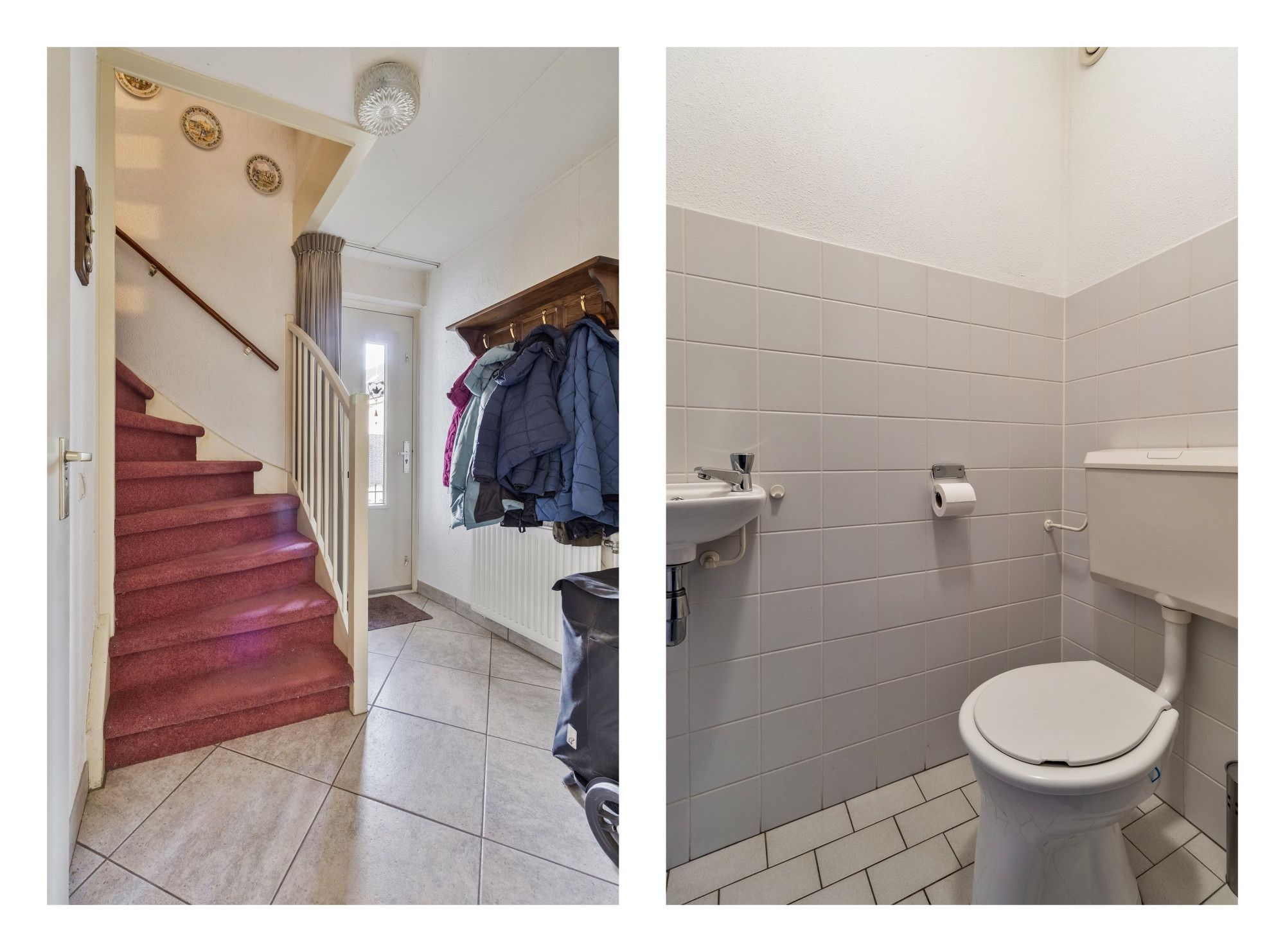 Hal/entree met toilet, meterkast, trap en toegang tot de woonkamer.