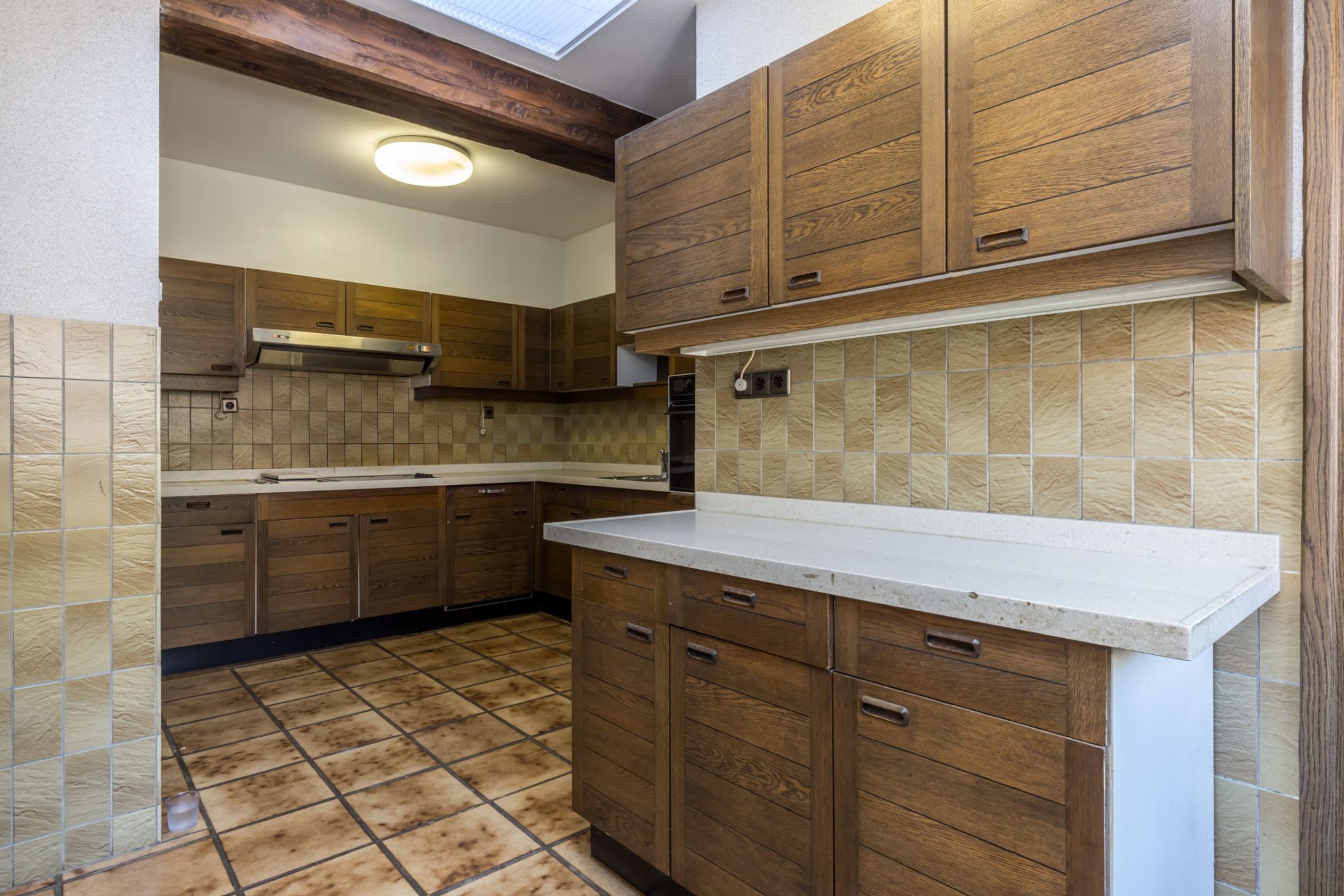 In de keuken is er extra lichtinval via een glaskoepel in het dak. De keuken is voorzien van een natuurstenen blad, een elektrische kookplaat, wasemkap, oven en koelkast. In een inham bevindt zich de witgoedaansluiting.