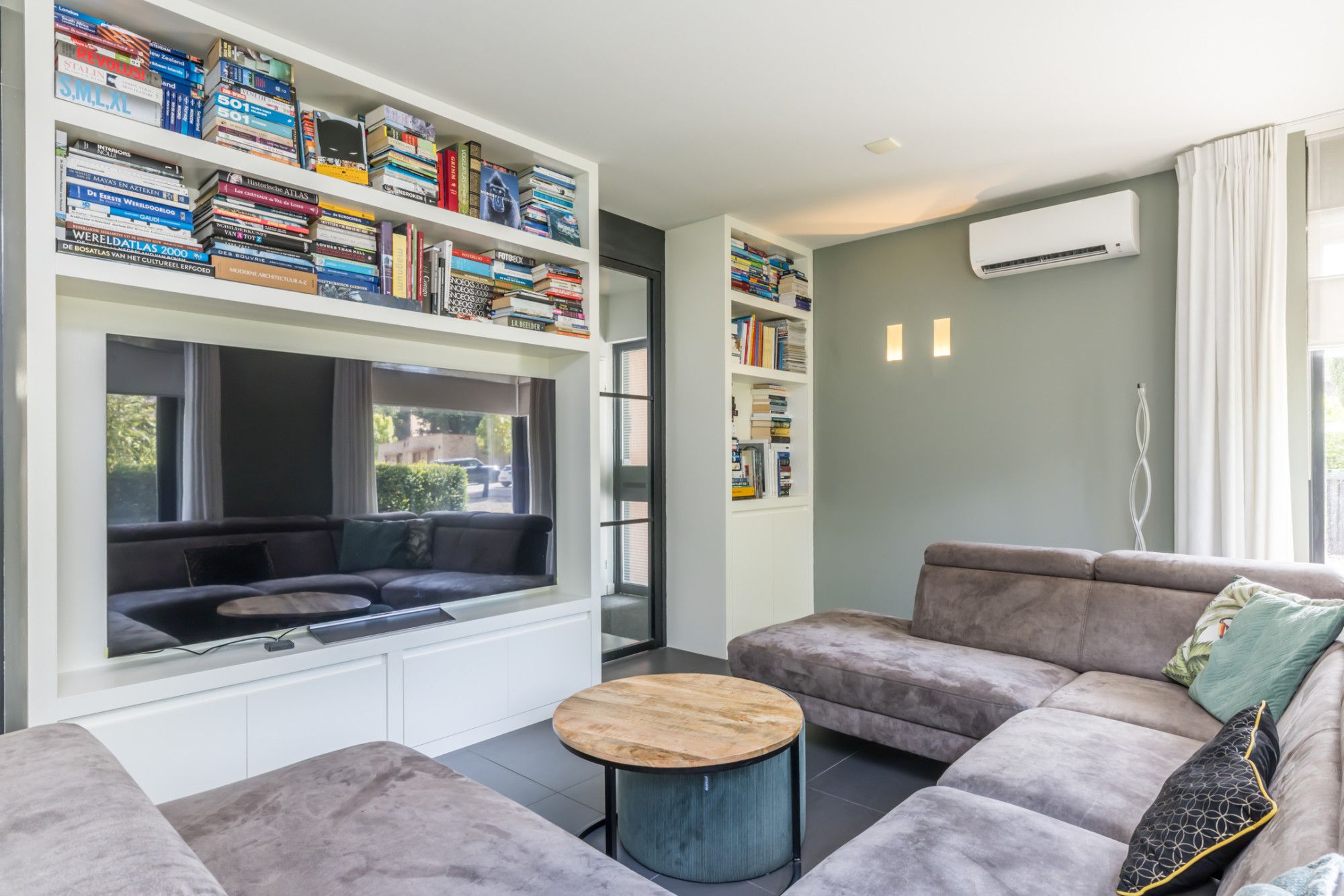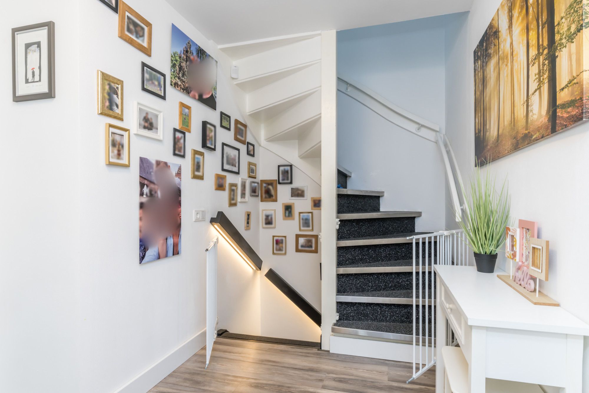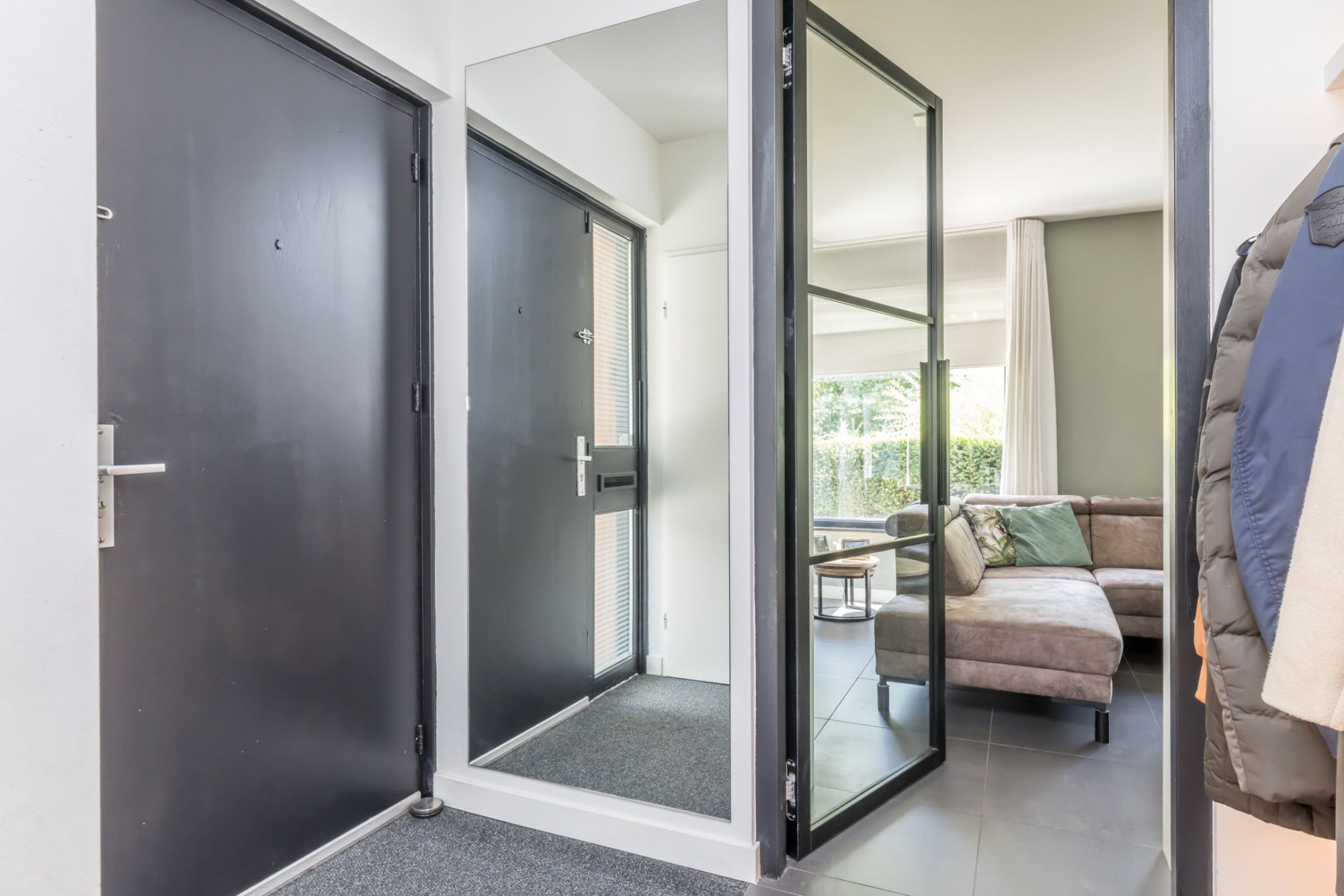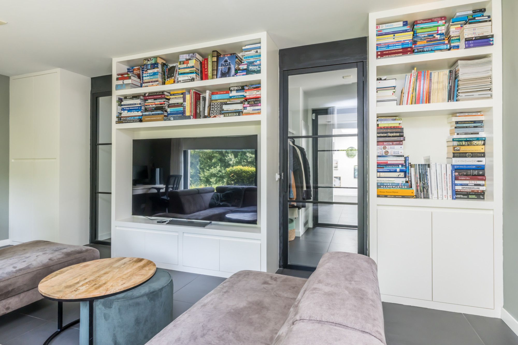 Vanuit de ruime oprit v.v. carport te bereiken entree, de hal-entree biedt toegang tot moderne toiletruimte, living en leefkeuken. De sfeervolle living (6,07 m x 3,50 m) is aan de voorzijde gelegen, is v.v. een op maat gemaakte kastenwand en biedt toegang tot leefkeuken.