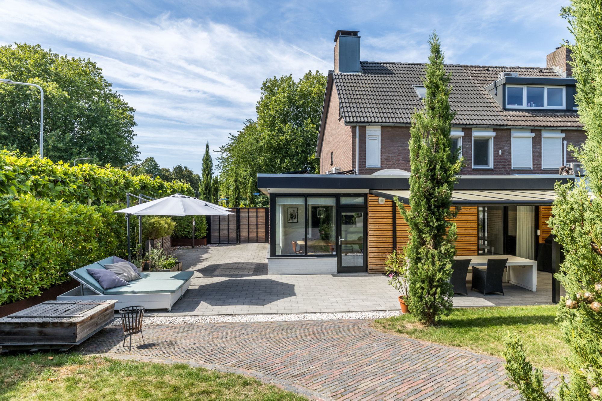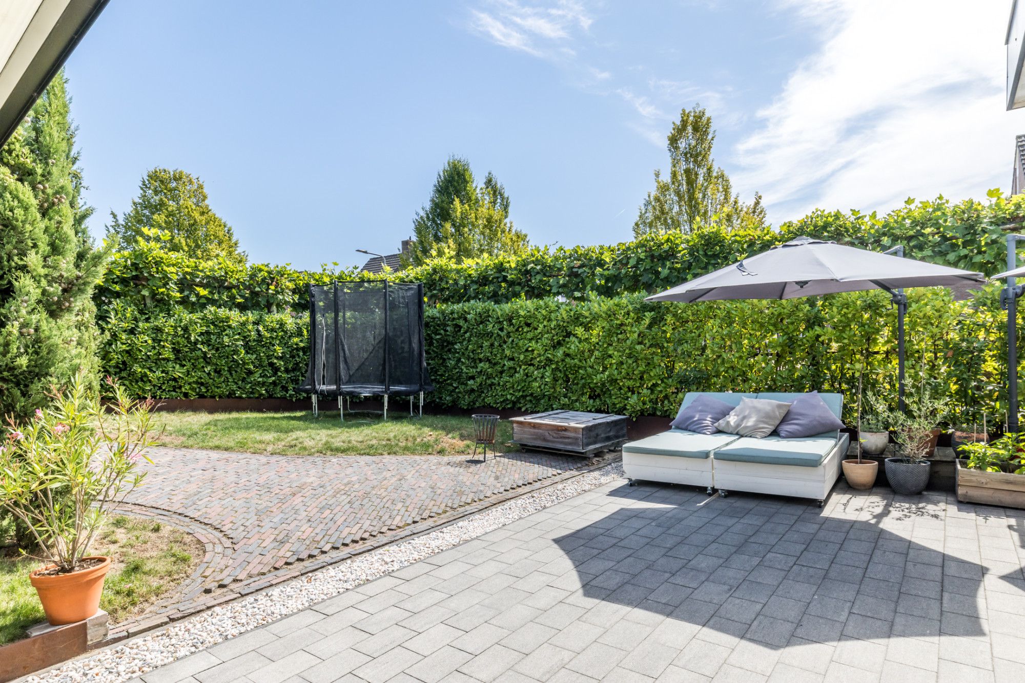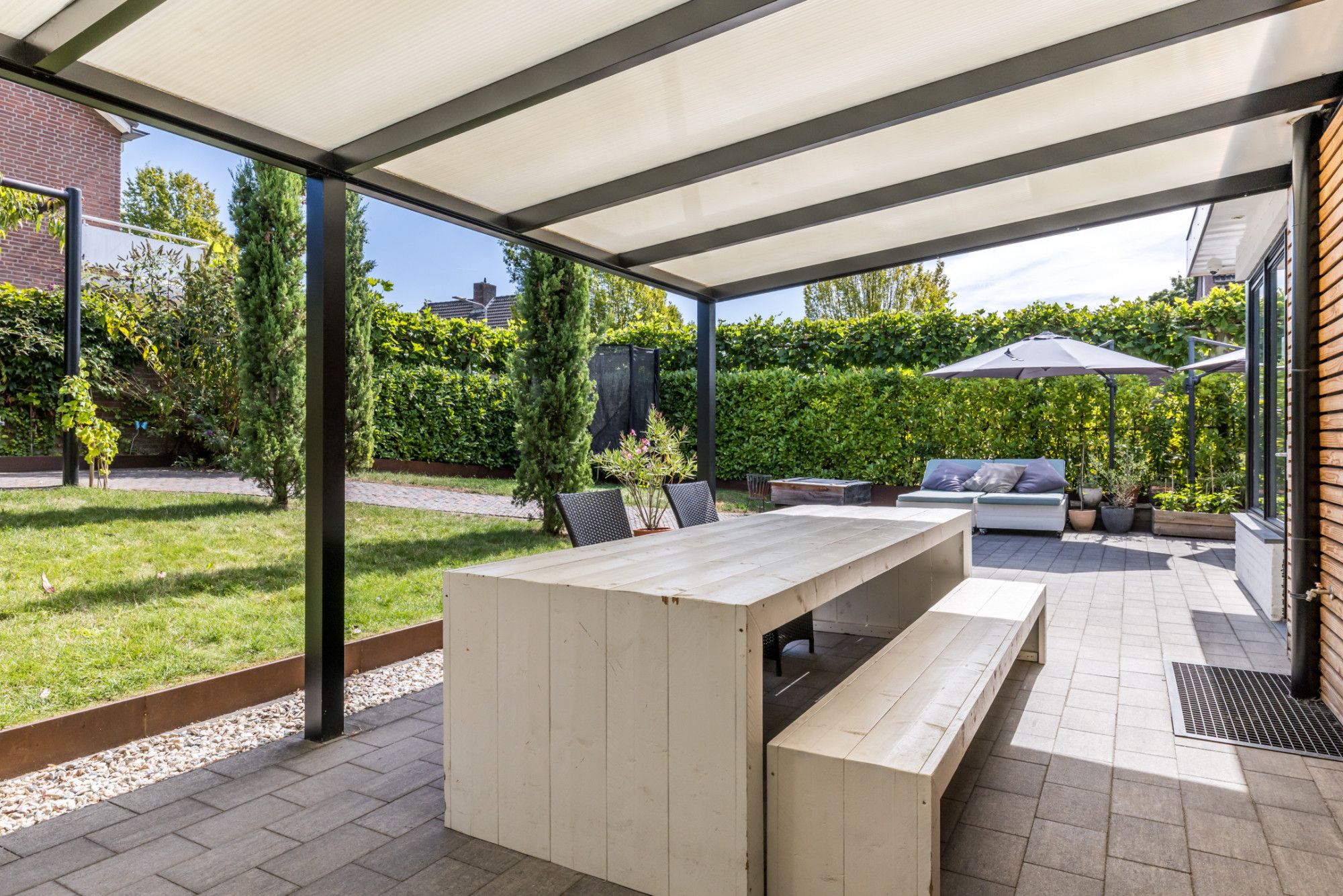 Fraai aangelegde tuin met riante terrasoverkapping, optimale privacy, vrijstaande garage (6,21 m x 3,33 m)