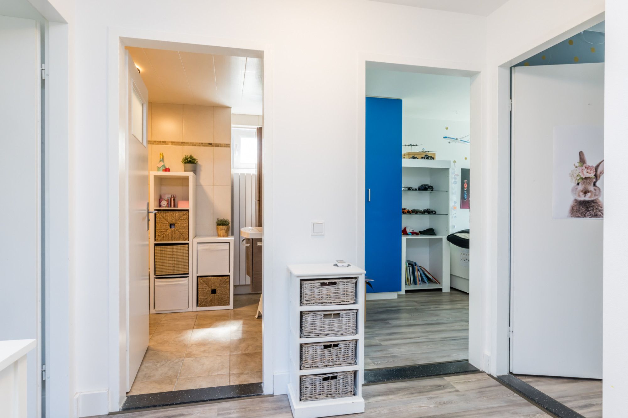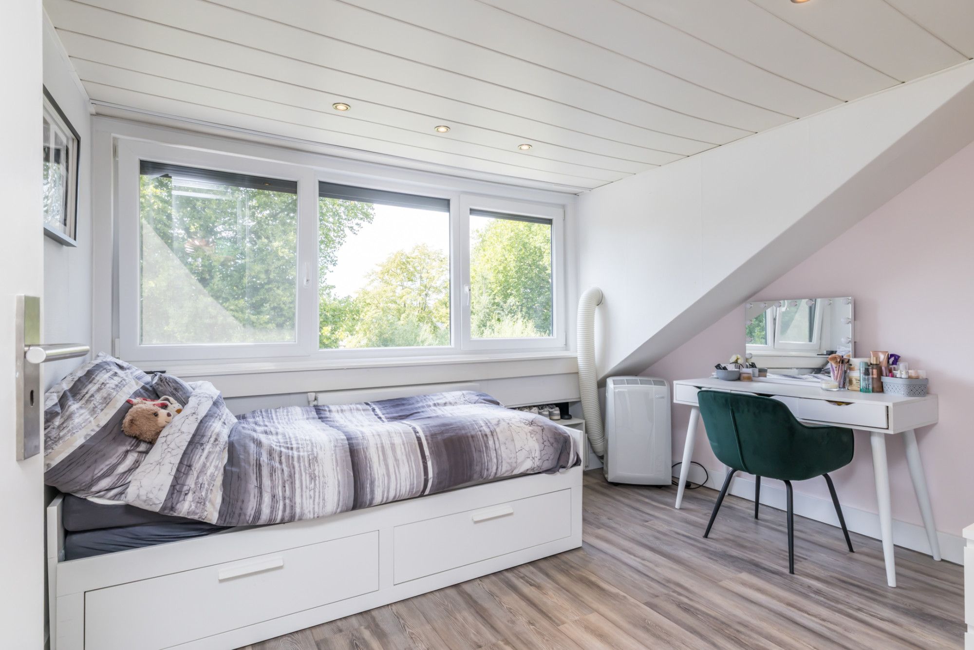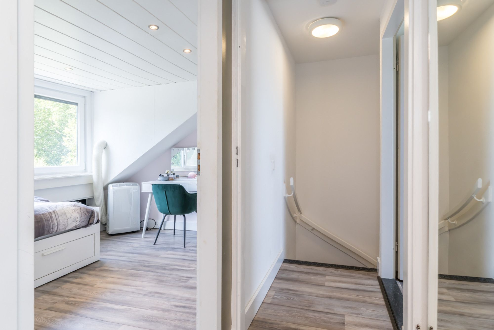 Overloop met toegang tot 3 slaapkamers en moderne badkamer. Slaapkamer I (3,49 m x 3,37 m) is net als slaapkamer II (4,38 m x 2,75 m) aan de voorzijde gelegen. Slaapkamer II heeft toegang tot het balkon. Slaapkamer III (3,51 m x 3,50 m) is aan de achterzijde gelegen en biedt toegang tot inloopkast (2,41 m x 1,89 m). De geheel betegelde badkamer (3,03 m x 2,41 m) met ligbad, vaste wastafel, 2e toilet en douche.