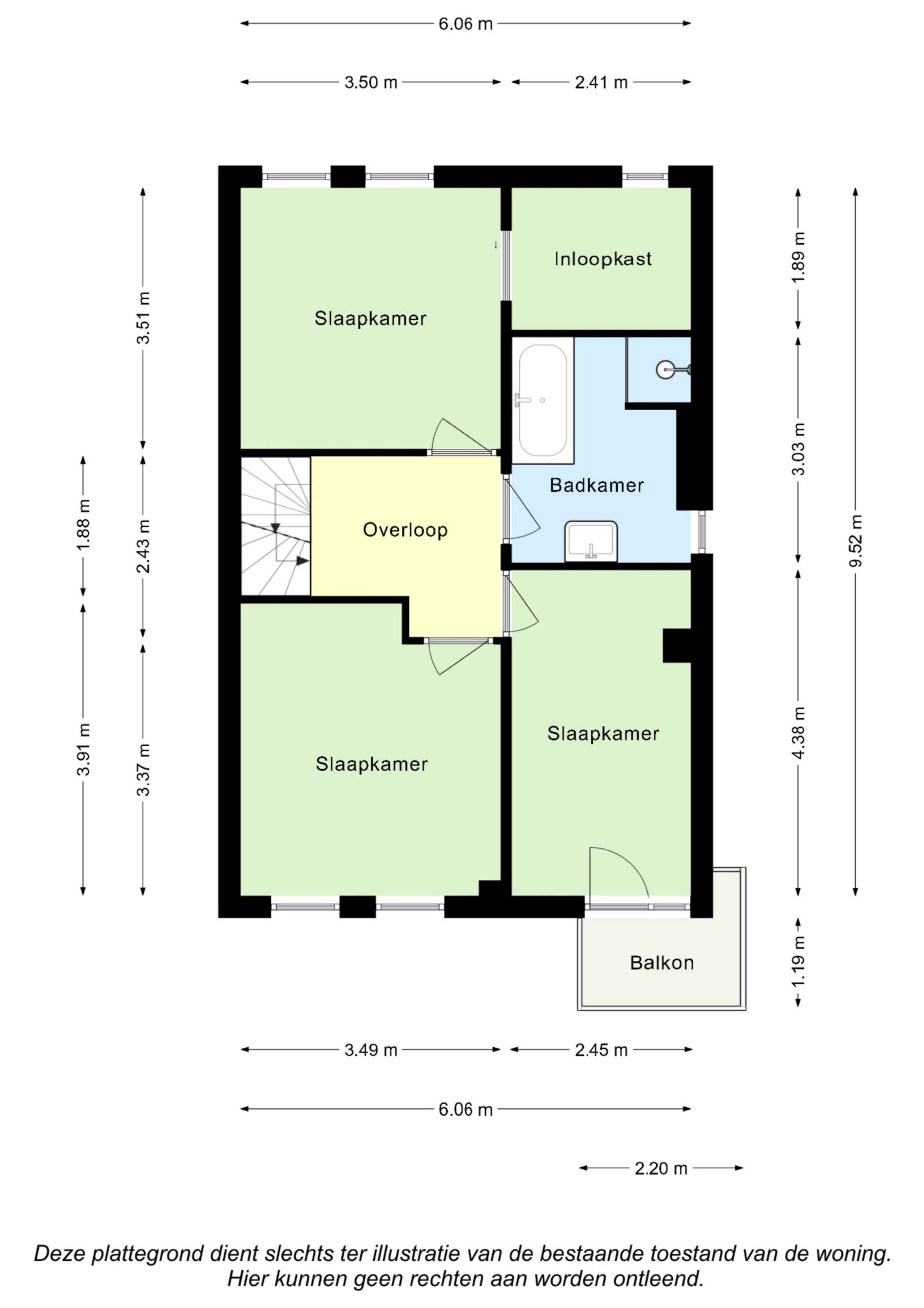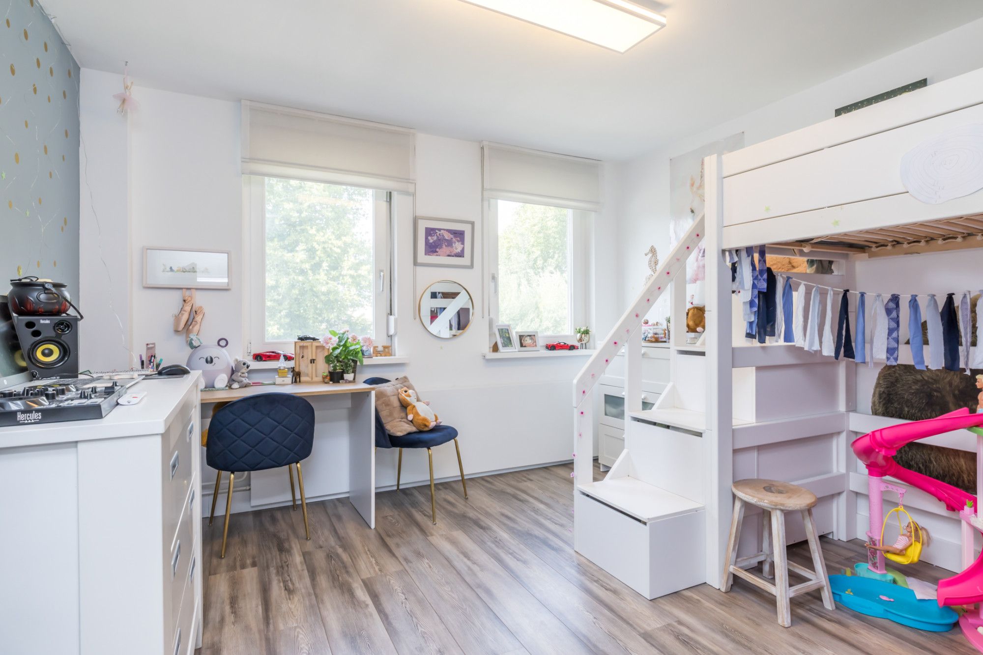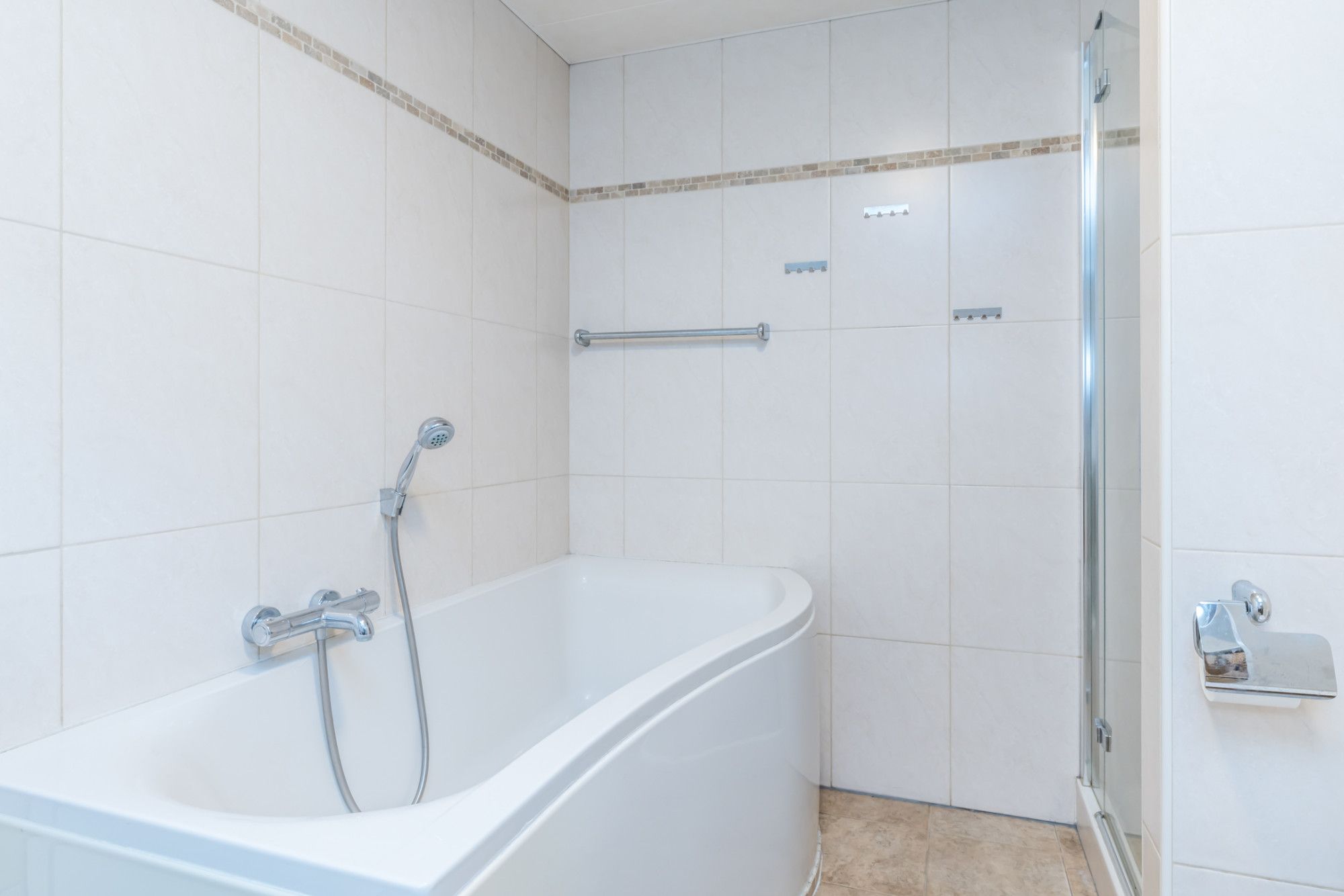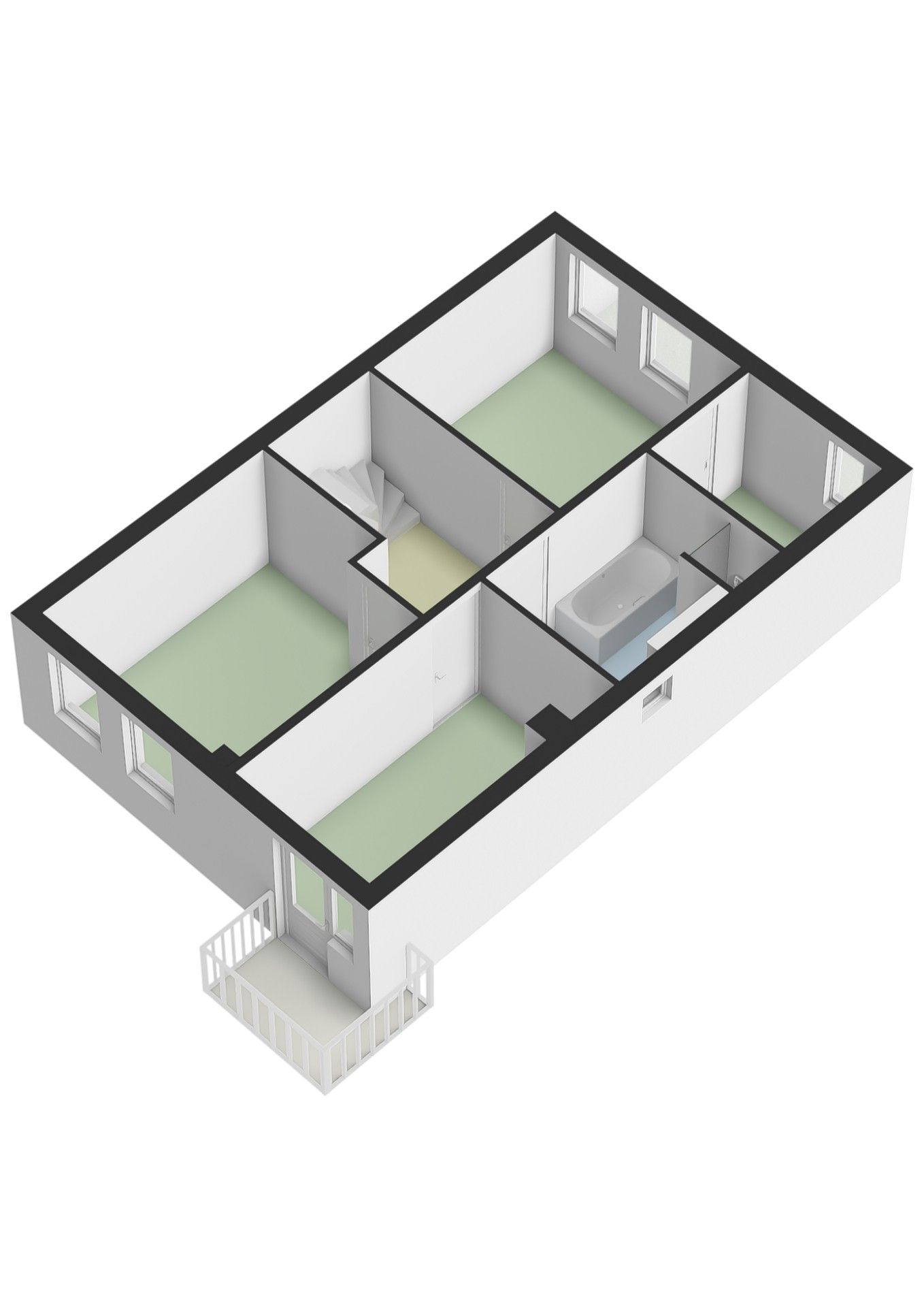 Overloop met toegang tot 3 slaapkamers en moderne badkamer. Slaapkamer I (3,49 m x 3,37 m) is net als slaapkamer II (4,38 m x 2,75 m) aan de voorzijde gelegen. Slaapkamer II heeft toegang tot het balkon. Slaapkamer III (3,51 m x 3,50 m) is aan de achterzijde gelegen en biedt toegang tot inloopkast (2,41 m x 1,89 m). De geheel betegelde badkamer (3,03 m x 2,41 m) met ligbad, vaste wastafel, 2e toilet en douche.