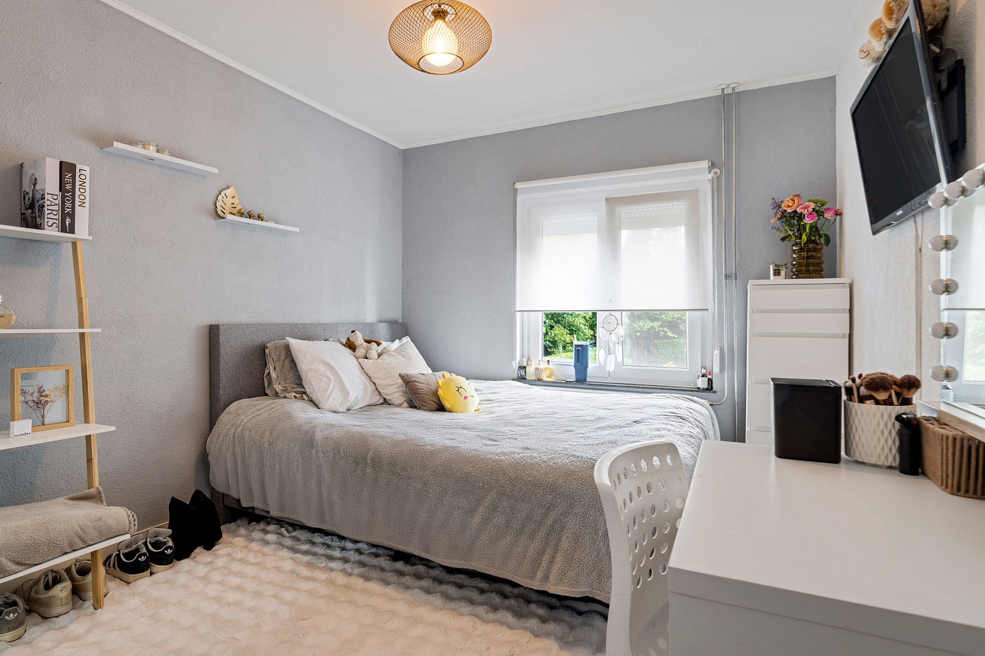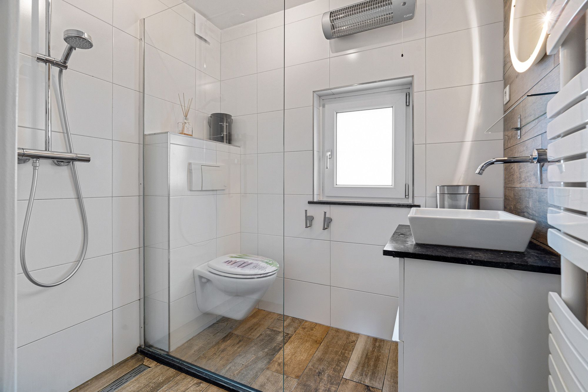 De overloop biedt toegang tot drie fraai afgewerkte slaapkamers en de moderne badkamer, voorzien van een inloopdouche, wastafel met meubel en toilet. De kamers zijn licht, strak afgewerkt en direct te betrekken.