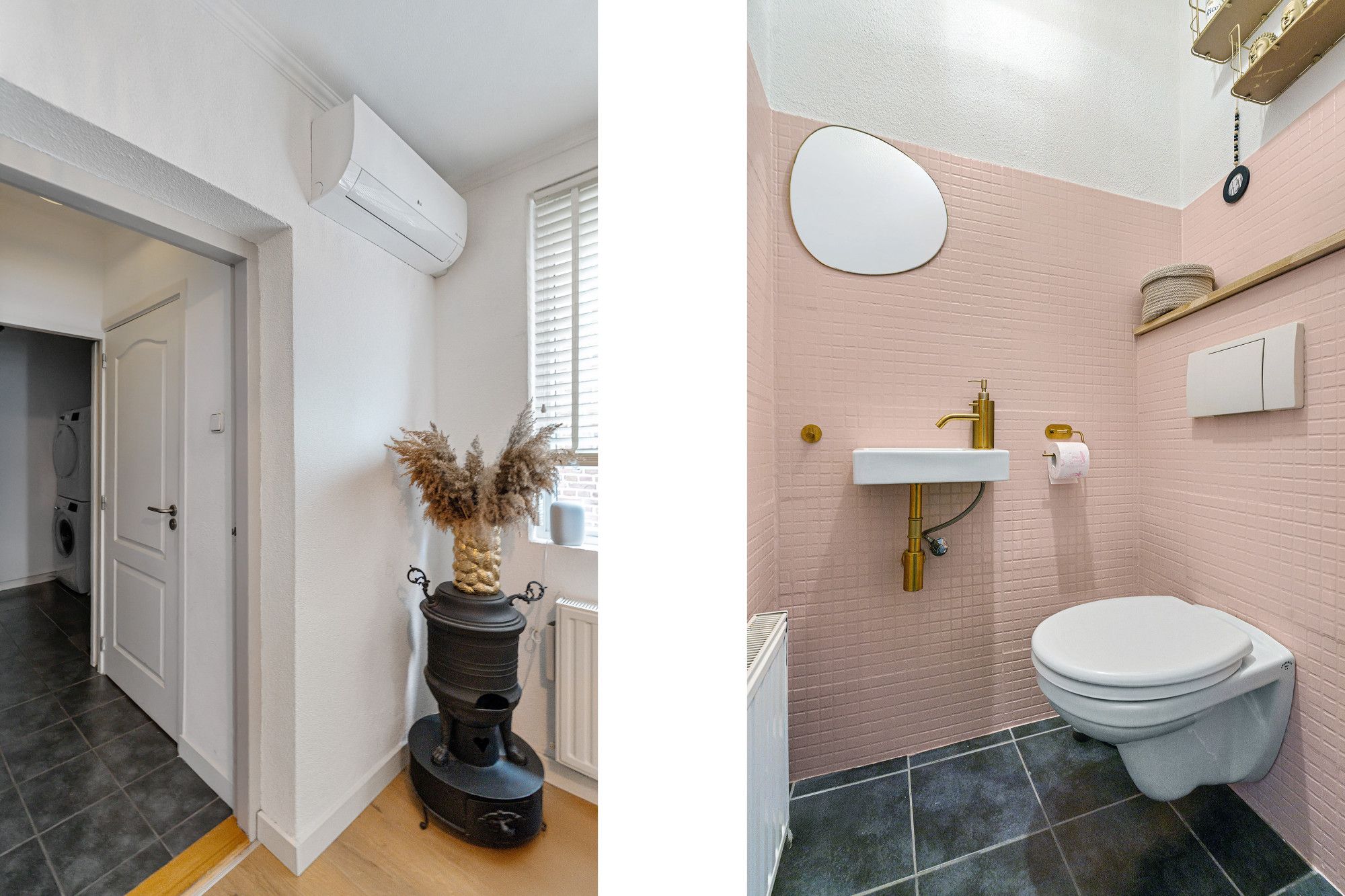 Achter de keuken bevindt zich een kleine hal met toegang tot het toilet met fonteintje en de wasruimte met witgoedaansluitingen.