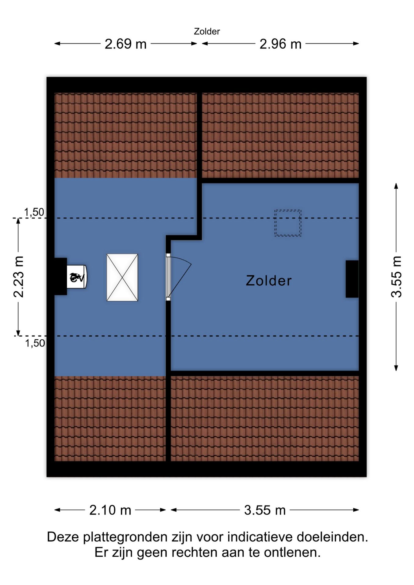 De zolder is te bereiken middels een vlizotrap vanuit de overloop. De bergzolder beschikt over een houten dek, een klein dakraampje en een C.V.-installatie (Intergas bj. 2021).