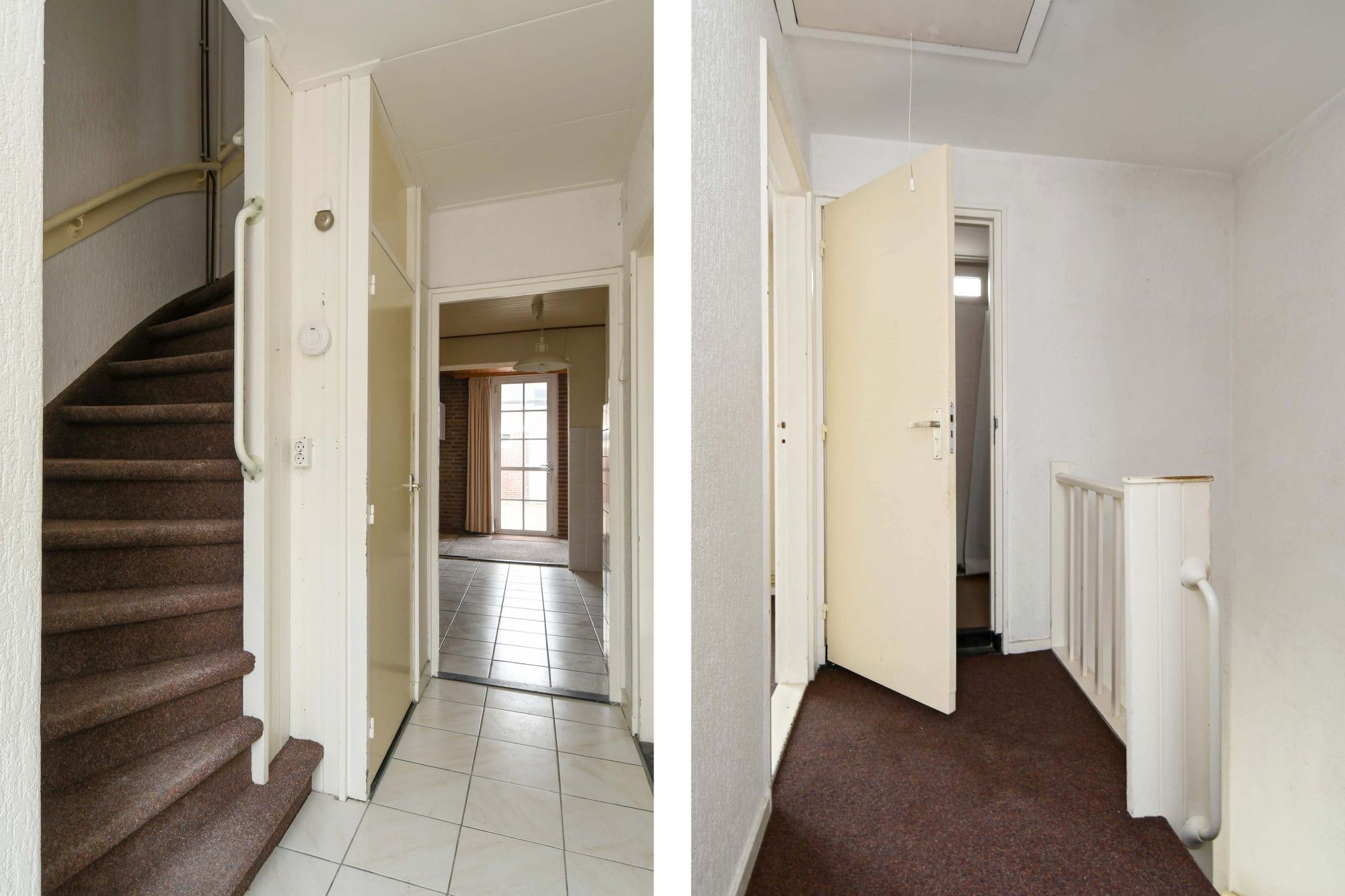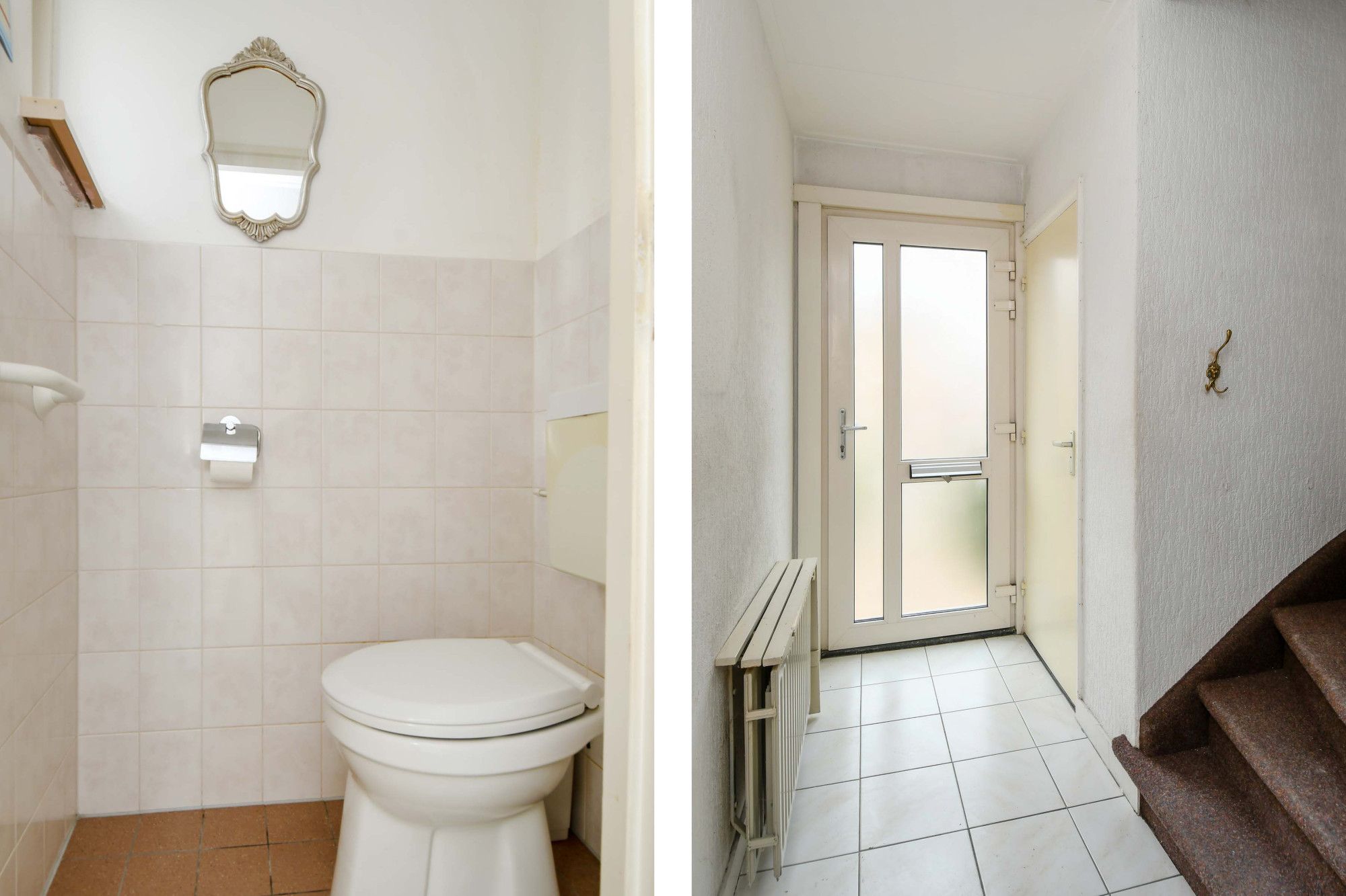 Via de voordeur treedt u de woning binnen. De hal/entree beschikt over een tegelvloer en tevens is hier de trapkast met meterkast gesitueerd. Het apart toilet is voorzien van tegelvloer, staand toilet en wastafeltje.