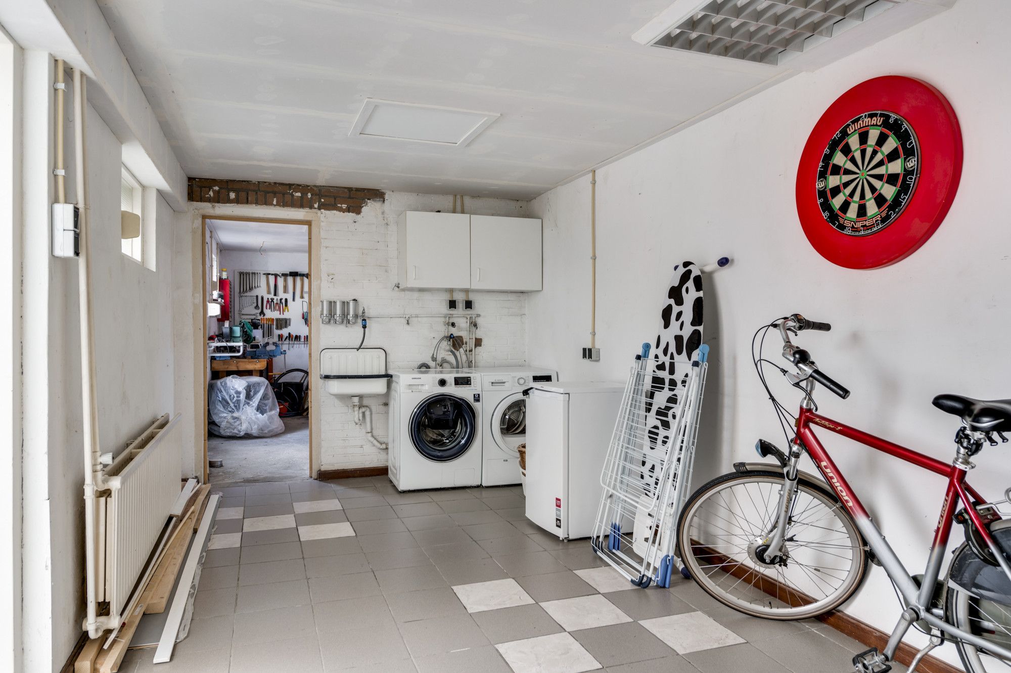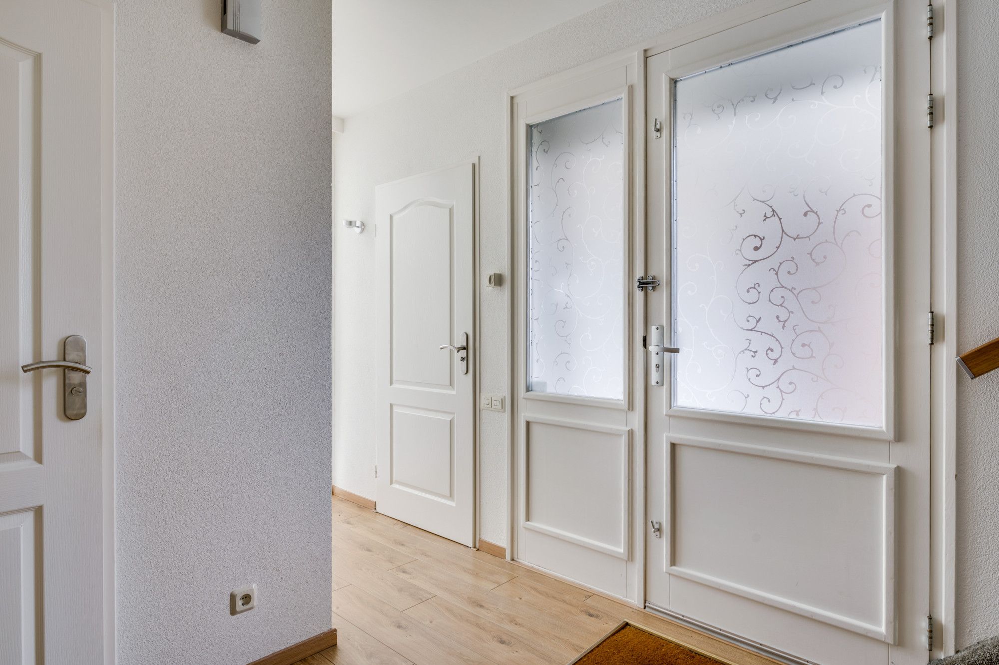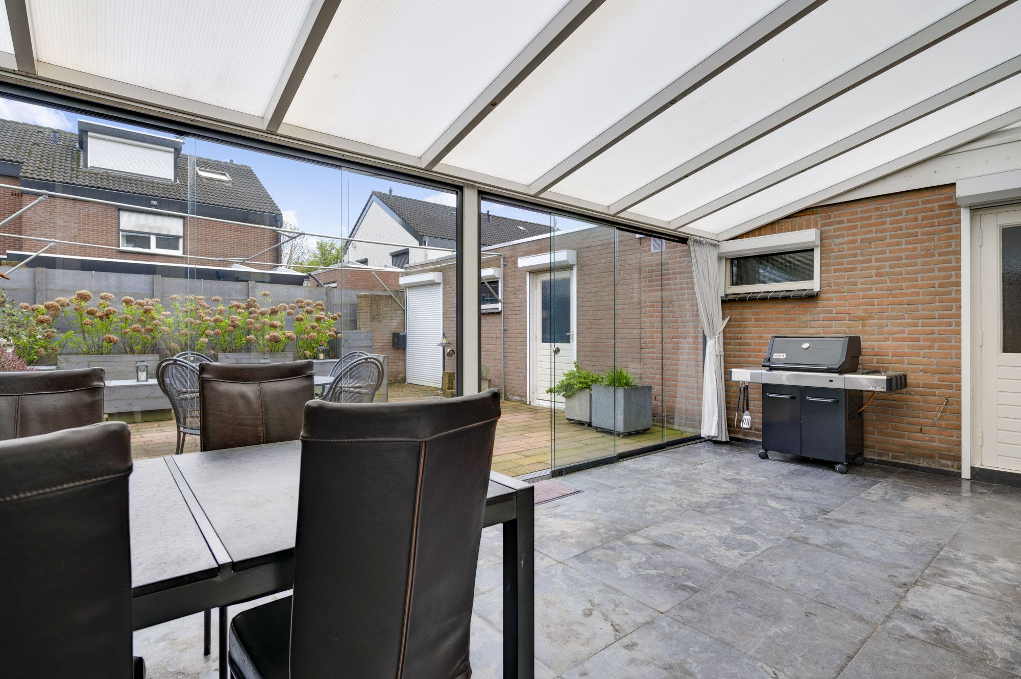 Via een overdekte entree is de woning te betreden. De ruime ontvangsthal beschikt over een toiletruimte met toilet en fonteintje en meterkast (met elektrische groepen) en biedt toegang tot de inpandig bereikbare garage/hobbyruimte, de trapopgang naar de eerste verdieping en de praktische trapkast. De hal biedt tevens toegang tot de royale L-vormige woonkamer met voldoende ruimte voor een zit- en eetgedeelte en is uitgerust met een fraaie laminaatvloer welke doorloopt in de keuken. De keuken met een moderne combinatie in hoekopstelling beschikt over de navolgende apparatuur; 5-pits gasfornuis, afzuigkap, combi-oven en koelkast en geeft middels openslaande deuren toegang tot de riante serre/overkapping. Deze ruimte met een mooie tegelvloer is dankzij de glazen schuifpanelen het hele jaar door een prettige ruimte om in te verblijven. Vanuit hier is tevens de garage toegankelijk. De ruime garage met een tegelvloer beschikt over de witgoedaansluitingen, een wasbank, elektra, verwarming en openslaande deuren naar de voorgelegen oprit. Op de begane grond is achter de eerste berging die via de garage en de achtertuin bereikbaar is nog een tweede berging die via de achtertuin toegankelijk is (achter het rolluik).