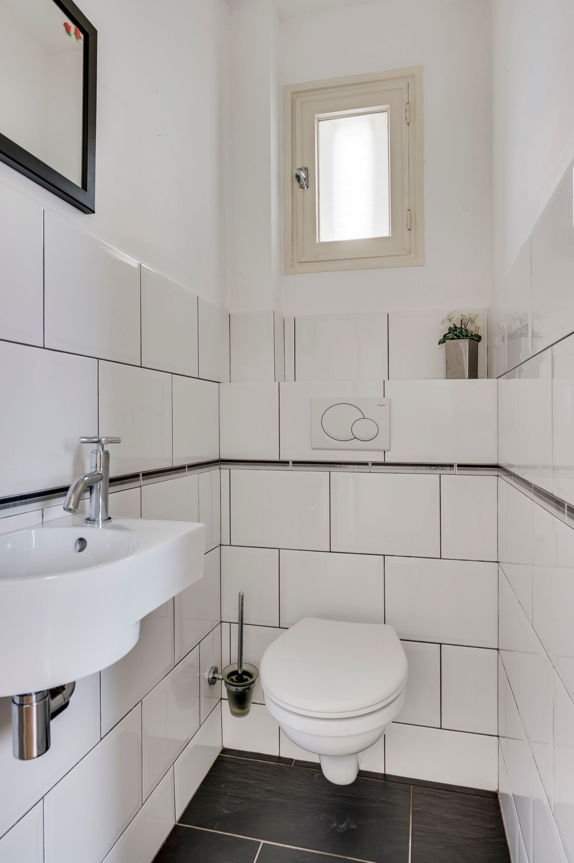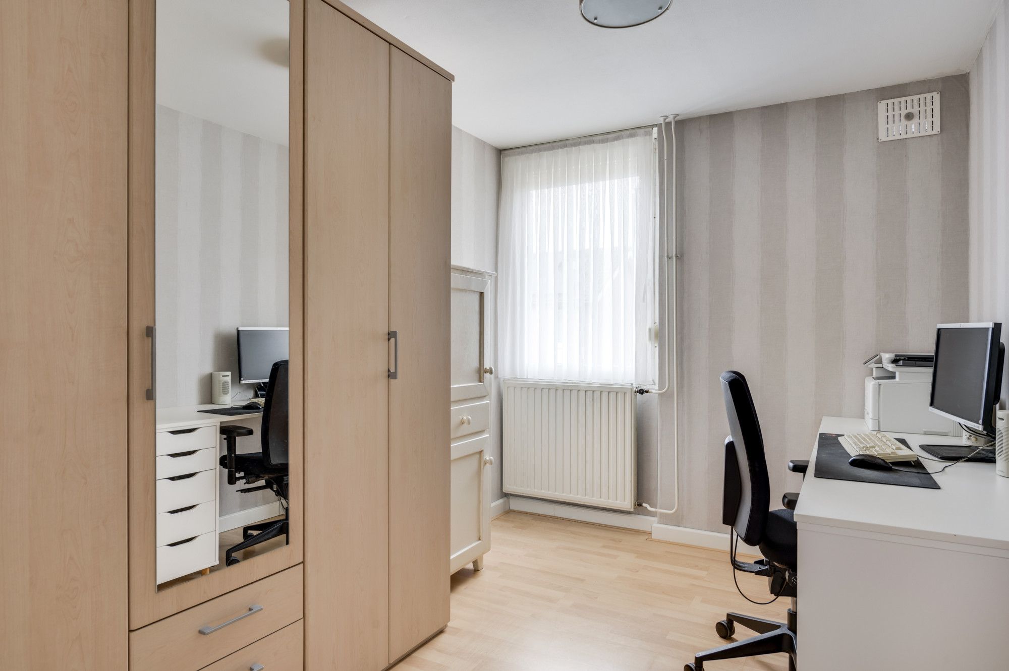 Vanuit de overloop zijn hier de eerste 4 slaapkamers alsmede de badkamer toegankelijk. De geheel betegelde badkamer is uitgerust met een ligbad-/douchecombinatie, toilet en wastafel met meubel, alsmede nog een kast voor badkamerartikelen. De eerste verdieping is met uitzondering van de badkamer voorzien van een laminaatvloer.