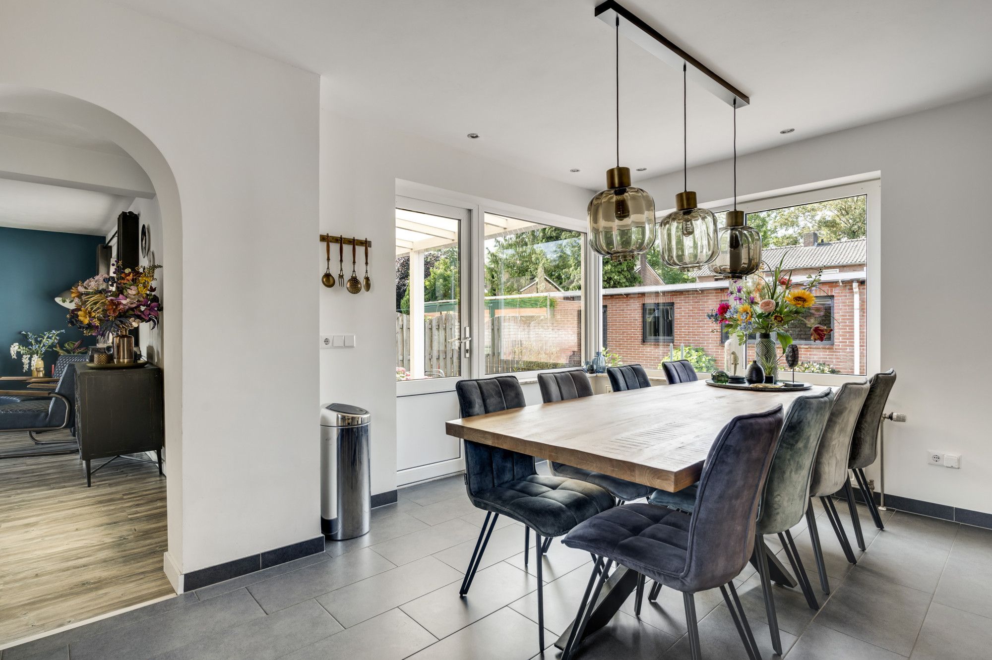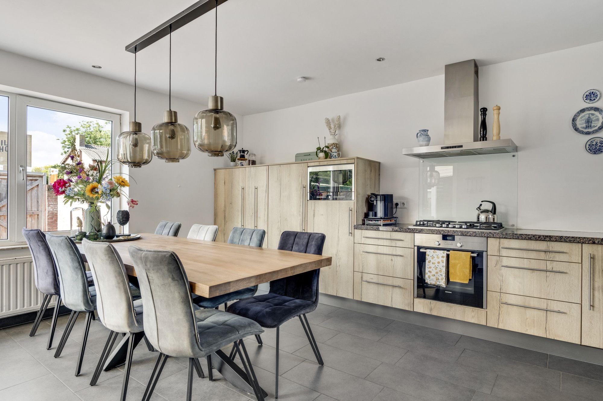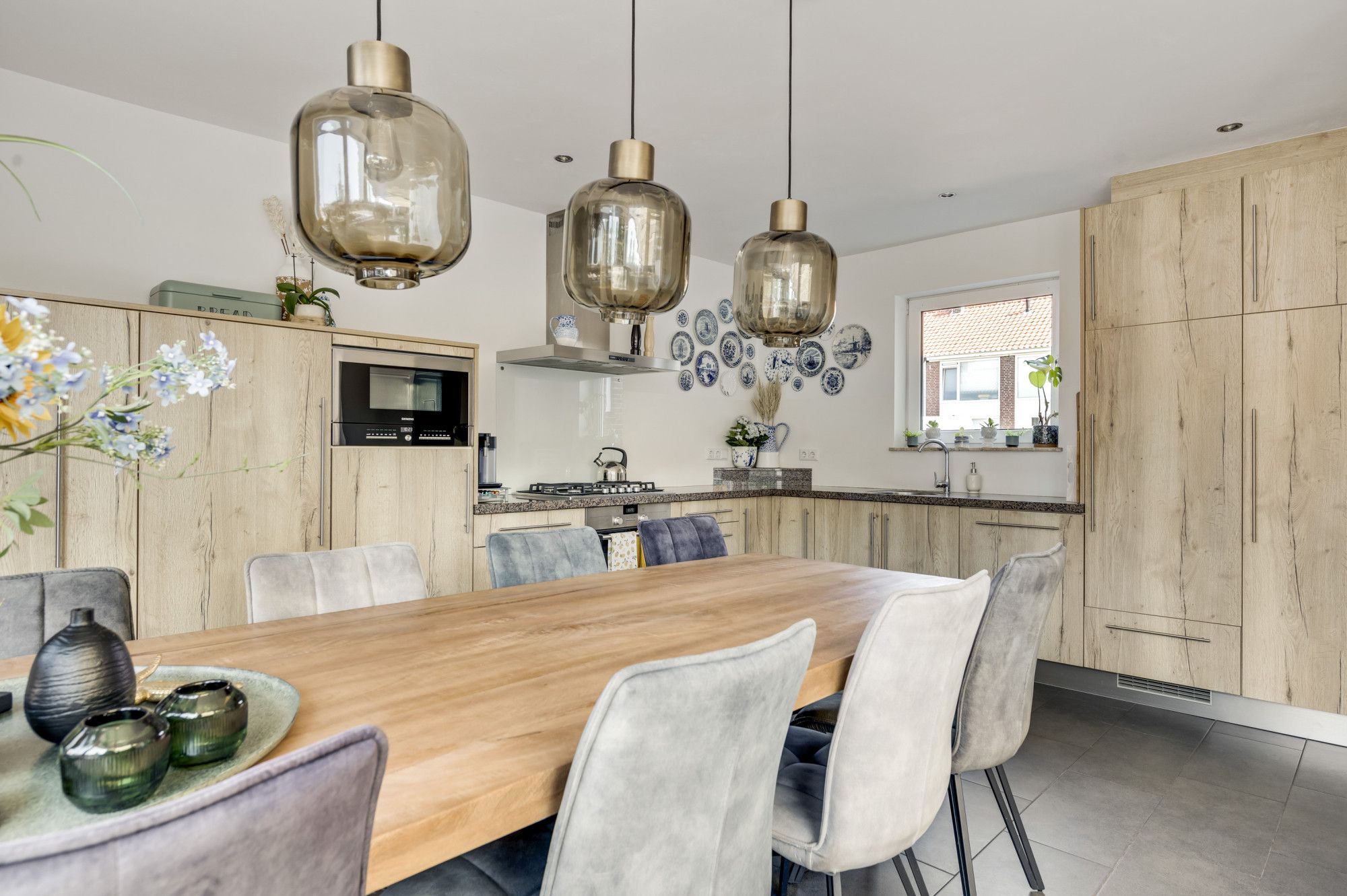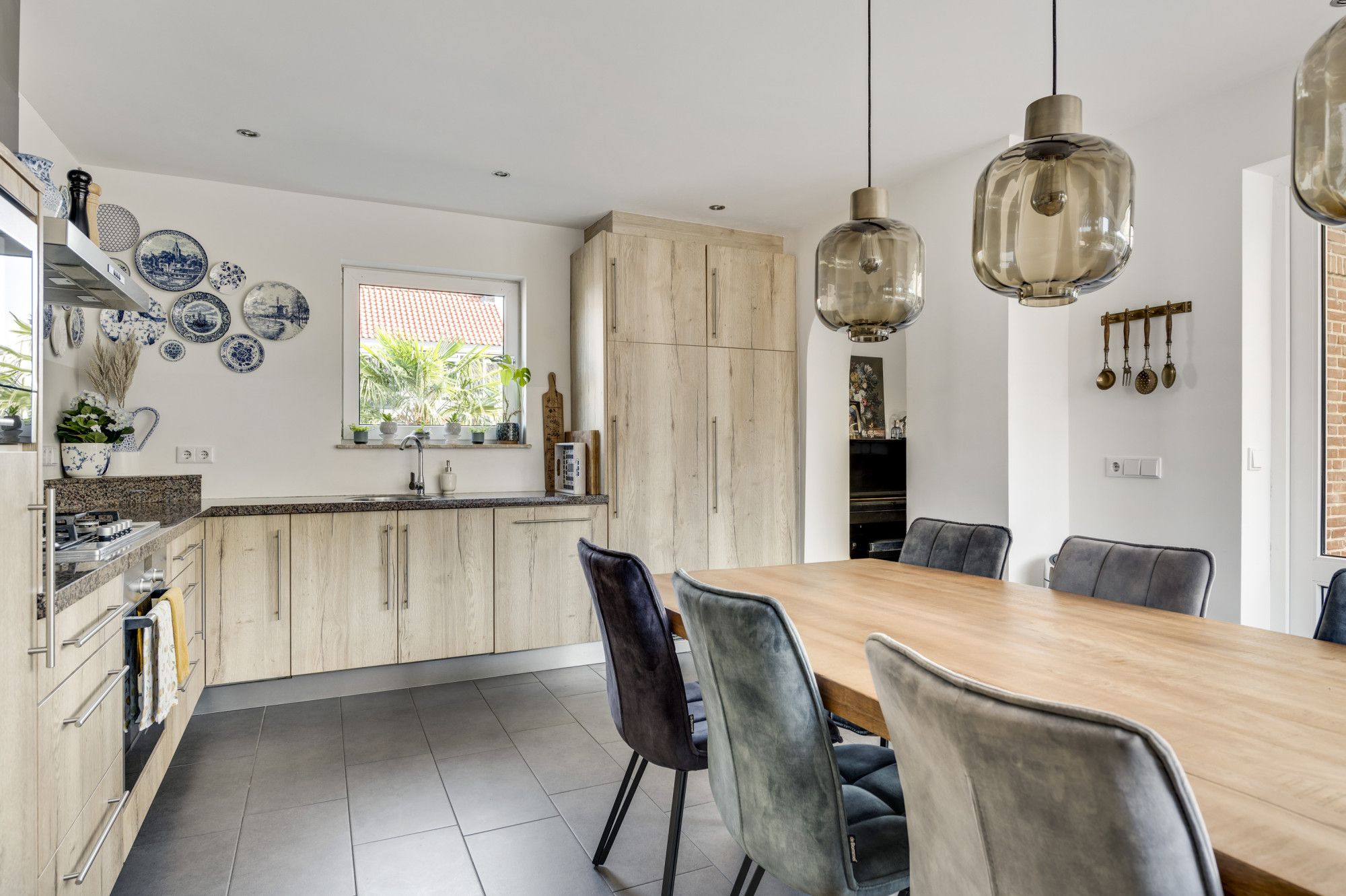 In de royale aanbouw bevindt zich de luxe woonkeuken in hoekopstelling, compleet uitgerust met diverse inbouwapparatuur zoals een 5 pits gasfornuis, afzuigkap, koelkast, diepvries, oven, magnetron en een vaatwasser. Dankzij de ruime opzet is dit een heerlijke plek om te koken en samen te komen. Ook vanuit de keuken is de tuin en het overdekte terras bereikbaar.