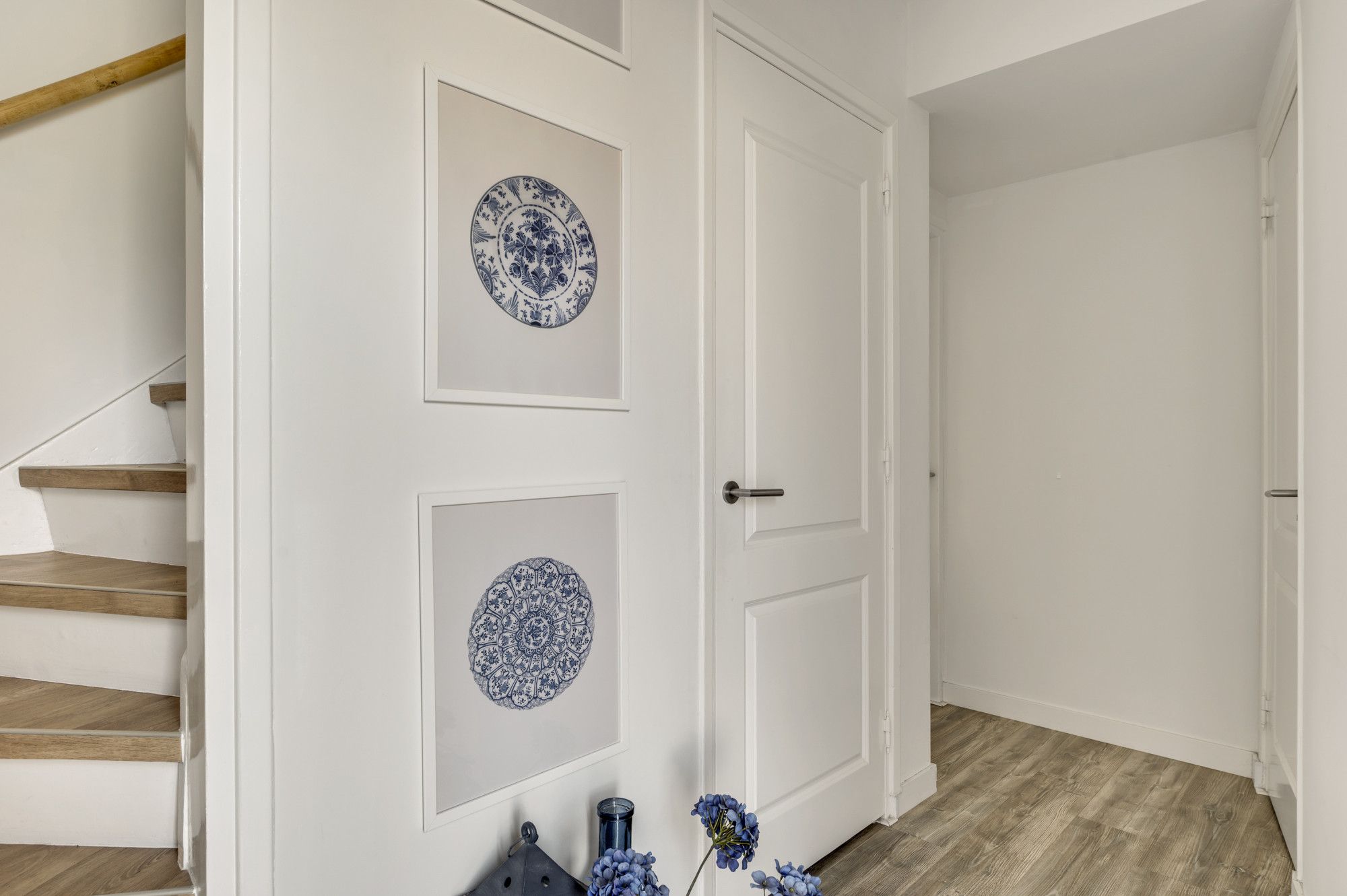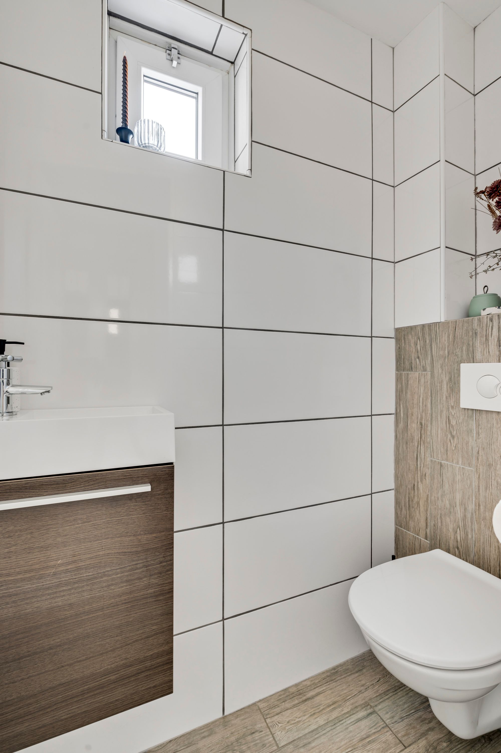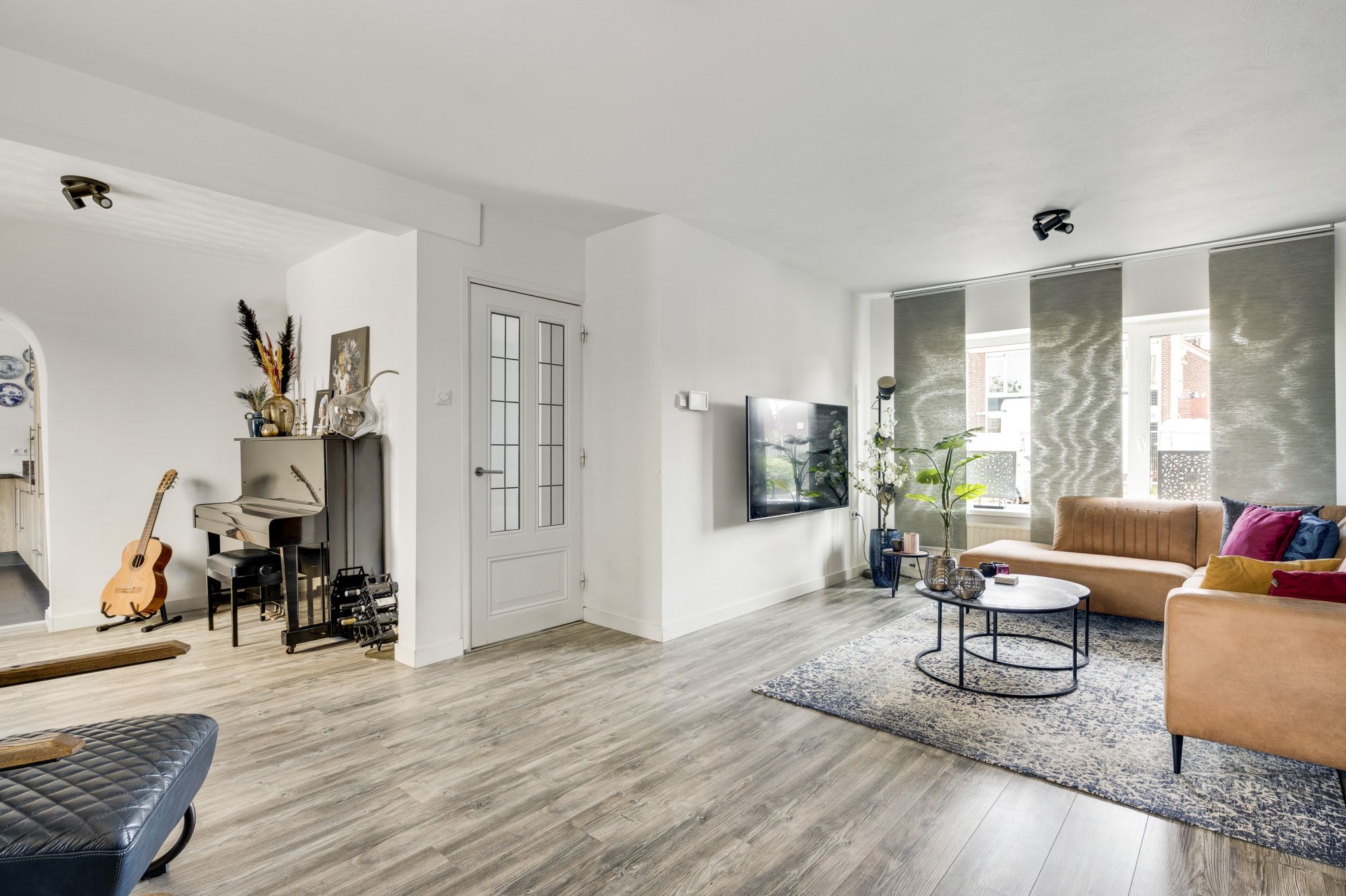 Via de entree betreed je de hal met moderne meterkast, praktische trapkast en een toiletruimte met zwevend toilet en fonteintje. De ruime L-vormige woonkamer is voorzien van een sfeervolle laminaatvloer en beschikt over een extra zitgedeelte aan de achterzijde. Vanuit hier is er direct toegang tot de achtertuin.