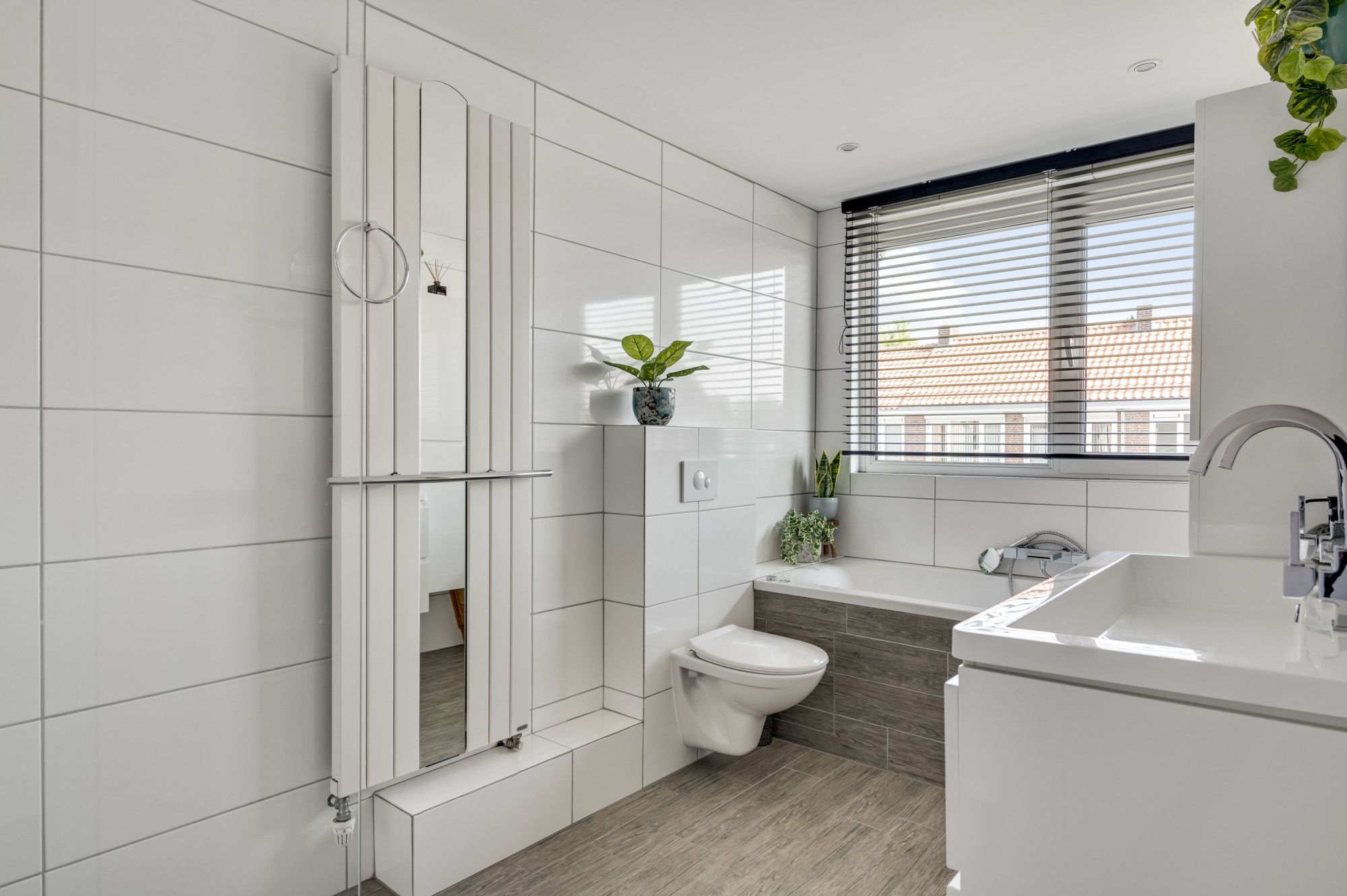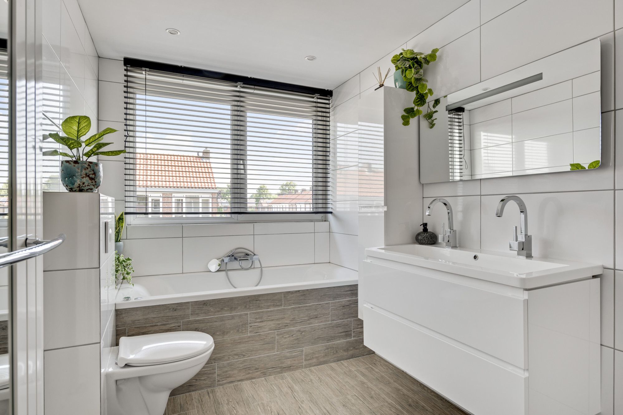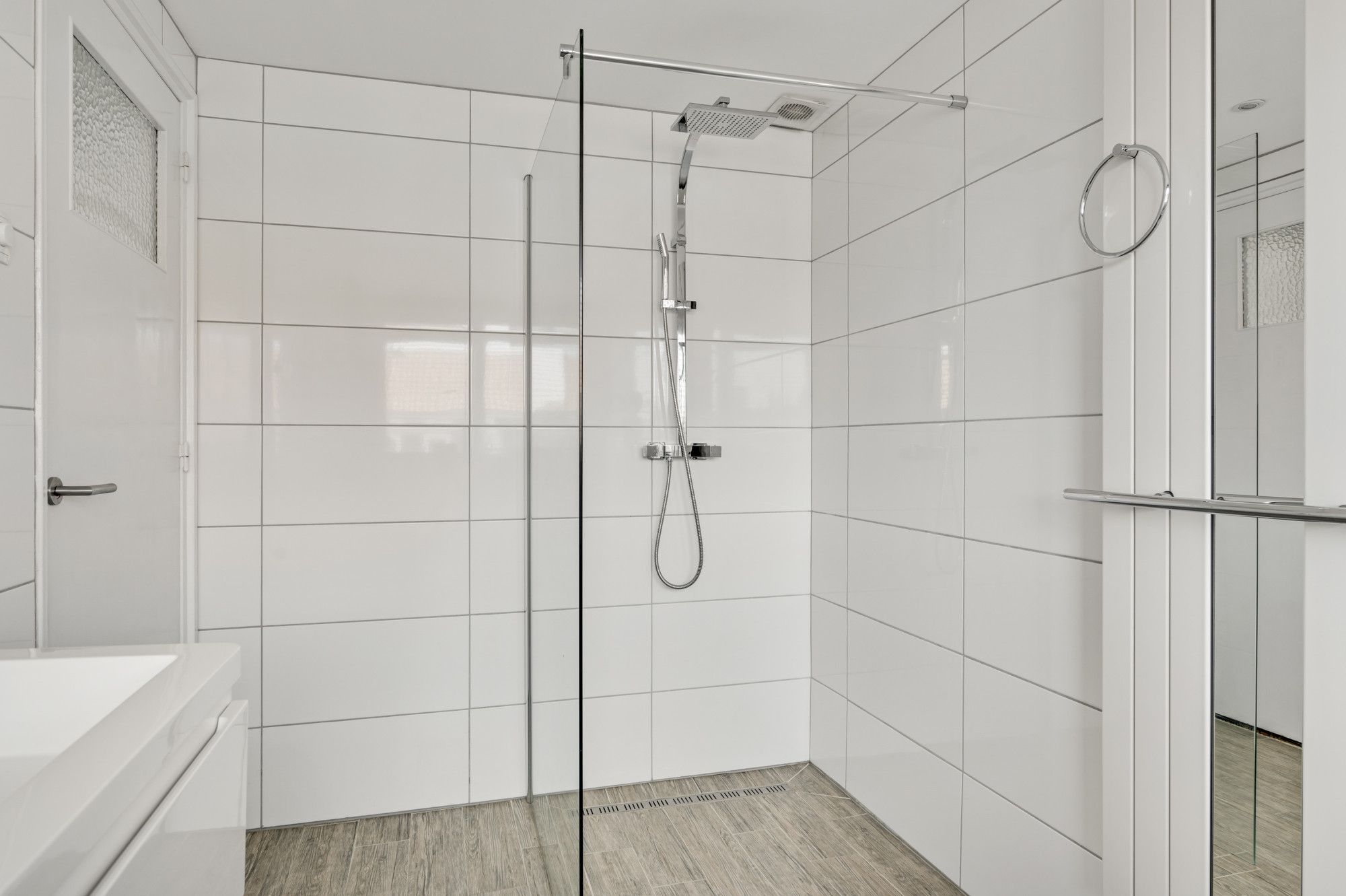 De overloop biedt toegang tot drie volwaardige slaapkamers, waarvan één met een handige muurkast. De slaapkamers zijn voorzien van een strakke wandafwerking, modern laminaat en vernieuwde elektra. De ruime, luxe badkamer is uitgerust met een ligbad met whirlpoolfunctie, royale inloopdouche, tweede zwevend toilet, wastafelmeubel, designradiator en mechanische ventilatie. Verder is er in de voormalige doucheruimte zeer praktisch een aparte wasruimte gerealiseerd met witgoedaansluitingen.