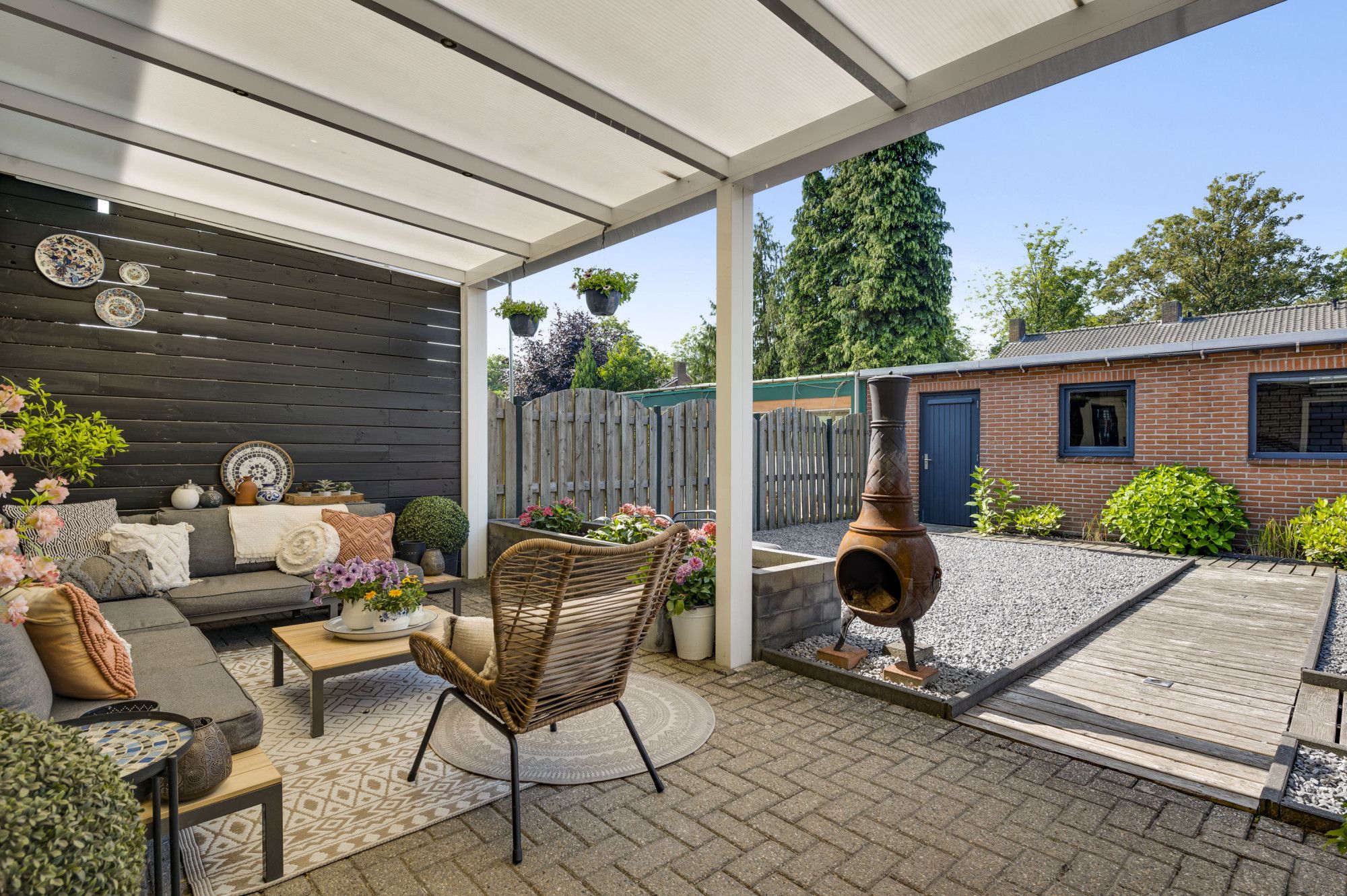 Er is een nette voortuin en een royale, onderhoudsvriendelijke achtertuin die fraai is aangelegd met sierbestrating, borders en voldoende ruimte voor meerdere zitplekken. Een absolute blikvanger is de hoogwaardige aluminium overkapping direct aan de woning, waar je het hele jaar door heerlijk beschut kunt genieten van het buitenleven, of het nu gaat om een zonnige ochtendkoffie of een gezellige avond met vrienden. De achtertuin biedt optimale privacy en is volledig omsloten. Dankzij de vrije achterom, bereikbaar via een dubbele poort aan de achterkant naar de eigen oprit, is de tuin goed toegankelijk. De ruime L-vormige garage is in spouw gebouwd en biedt niet alleen plaats aan een auto (met eventueel een 2e kleine auto), maar ook aan een werkbank of extra opslag. Bovendien is er een aparte hobbyruimte aanwezig, perfect voor de klusser, modelbouwer of creatieveling. De garage is verder bereikbaar vanuit zowel de tuin als de oprit, en is voorzien van een elektrische sectionaalpoort met afstandsbediening, een kantelpoort, een loopdeur en volop bergruimte.