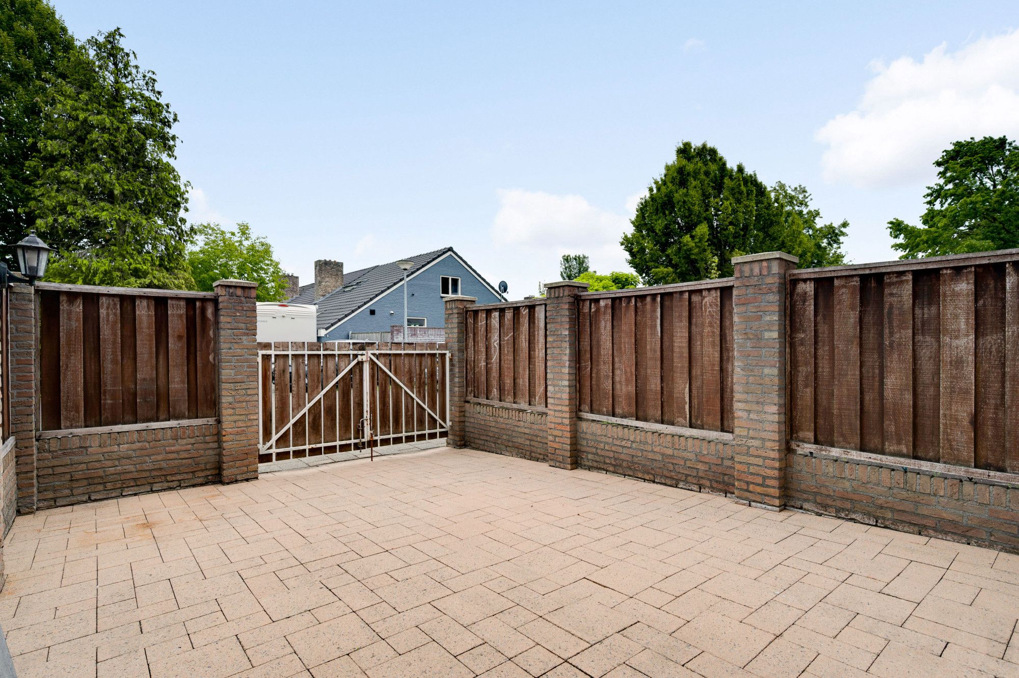 Er is een voortuin en een fijne, omheinde achtertuin met een vrije achterom (met auto toegankelijk). De achtertuin is voorzien van een terras en is het verlengde van de oprit die middels een dubbele poort te bereiken is vanuit de achterzijde.