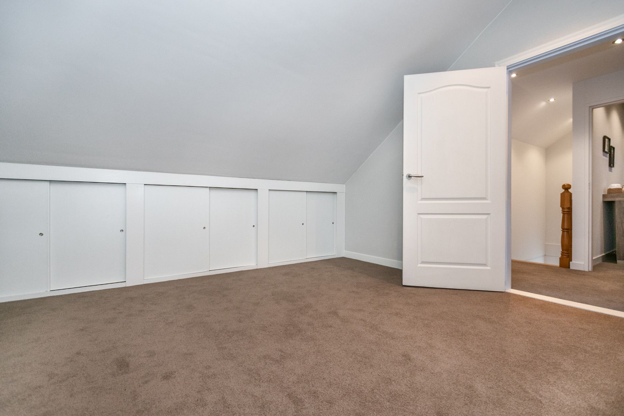 Eenzelfde houten trap brengt je naar de tweede verdieping met nog twee slaapkamers en een aparte berging. Eén slaapkamer van fijn formaat en nog een royale slaapkamer. Deze verdieping is eveneens recentelijk strak afgewerkt, voorzien van dakkapellen en geïntegreerde ledverlichting.