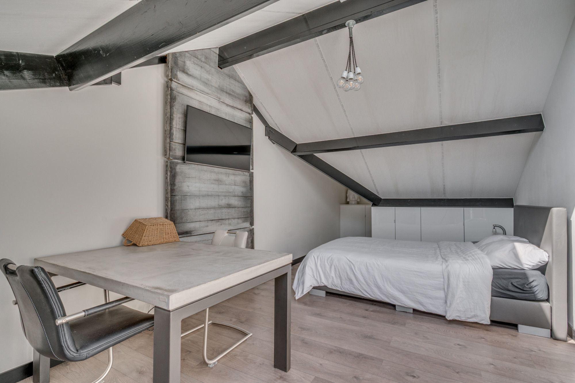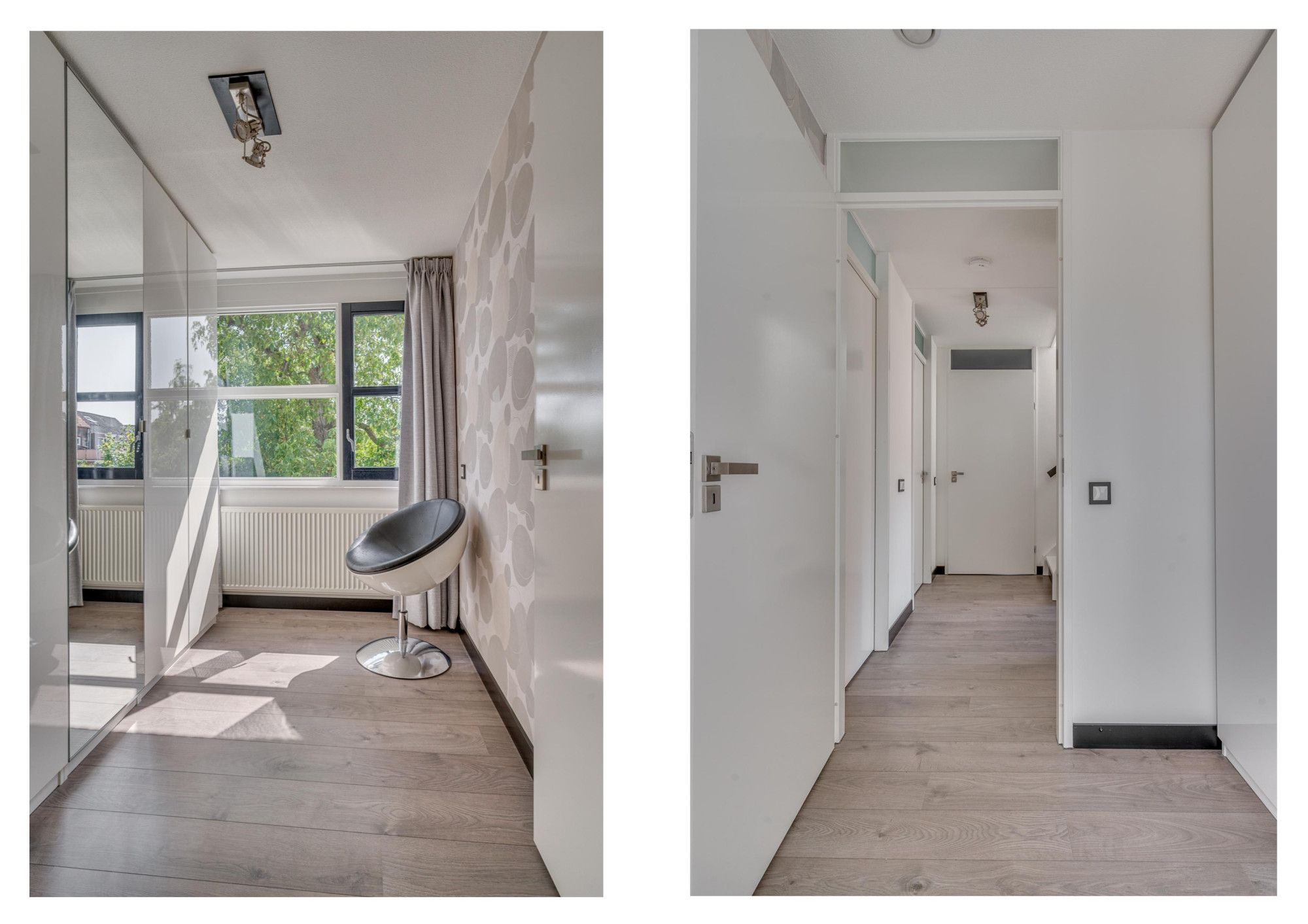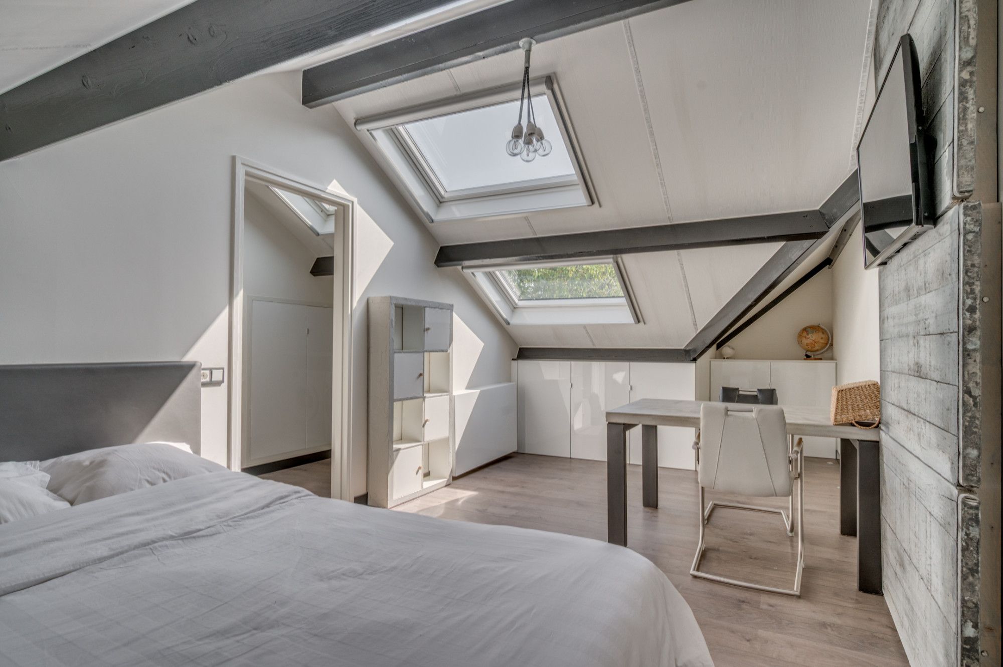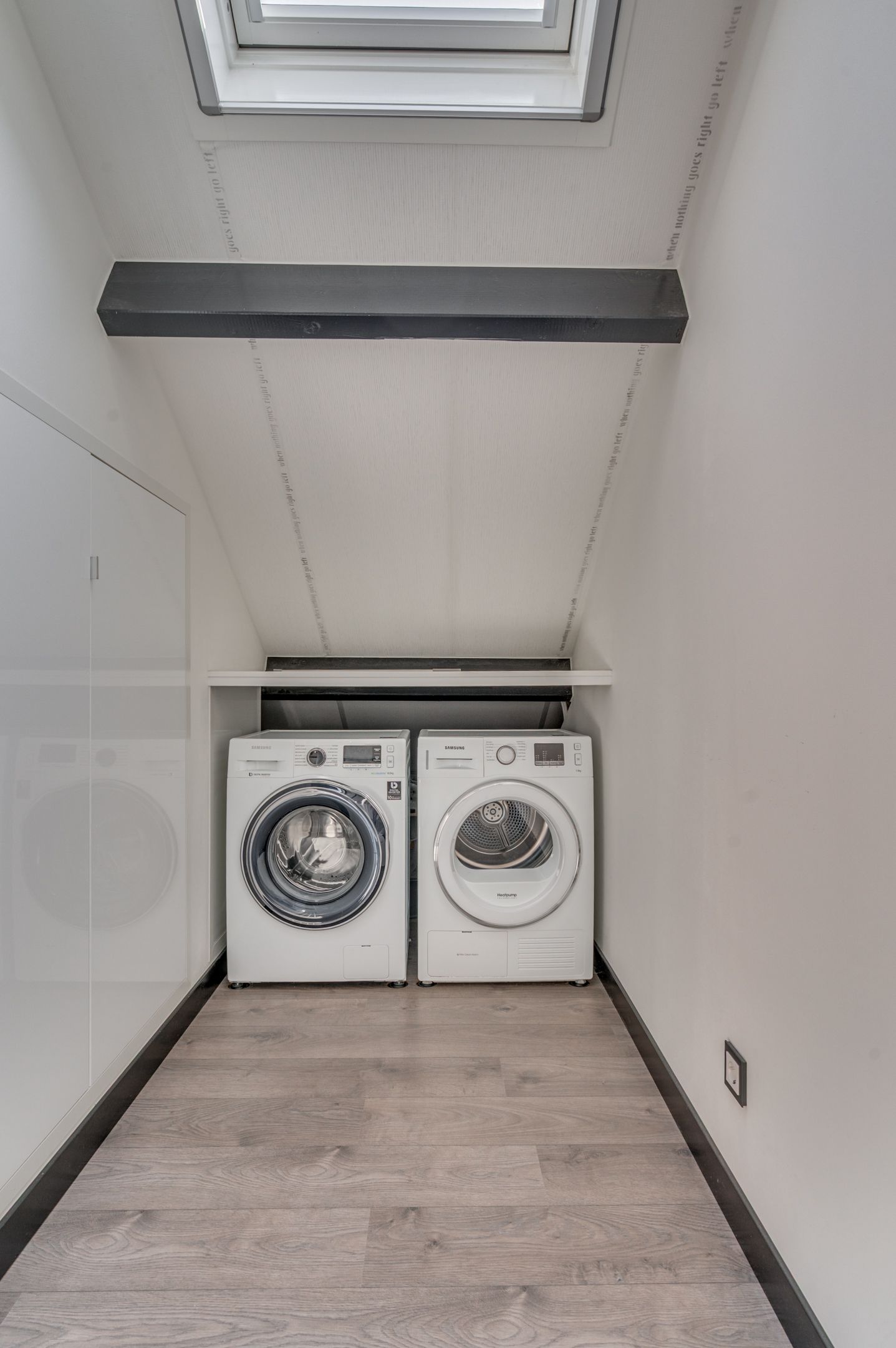 Een vaste trap leidt naar de royale tweede verdieping. Deze zolderverdieping is verrassend ruim en ingericht als vierde slaapkamer, maar kan uiteraard ook dienst doen als werk-, studeer- of hobbykamer. Daarnaast is er volop daglicht en bergruimte aanwezig en vindt u in het voorportaal de witgoedaansluitingen met ook veel extra bergruimte in de op maat gemaakte inbouwkasten. Netjes weggewerkt in een kast staat de cv-ketel opgesteld (ATAG HR, eigendom, ca. 2023).