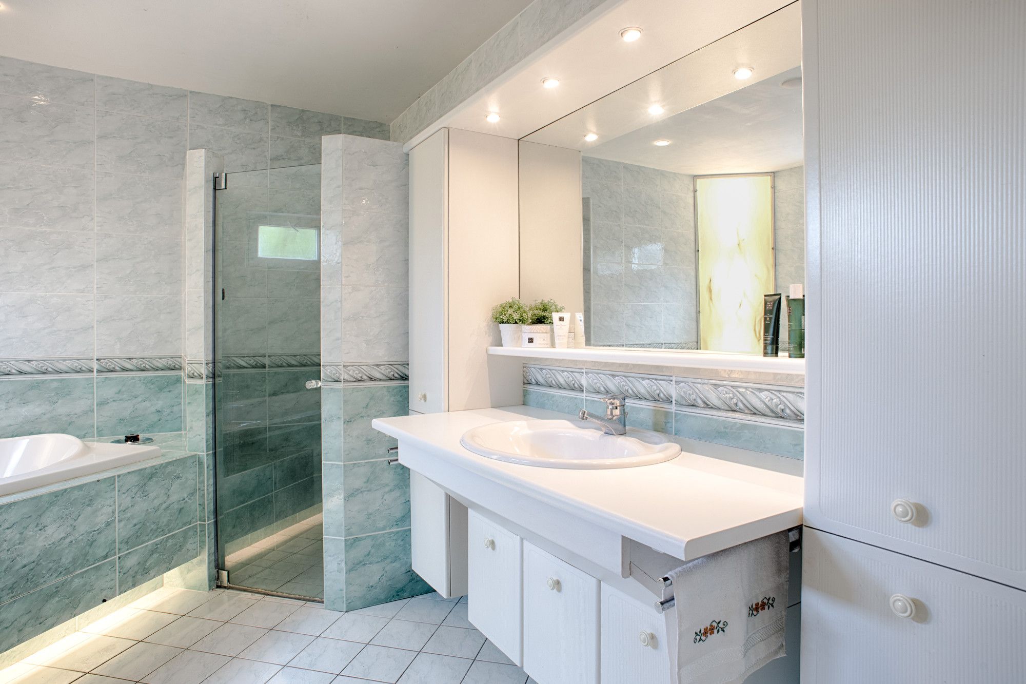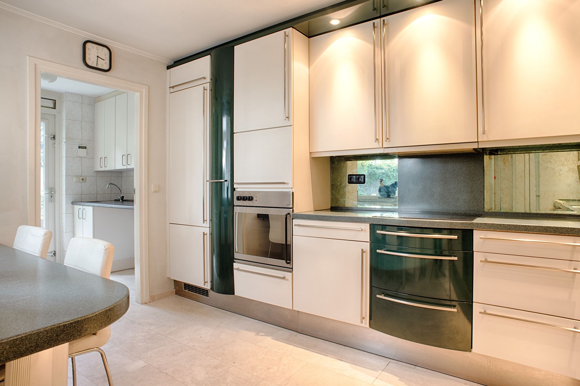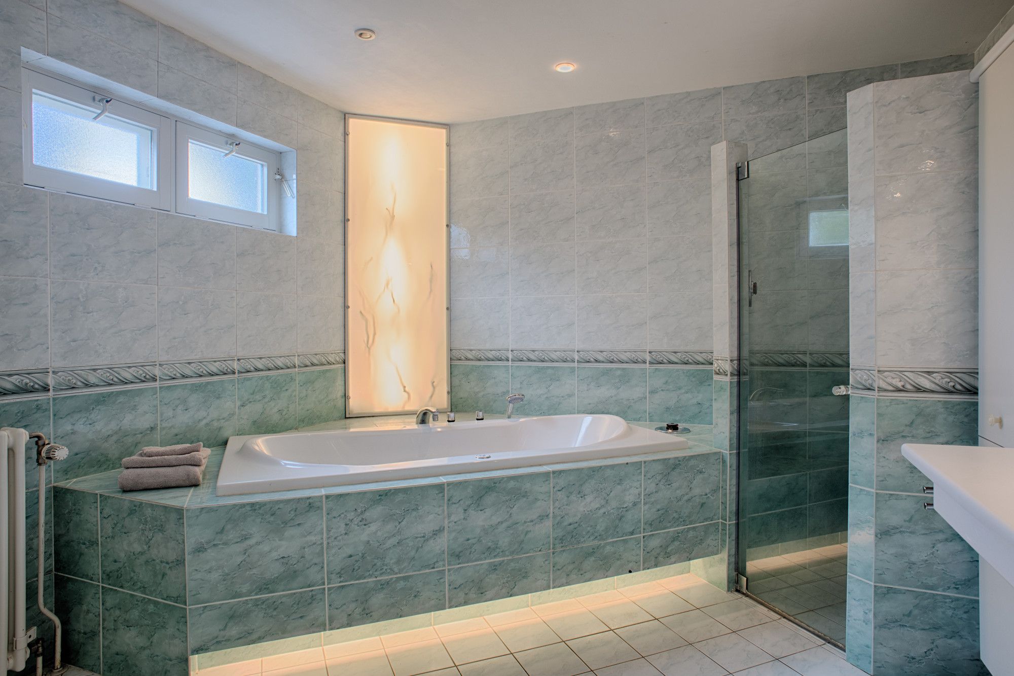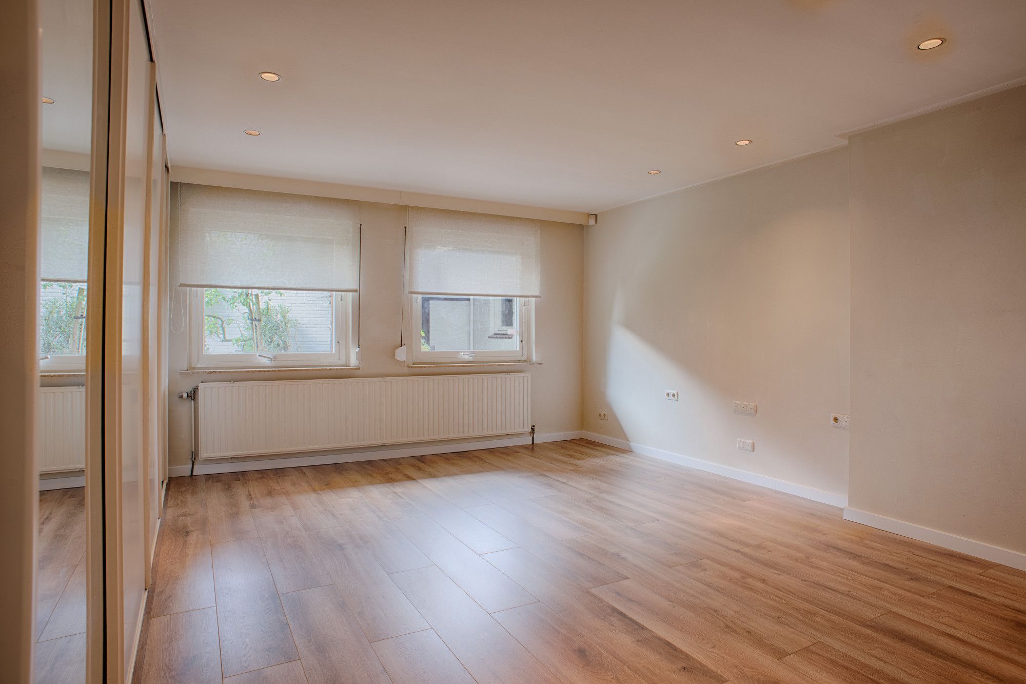 Via de overdekte entree bereikt u de ruime ontvangsthal. Vanuit hier zijn de woonkamer, keuken, de eerste drie slaapkamers en de 1e badkamer bereikbaar. Ook vindt u in de hal een garderobe met bergkast en een separate toiletruimte met toilet en fonteintje. De woonkamer is royaal opgezet en voorzien van een natuurstenen vloer met vloerverwarming. De tweezijdige gashaard met natuursteenmantel verdeelt de ruimte op stijlvolle wijze in een zit- en eetgedeelte en zorgt voor een warme, huiselijke sfeer. Grote raampartijen en een schuifpui naar het overdekte terras maken de woonkamer heerlijk licht en luchtig. De keuken is uitgevoerd met een nette combinatie in hoekopstelling, afgewerkt met een corian werkblad en uitgerust met diverse inbouwapparatuur, waaronder een inductiekookplaat, afzuigkap, combi-oven, koelkast en een vaatwasser. Aangrenzend ligt de praktische bijkeuken met extra bergruimte, aansluitingen voor witgoed, een schuifkastenwand en een loopdeur naar de achtertuin. Op de begane grond bevinden zich verder de eerste drie slaapkamers. De hoofdslaapkamer biedt fraai zicht op de achtertuin en beschikt over een maatwerk garderobekast en directe toegang tot de en-suite badkamer. Deze complete 1e badkamer is voorzien van vloerverwarming, een whirlpool, inloopdouche, dubbele wastafel, bidet en tweede toilet. De twee overige kamers zijn multifunctioneel te gebruiken, bijvoorbeeld als werkkamer, logeerkamer, thuiswerkplek of aan huis gebonden beroepen.