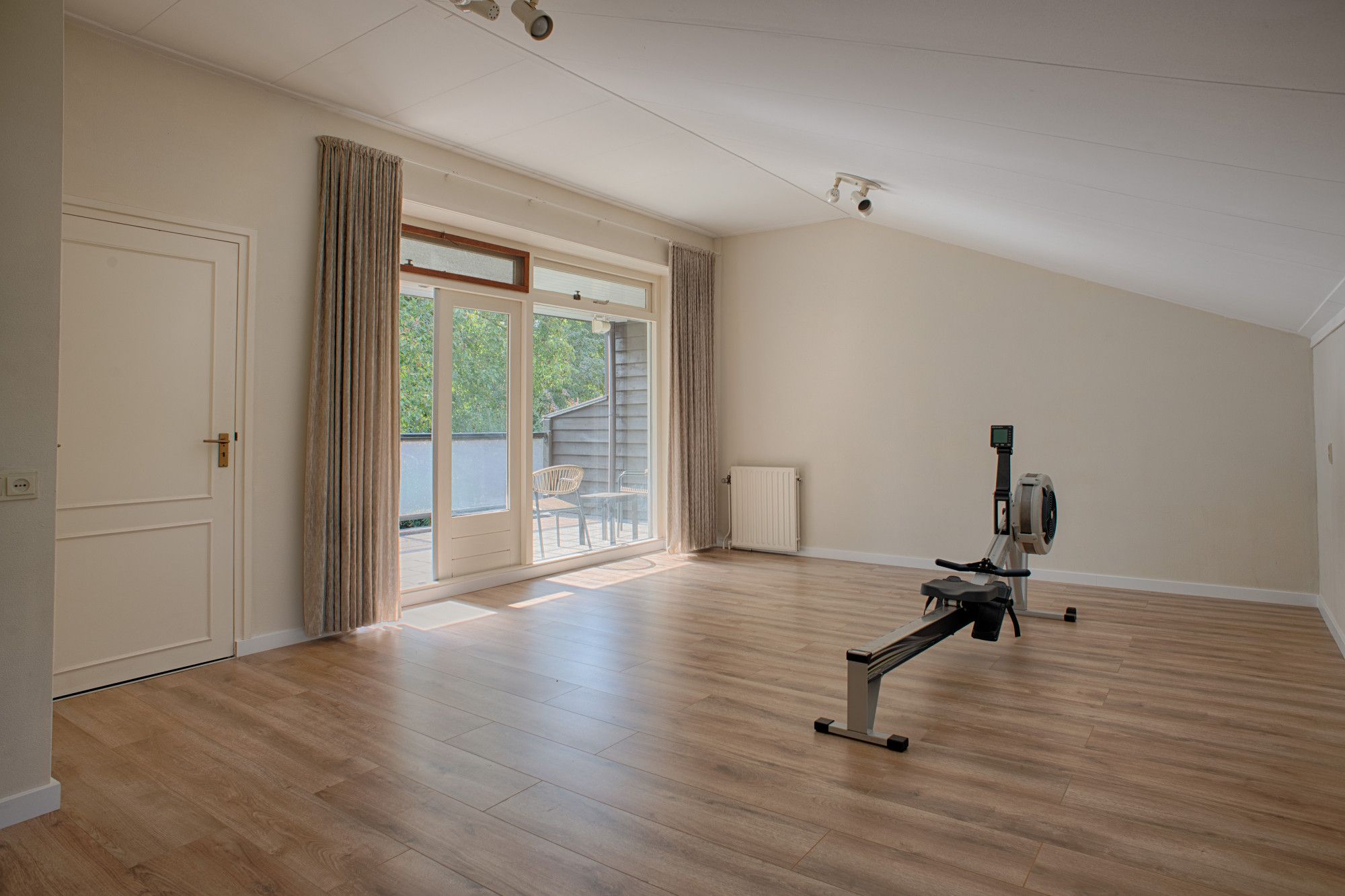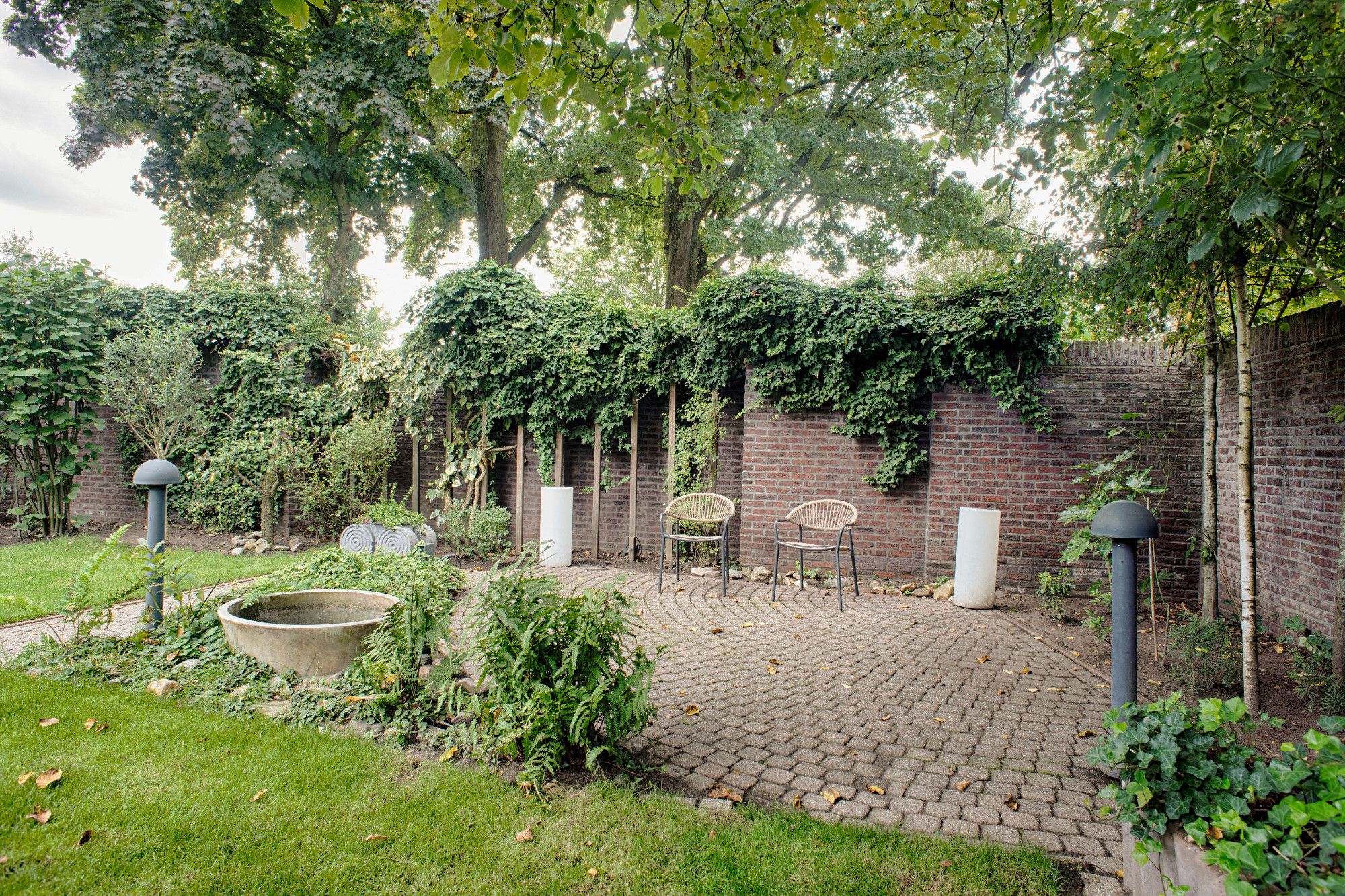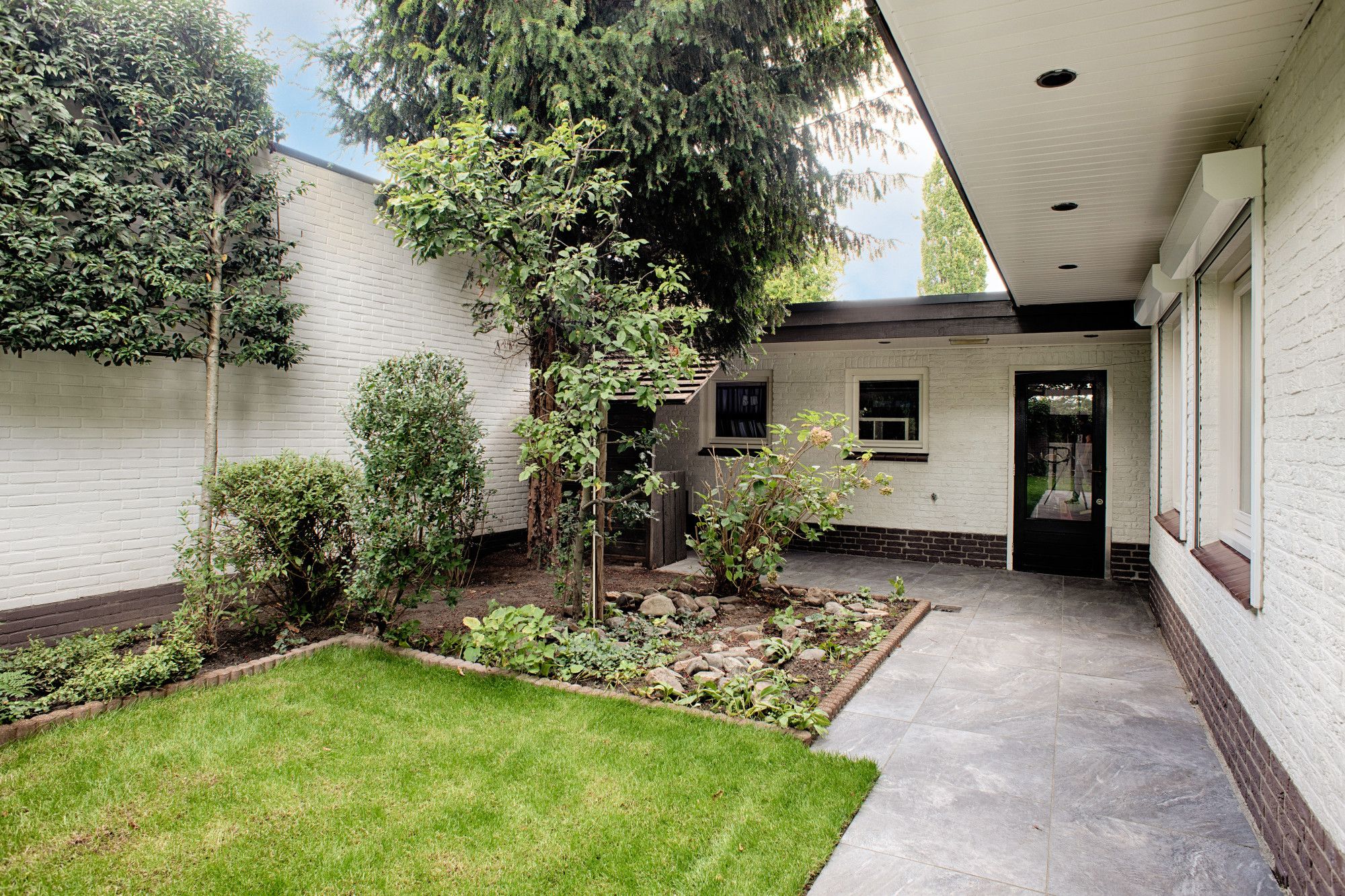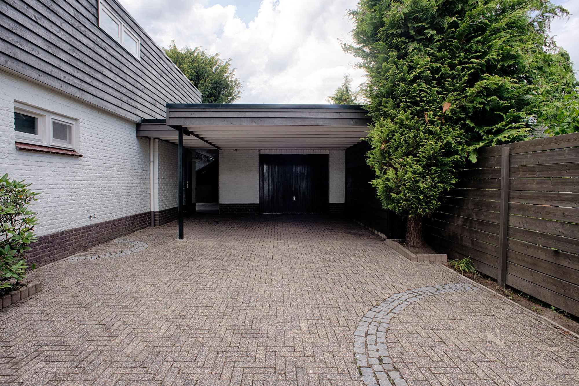 De groene en zonnige achtertuin is volledig omsloten en biedt optimale privacy. Dankzij de gunstige zonligging en het royale overdekte terras met lichtkoepels en verlichting is dit een heerlijke plek om in alle rust te genieten. De tuin is verzorgd aangelegd met diverse terrassen, volwassen beplanting en een waterornament. Aan de voorzijde beschikt de woning over een ruime garage en een dubbele carport. De brede oprit biedt bovendien voldoende parkeergelegenheid voor meerdere voertuigen.