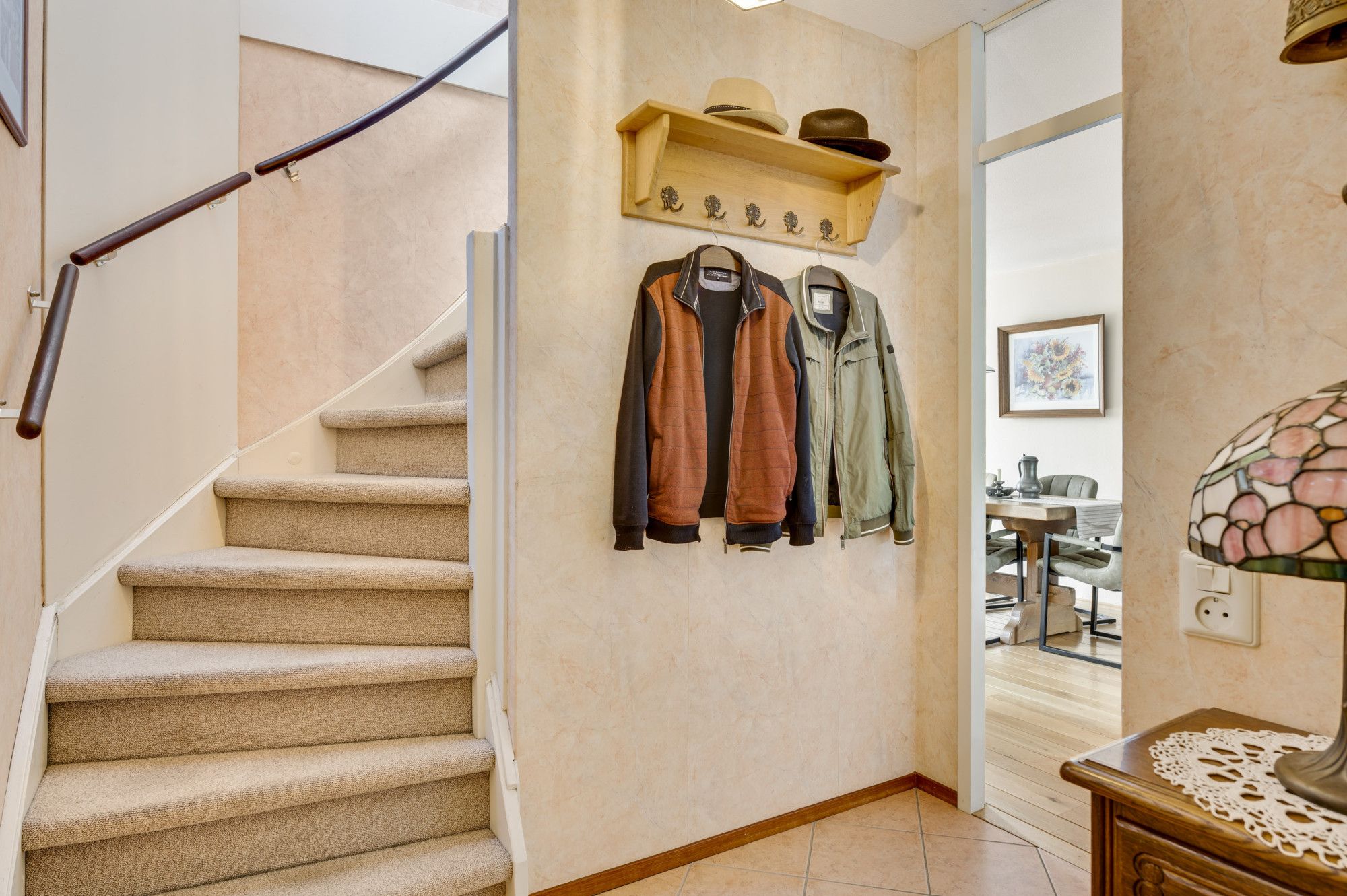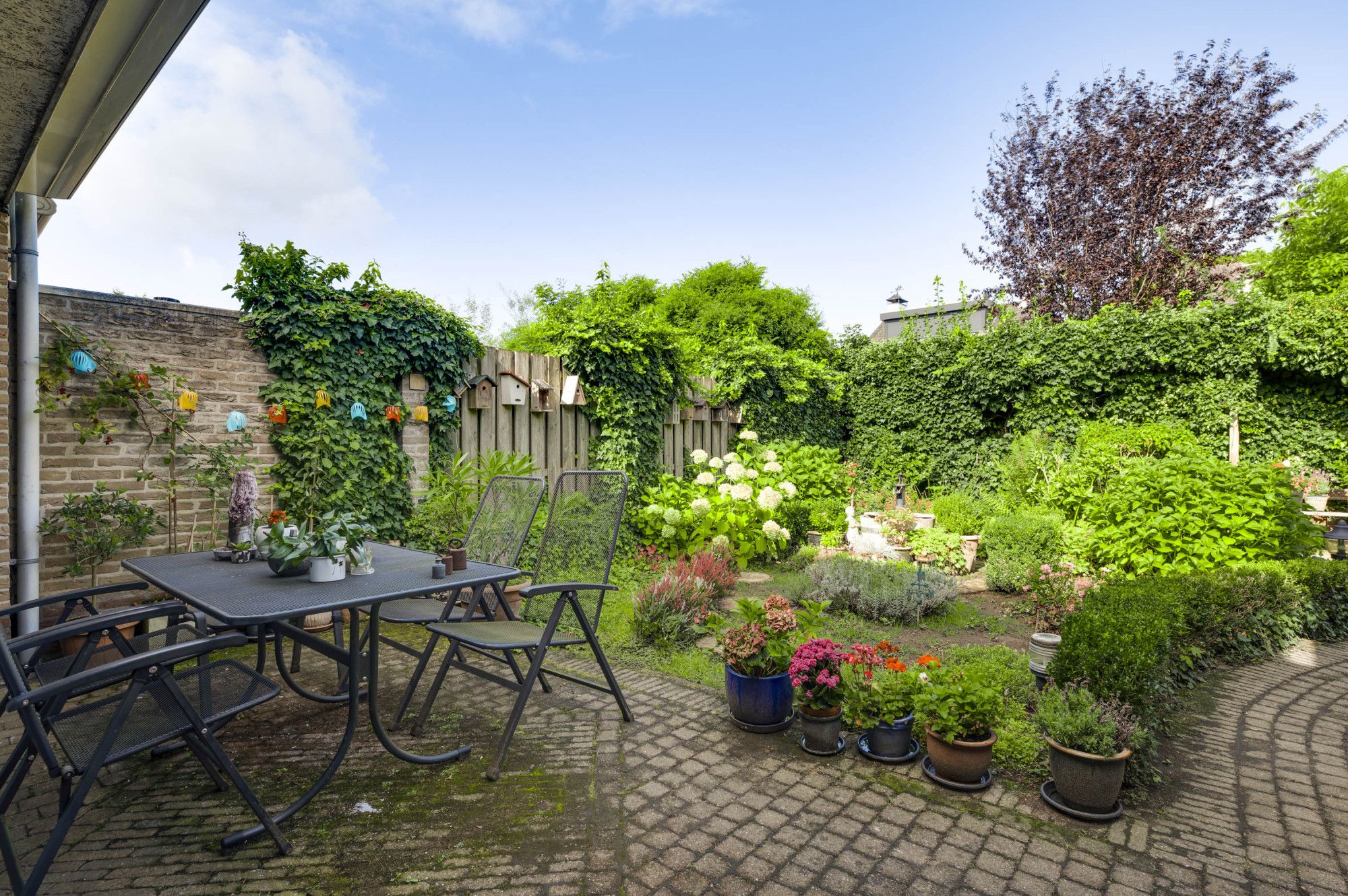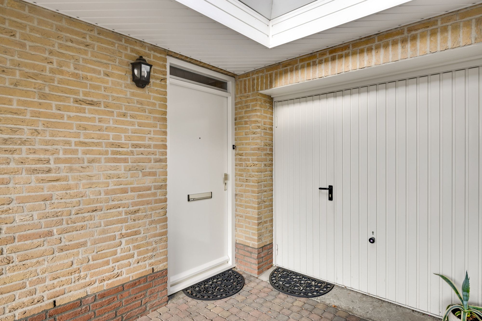 Aan de voorzijde ligt een onderhoudsvriendelijke tuin met een diepe oprit en carport die leidt naar de garage en de entree van de woning. De achtertuin biedt volop privacy en is ingericht met meerdere terrassen, bestrating, groenaanplant en een elektrisch zonnescherm.