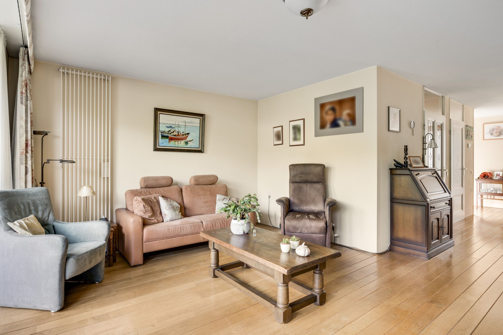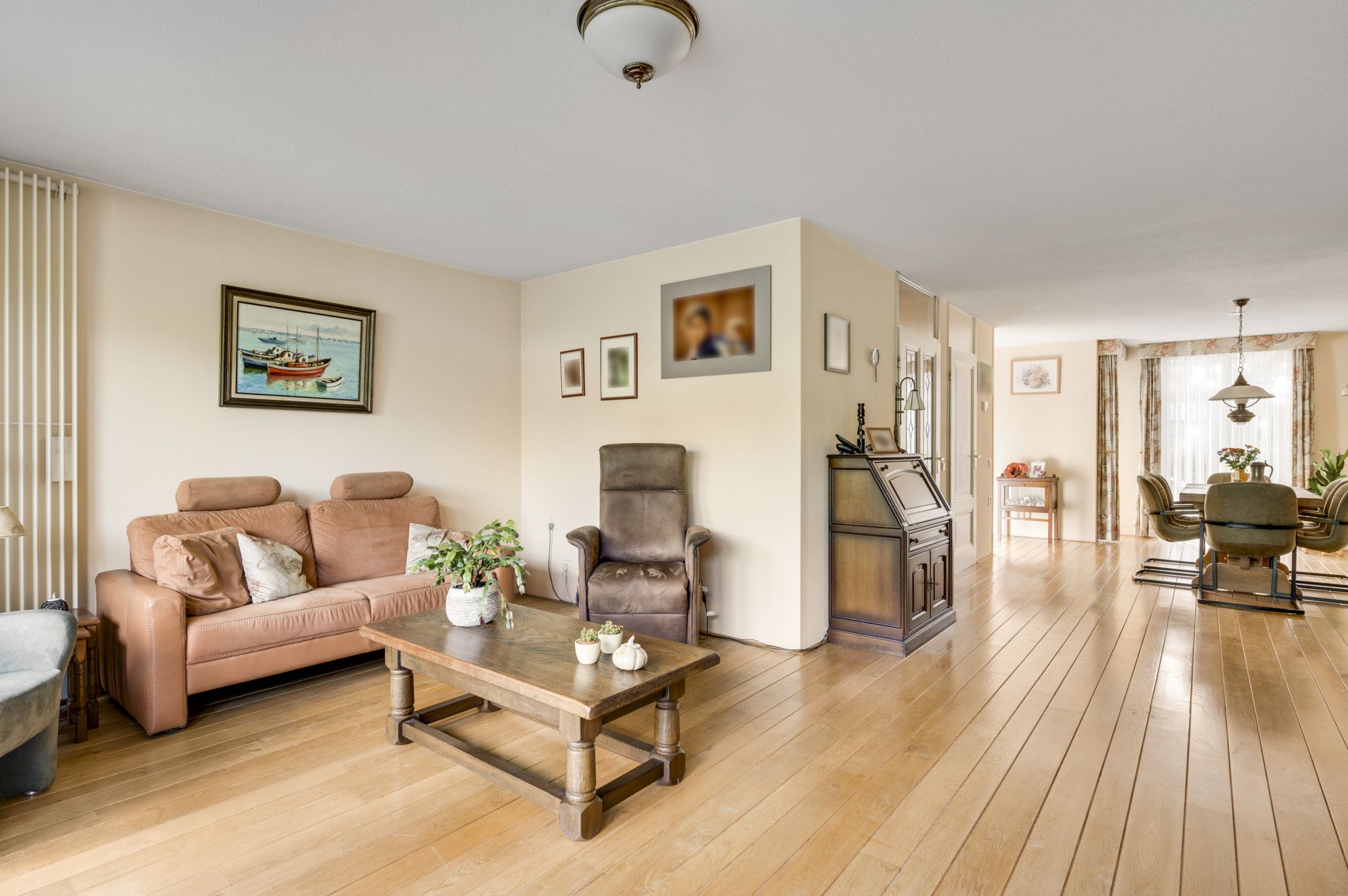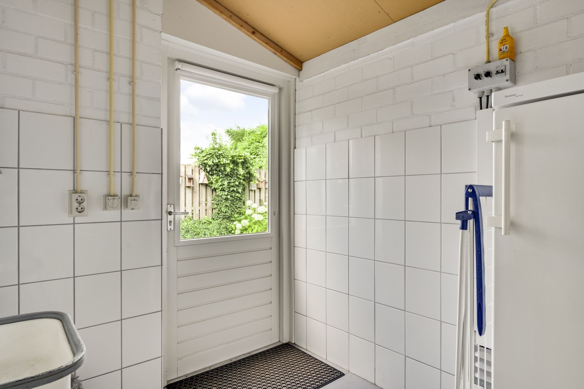 Aan de voorzijde ligt een onderhoudsvriendelijke tuin met een diepe oprit en carport die leidt naar de garage en de entree van de woning. De achtertuin biedt volop privacy en is ingericht met meerdere terrassen, bestrating, groenaanplant en een elektrisch zonnescherm.
