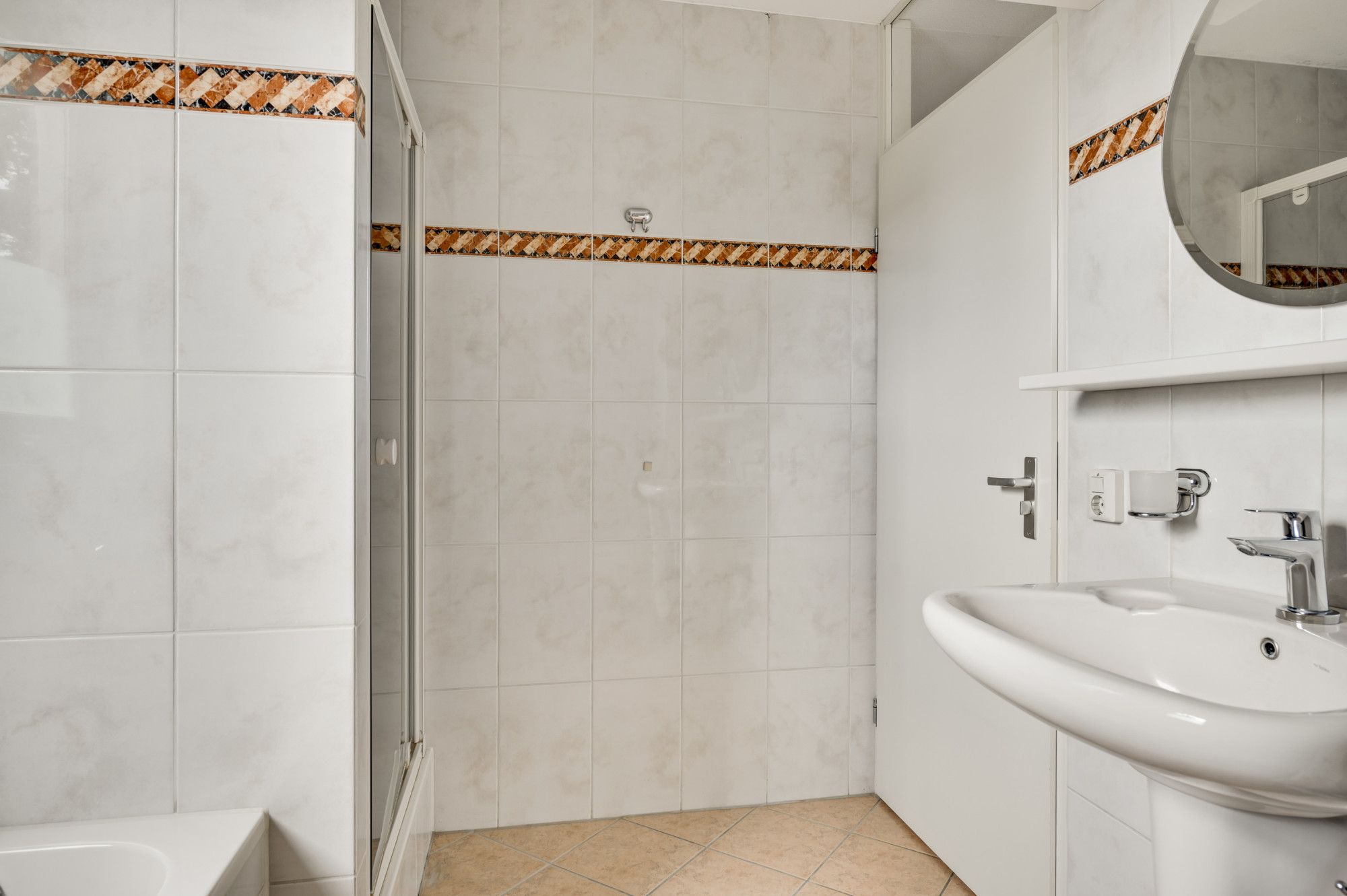 De overloop geeft toegang tot drie slaapkamers, de badkamer en een aparte cv-ruimte met de opstelling van de cv combi ketel (Remeha HR, eigendom, ca. 2015). De complete badkamer is voorzien van een douche, ligbad, toilet, wastafel en badkamermeubel.