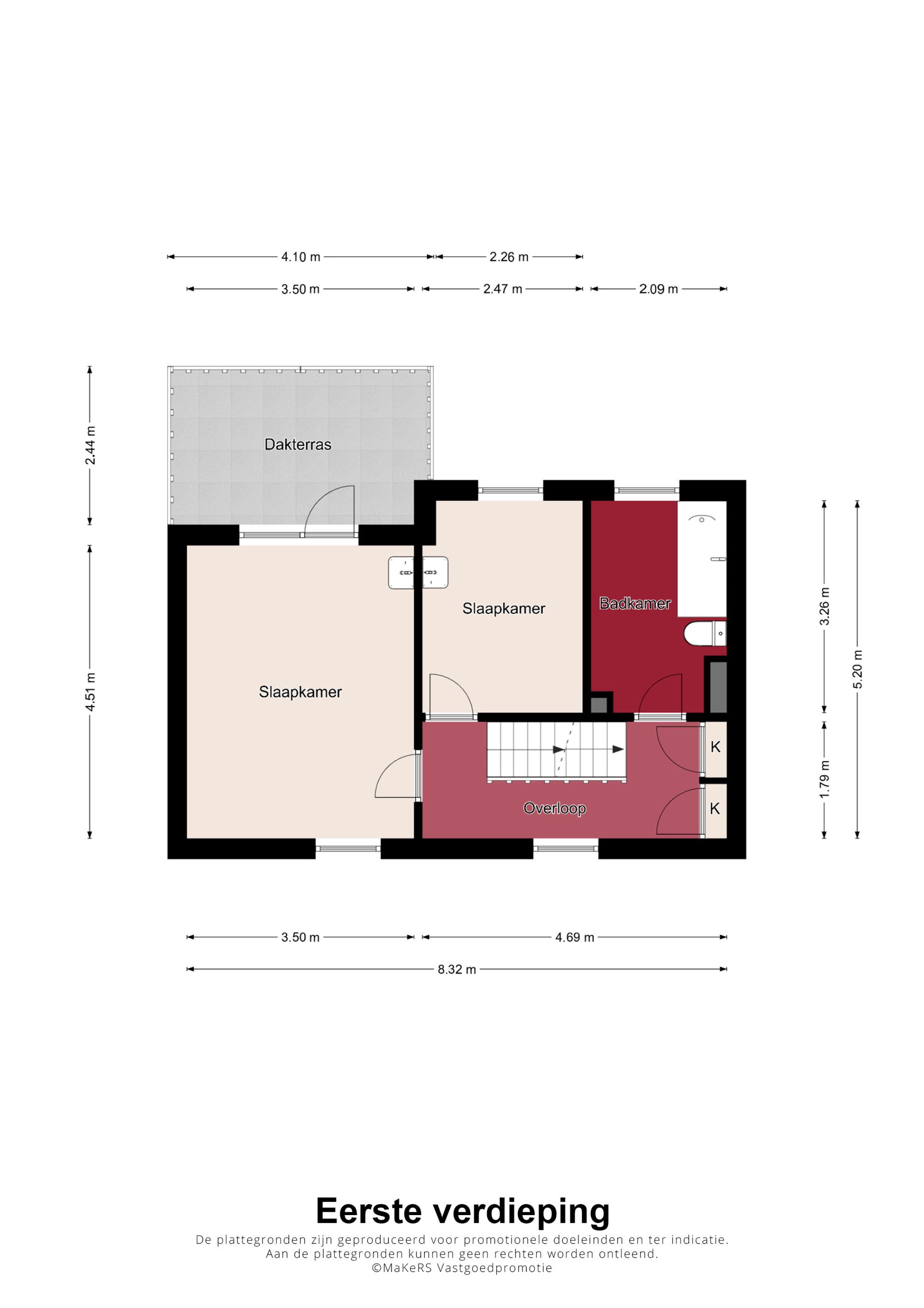 Op de eerste verdieping bevinden zich de eerste twee comfortabele slaapkamers en een ruime badkamer, uitgerust met een ligbad en toilet. Beide slaapkamers beschikken over een wastafel en 1 van de slaapkamers biedt toegang tot het dakterras. Op de overloop zijn praktische muurkasten aanwezig.