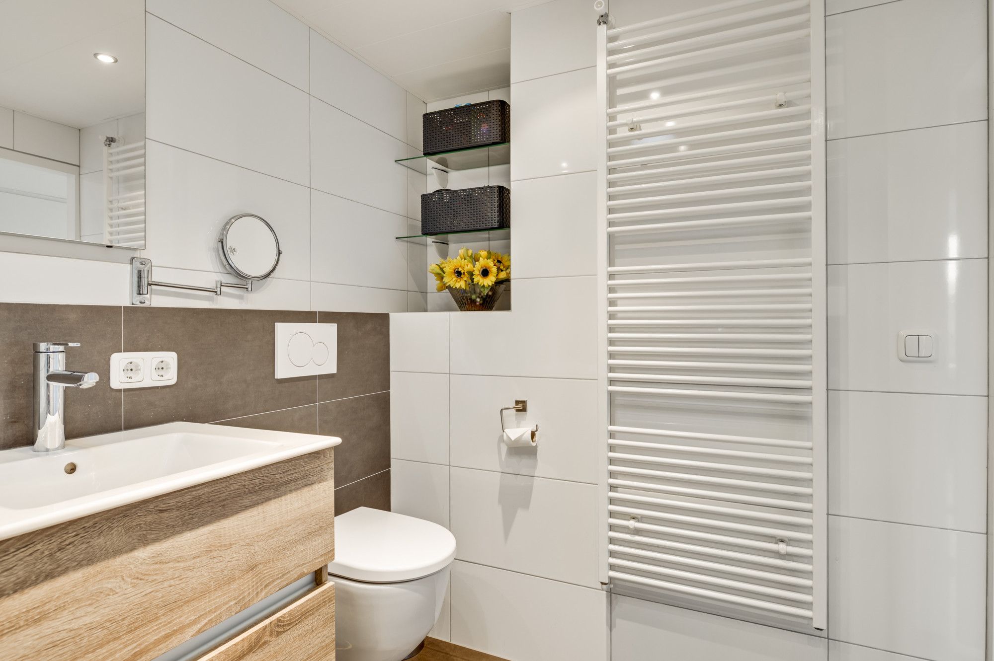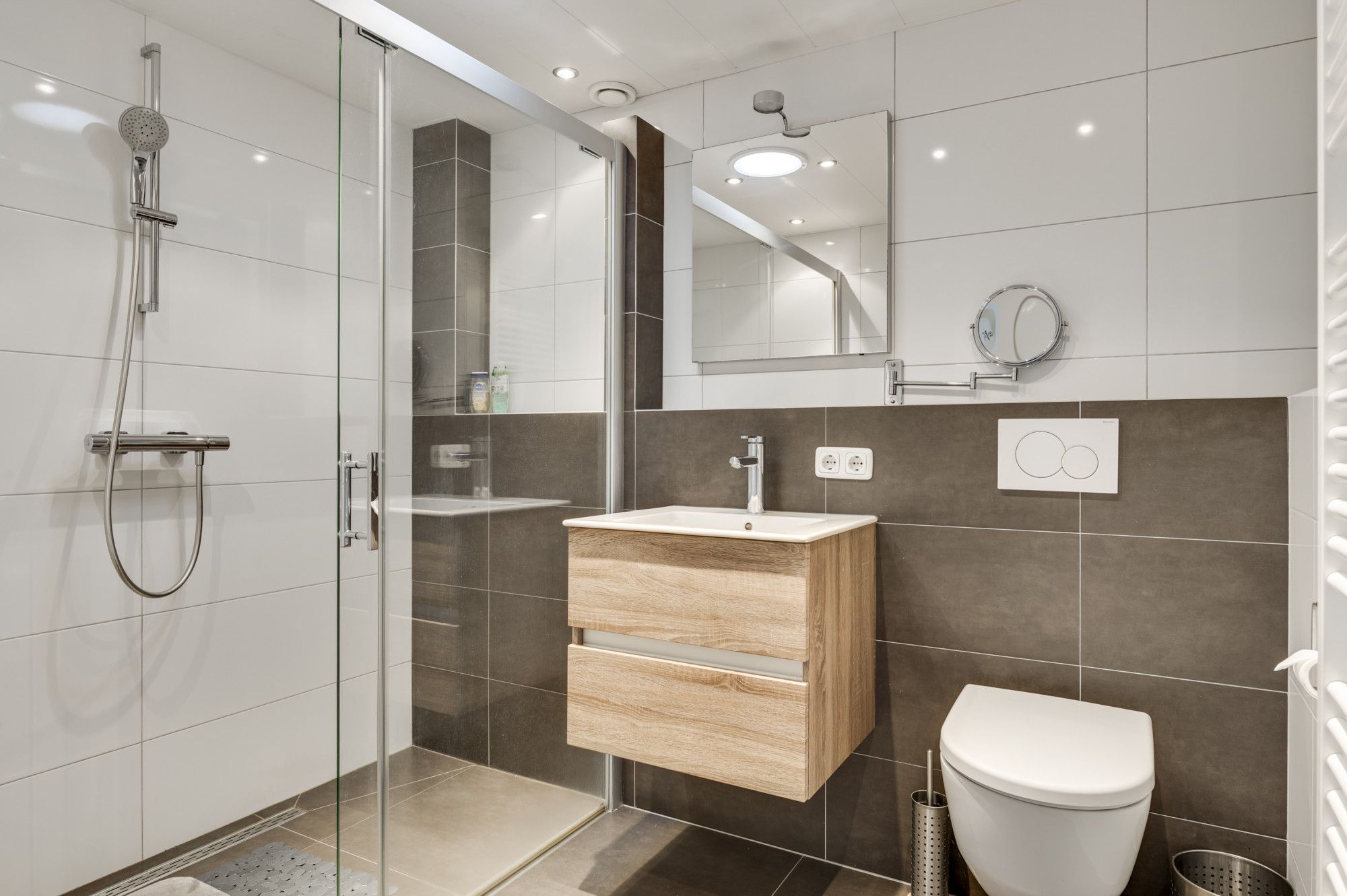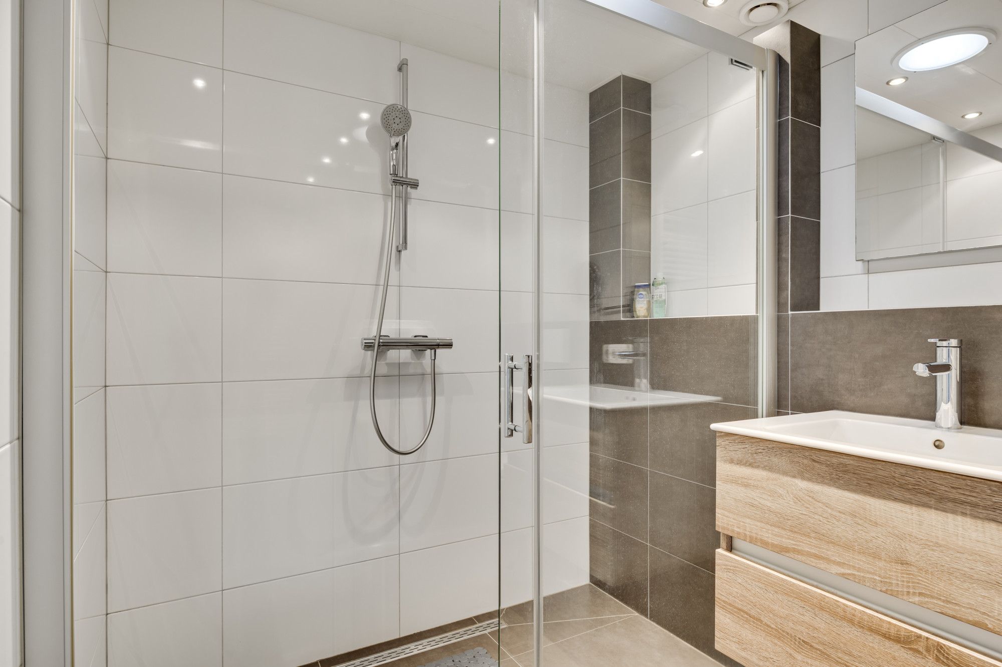 Overloop met toegang tot nog drie ruime slaapkamers, elk voorzien van vaste kastruimte. De luxe badkamer is uitgerust met een riante inloopdouche, wastafel met meubel en een toilet, waardoor comfort en stijl perfect samenkomen. Op deze verdieping bevindt zich verder een netjes weggewerkte kast met de opstelling van de cv-ketel (Nefit HR Trendline, eigendom, ca. 2024).