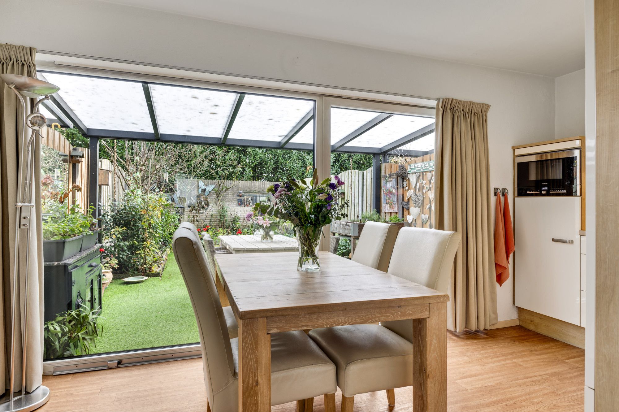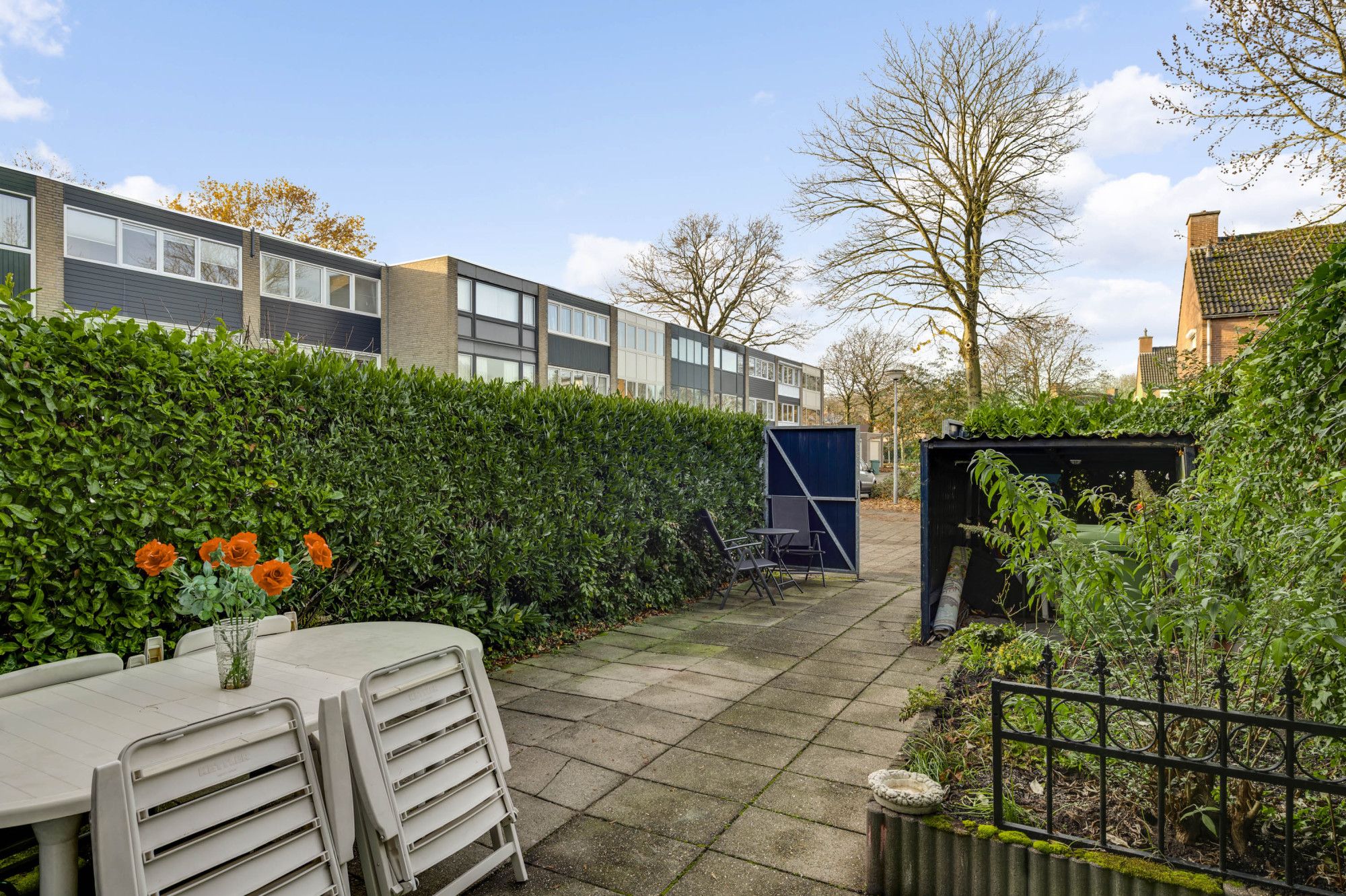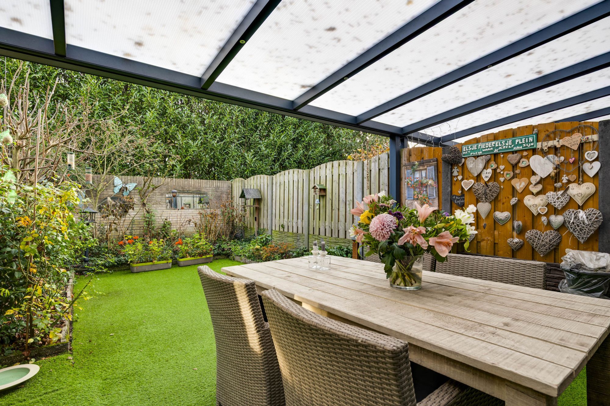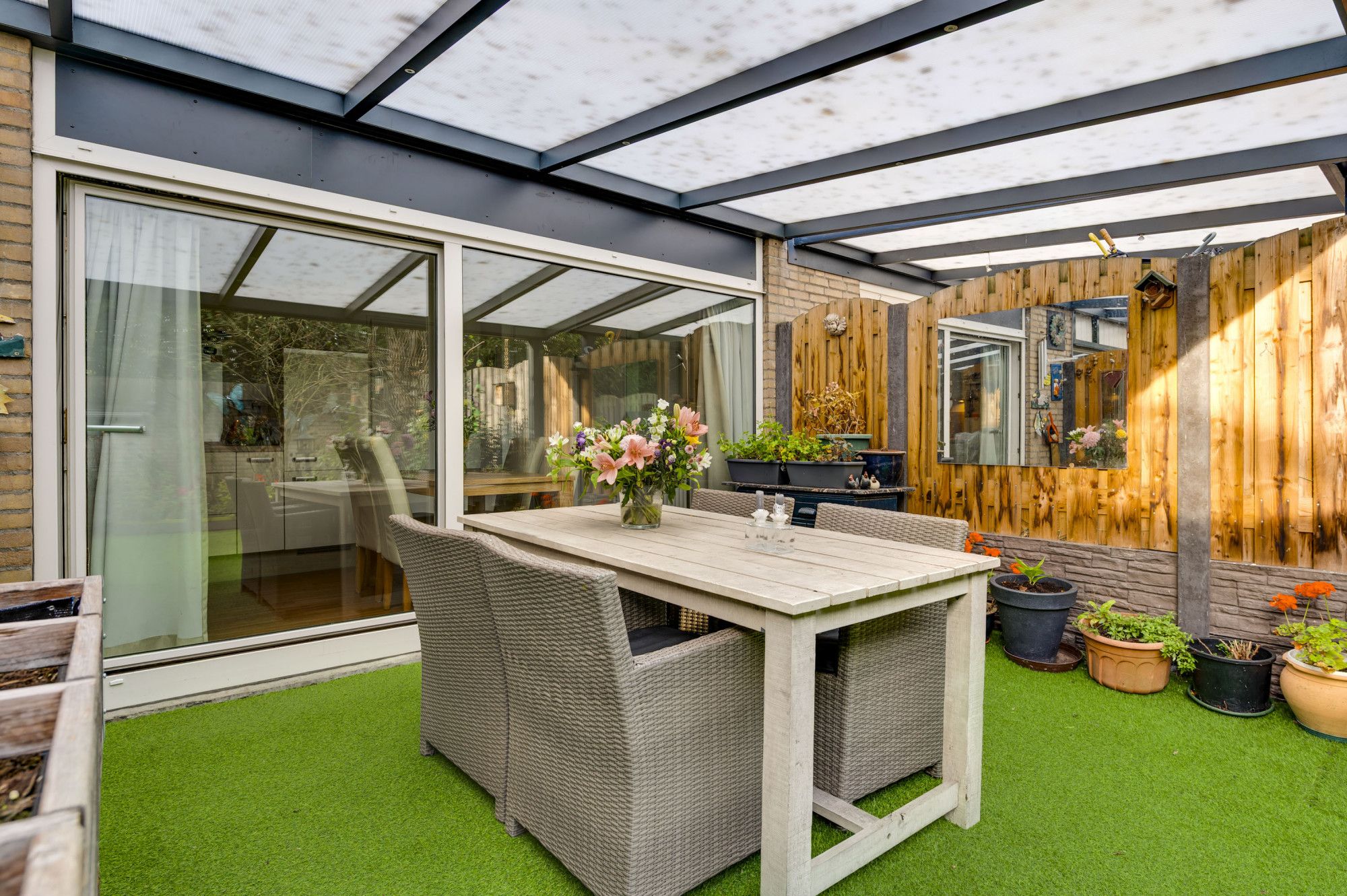 De woning beschikt over een verzorgde, afgesloten voortuin met oprit die toegang biedt tot de entree en de garage. De achtertuin is ingericht met een riante terrasoverkapping en diverse borders en trekt leuk veel vogeltjes aan. Door een tuin aan zowel de voor- als aan de achterzijde is er altijd een plekje in de zon of schaduw kunt vinden.