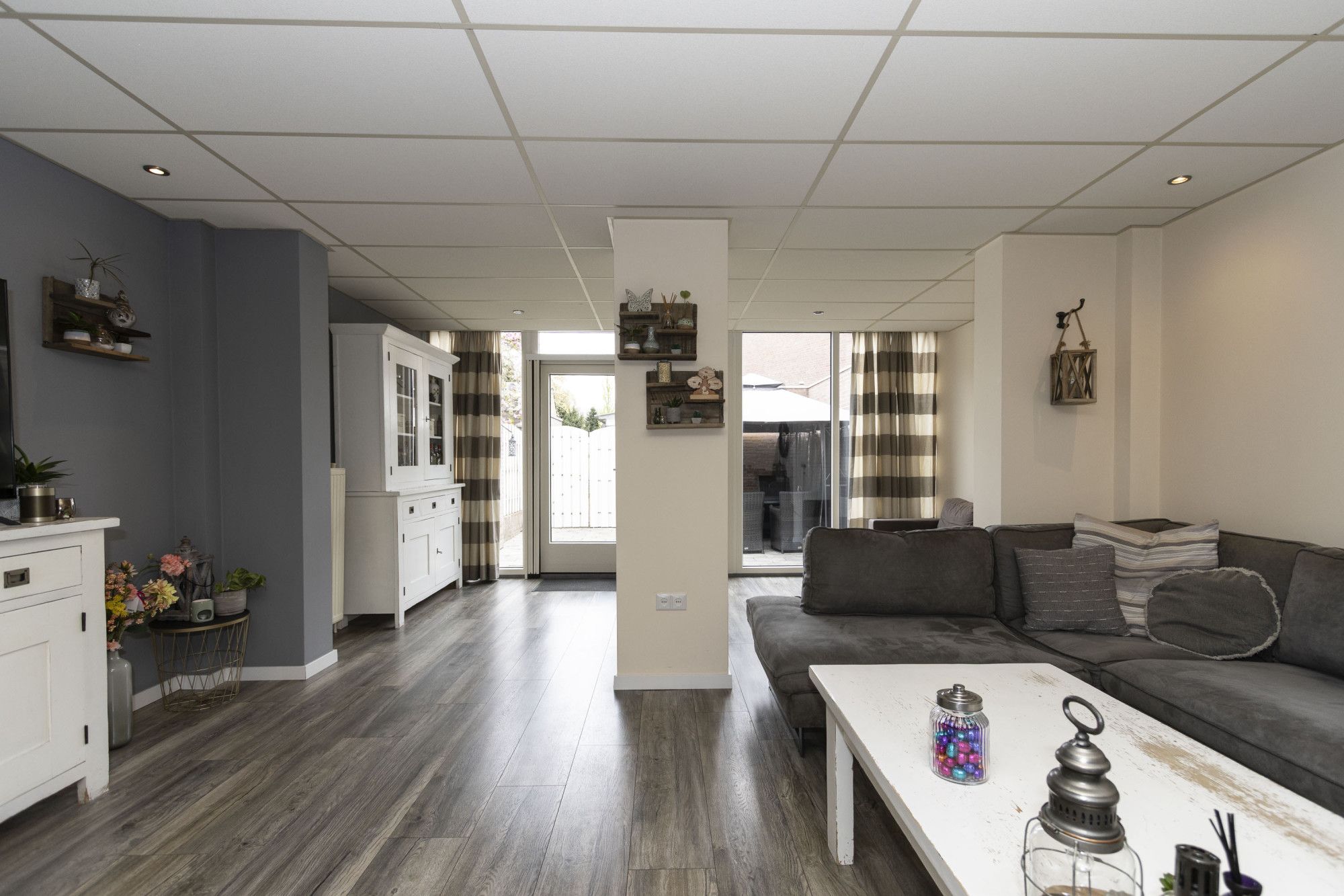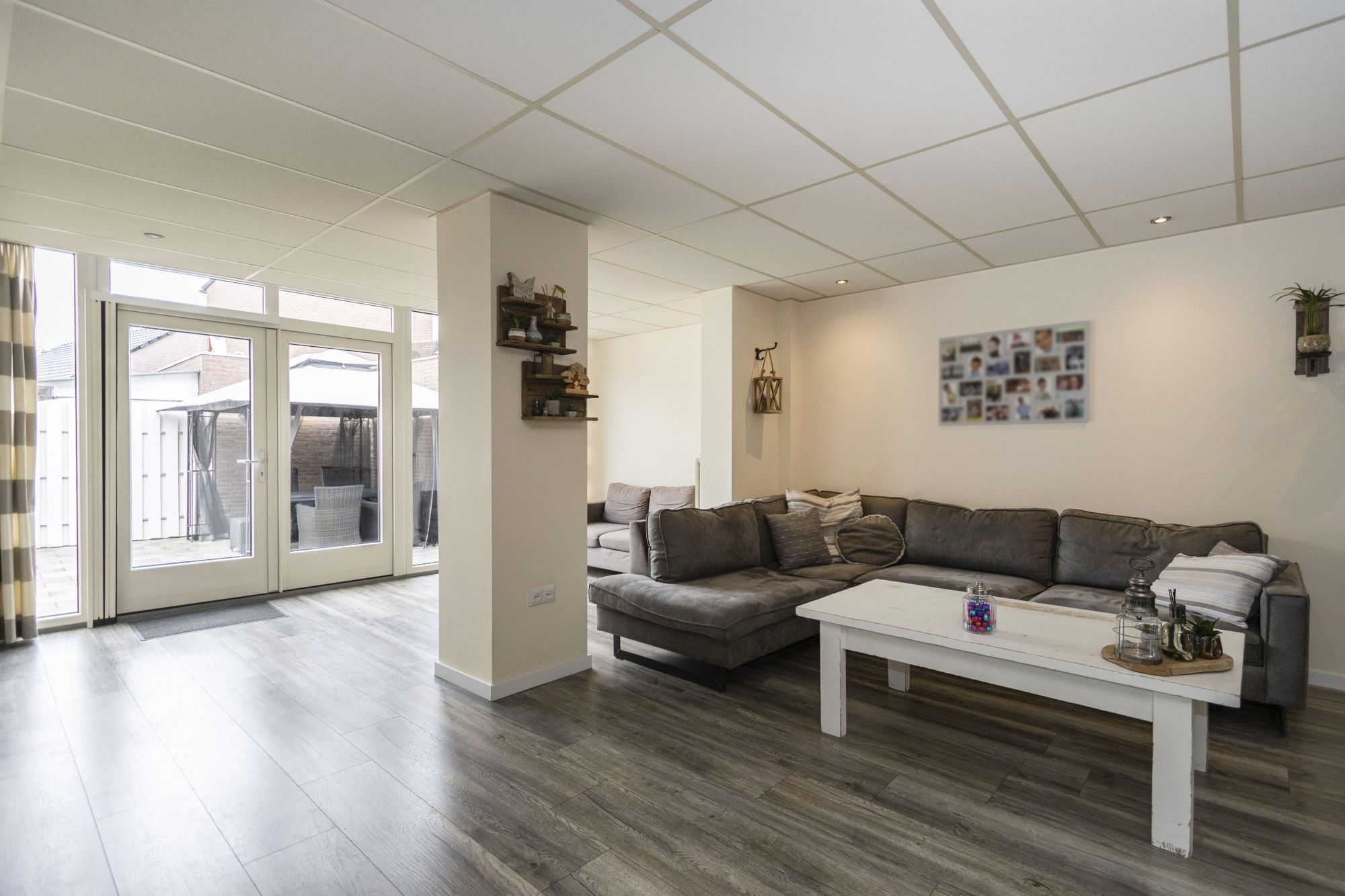 Via de entree met garderobe, toilet en meterkast bereik je de woonkamer. De woonkamer is voorzien van een moderne vloer, strakke wanden en grote ramen richting de tuin. Door de aanbouw biedt de ruimte voldoende plek voor een royale zithoek en een eettafel.