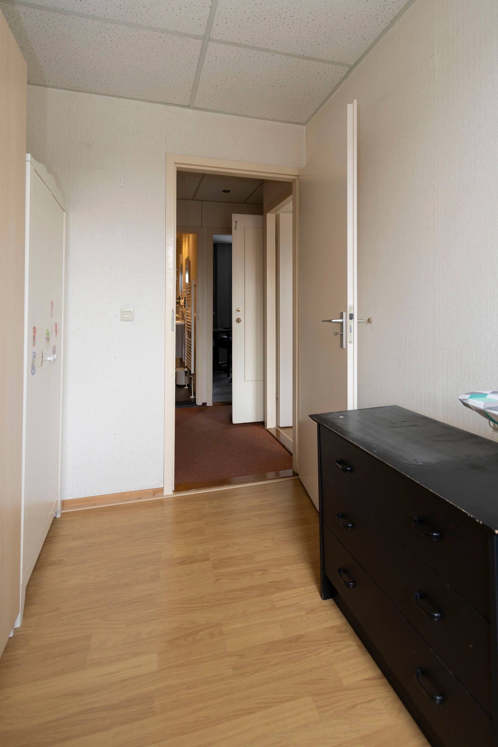 Op de eerste verdieping bevinden zich drie slaapkamers, allen voorzien van een moderne vloer, HR++ glas en rolluiken. De kamers zijn ideaal als slaap-, werk- of kinderkamer.