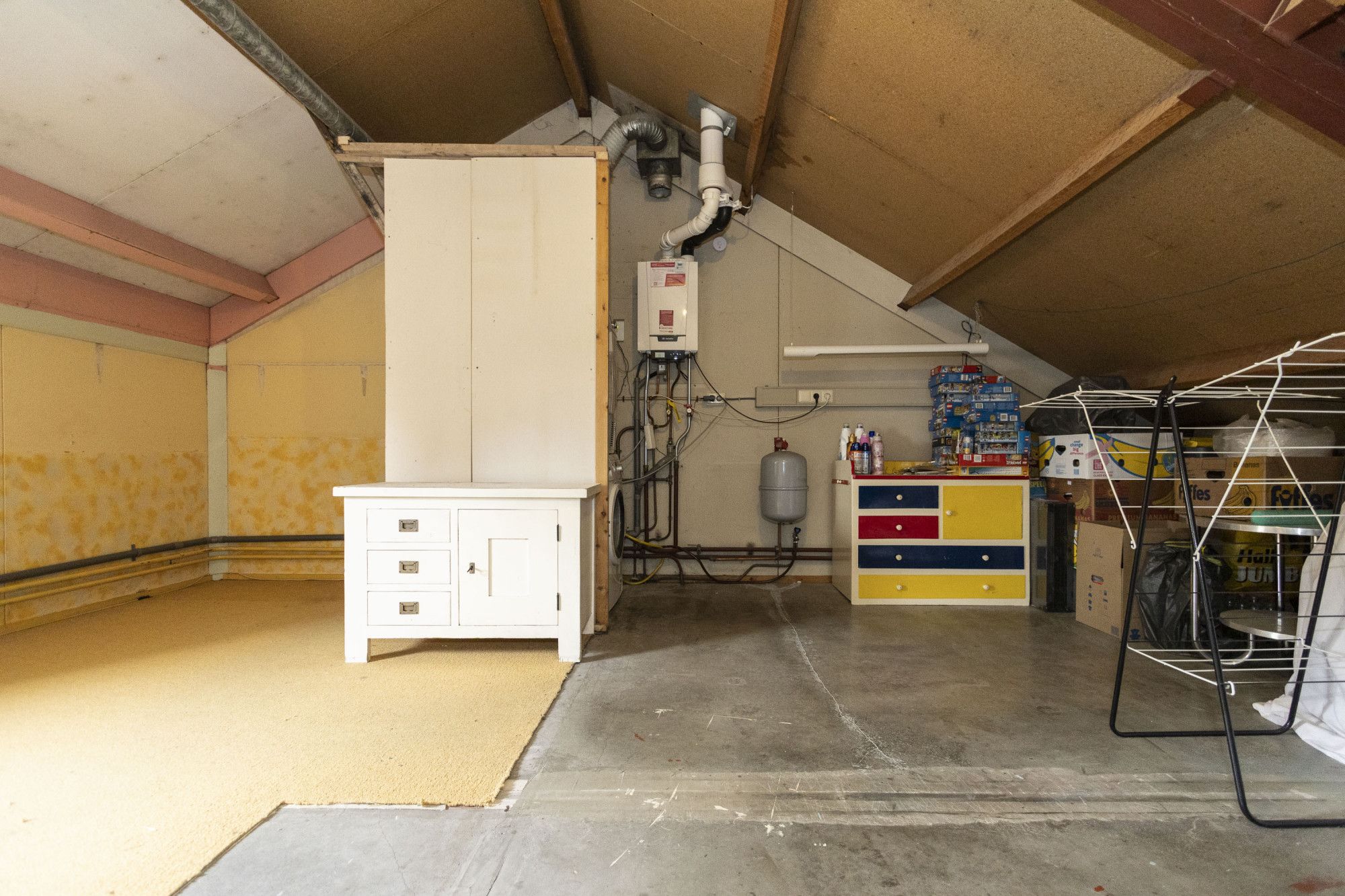 Via een vaste trap is de tweede verdieping bereikbaar. Deze verdieping biedt extra ruimte voor opslag, hobby of een extra slaapkamer. De aanwezigheid van een raam zorgt voor natuurlijk licht. Ook bevindt zich hier de cv-ketel (Remeha 2019).