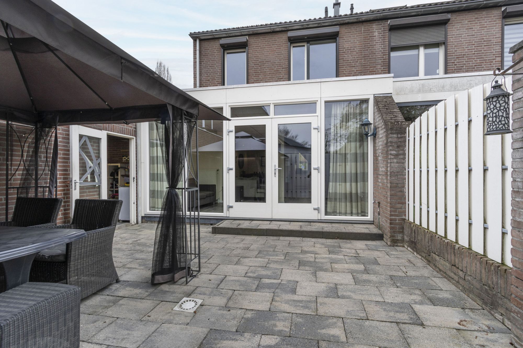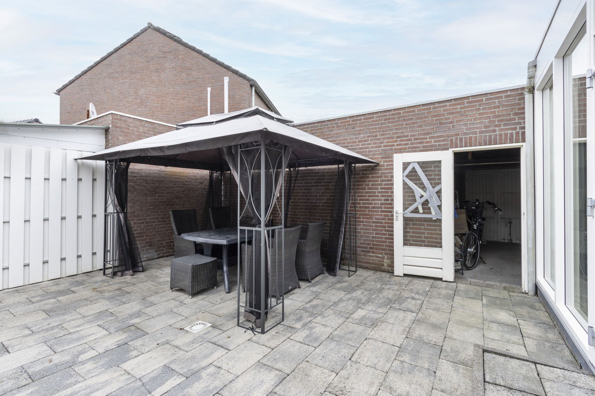 • Onderhoudsvriendelijke achtertuin met nette bestrating en directe toegang tot de garage