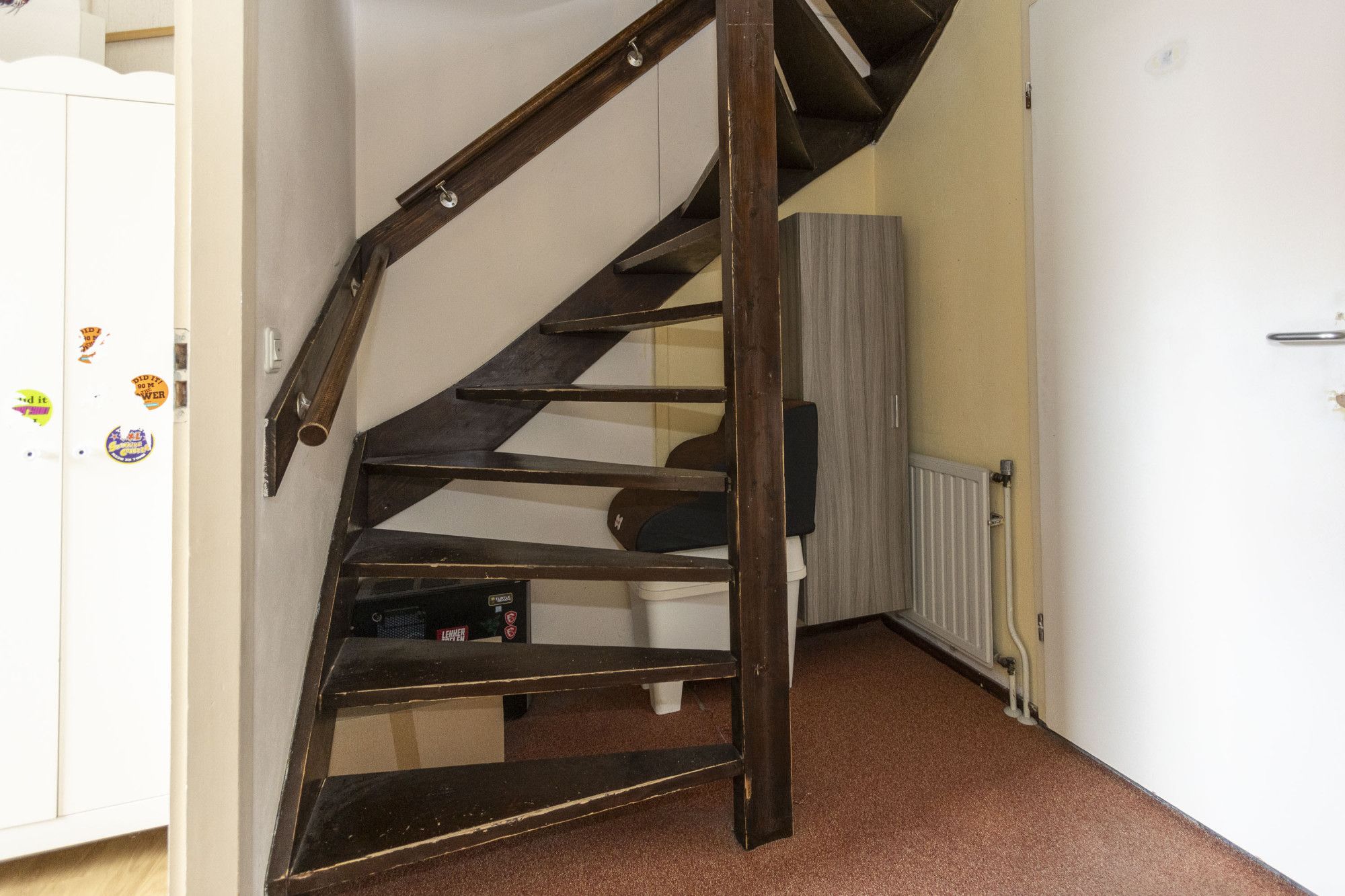 Vanuit de woonkamer de trap naar de eerste verdieping.