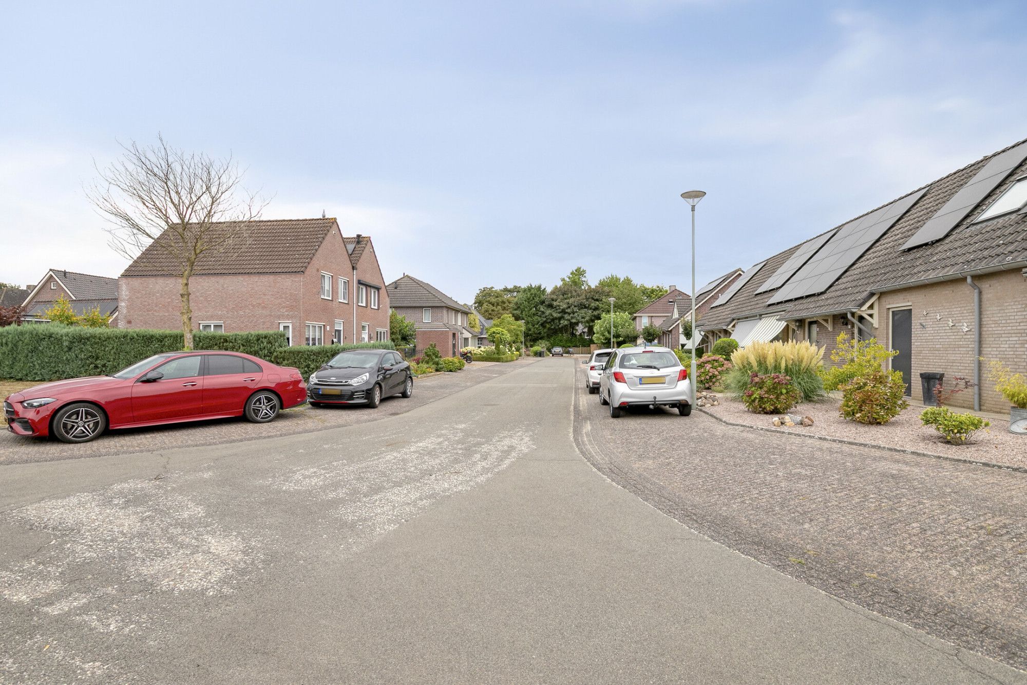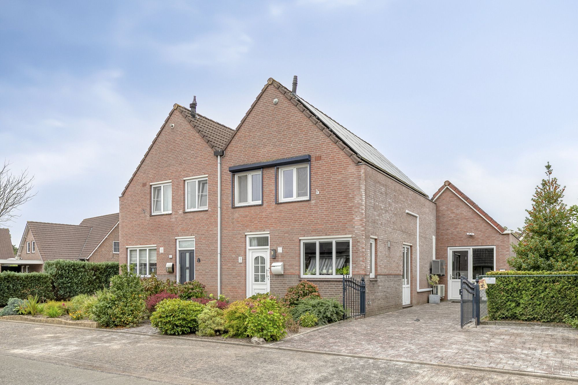 De indeling omvat een lichte woonkamer met open keuken, drie slaapkamers, een complete badkamer, een bergzolder en een aanbouw met vloerverwarming. De privacy biedende tuin op het zuidwesten heeft een zonneluifel en een houten berging. Aan de voorzijde bevindt zich een ruime oprit met parkeermogelijkheid voor twee auto’s en een afsluitbaar hek.