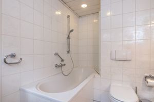 Op deze verdieping bevinden zich twee badkamers. De kleinste badkamer is voorzien van een ligbad, toilet en wastafel met meubel.