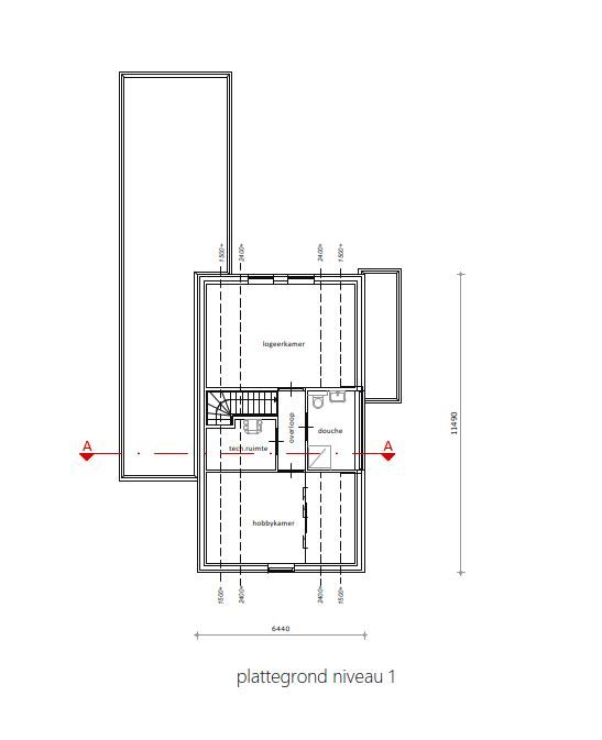 De trapopgang bevindt zich in de entree/hal. De overloop biedt toegang tot 2 slaapkamers en een 2e badkamer. Bovendien is er een technische ruimte voorzien voor de optelling van installaties.
