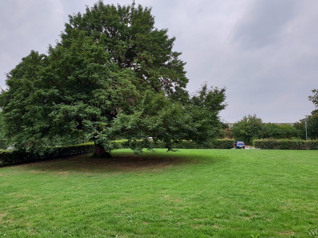 De woonkamer is volledig gestuct en biedt een mooi uitzicht op het fraaie groenplantsoen.
