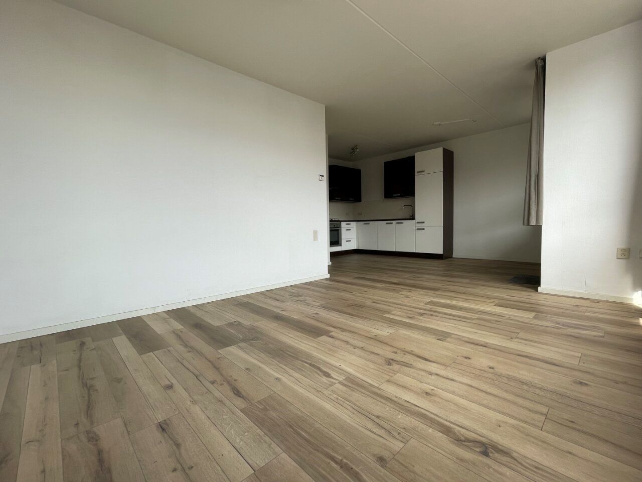 Ruime woonkamer (4,38 x 3,53 m) voorzien van pvc vloer, alwaar toegang tot balkon (2,16 x 1,67 m).