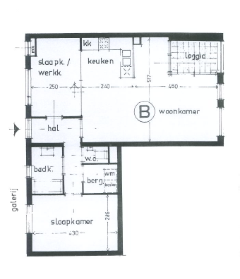Entree/hal met toegang naar de woonkamer en slaapkamer 1 van ca 9 m2. Ruime woonkamer met toegang tot het balkon. Aangrenzend is de keuken in hoekopstelling gesitueerd. Vanuit de woonkamer is een tussen-hal te bereiken welke toegang bied tot toilet, berging, badkamer en slaapkamer 2 van ca 12 m2.