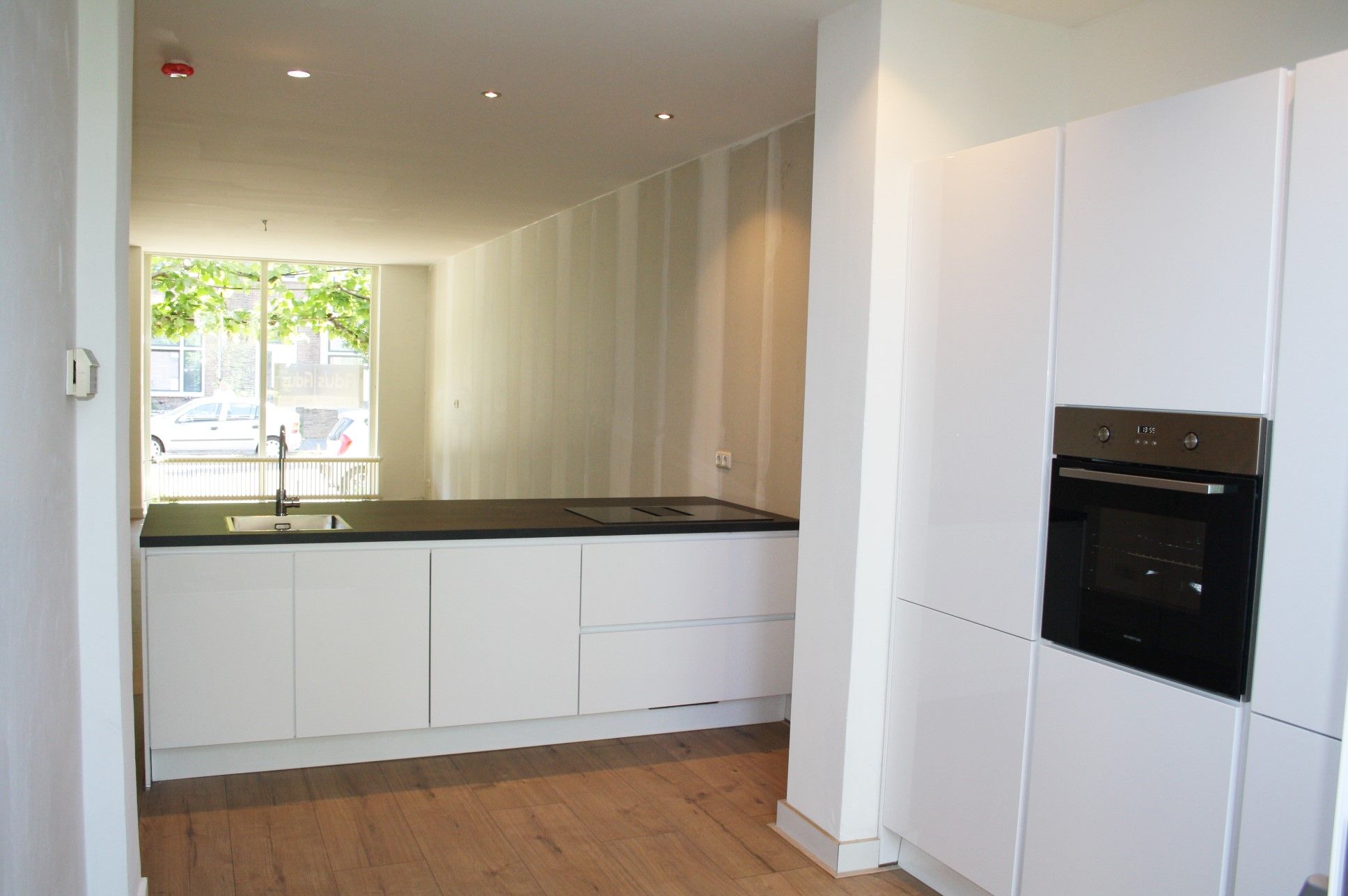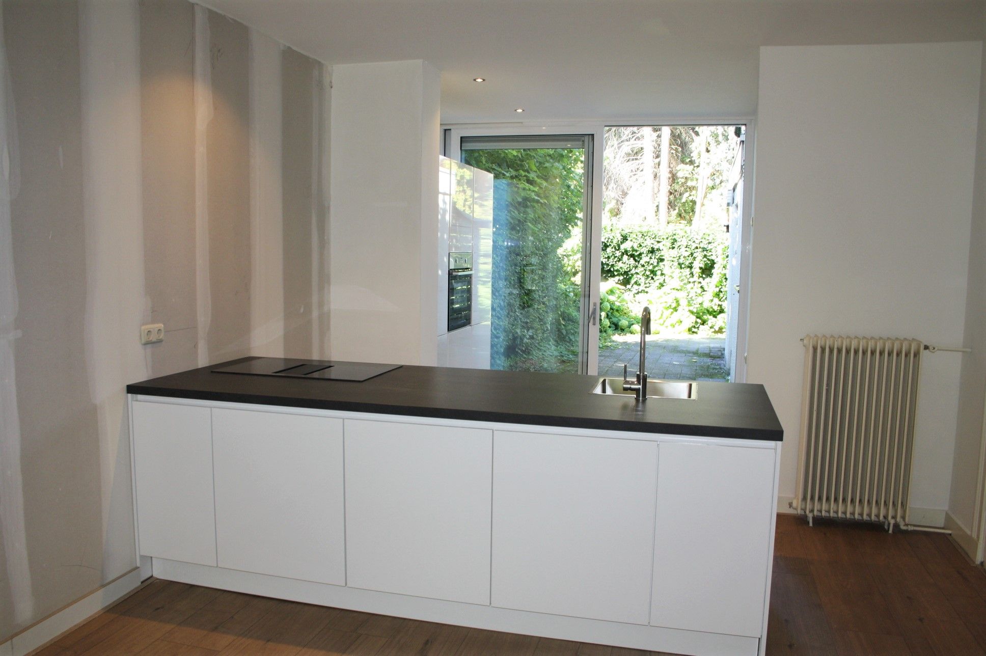 Royale hal/entree. Woonkamer (11.70 x 3.90/2.85) voorzien van mooie laminaatvloer en open keuken. De keuken is voorzien vaan een moderne en luxe aanbouwkeuken met apparatuur (inductiekookplaat, afzuiging, koelkast, diepvriezer, heteluchtoven, vaatwasser). Vanuit de keuken is middels een schuifpui de tuin bereikbaar. Hal naar bijkeukens. Bijkeuken 1 (3.00 x 2.26) met keukenblok en standplaats cv-ketel. Bijkeuken 2 (3.55 x 2.98) met deur naar tuin.