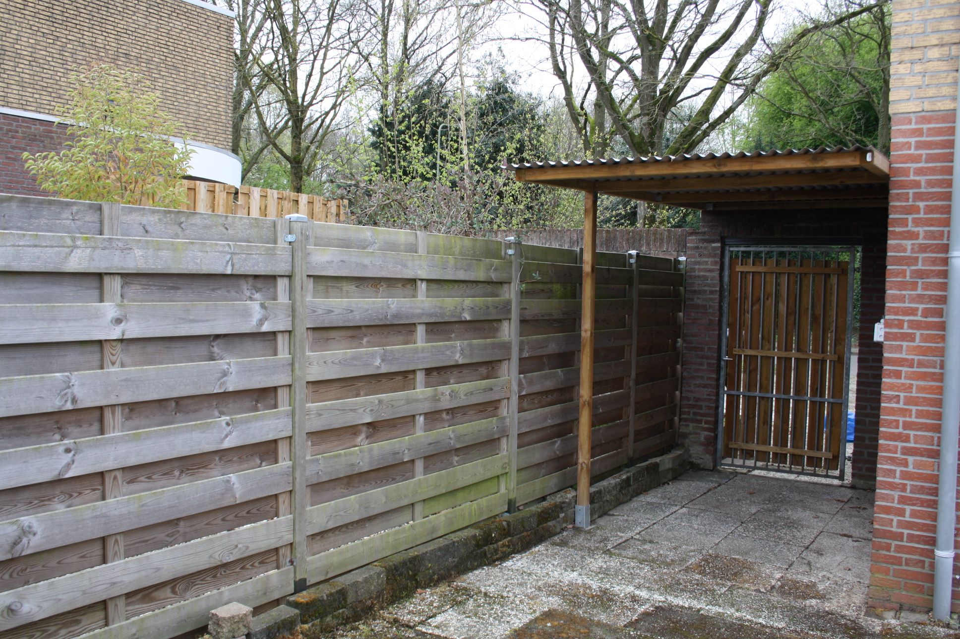Voortuin met ruime oprit en afsluitbare poort naar de achtertuin.