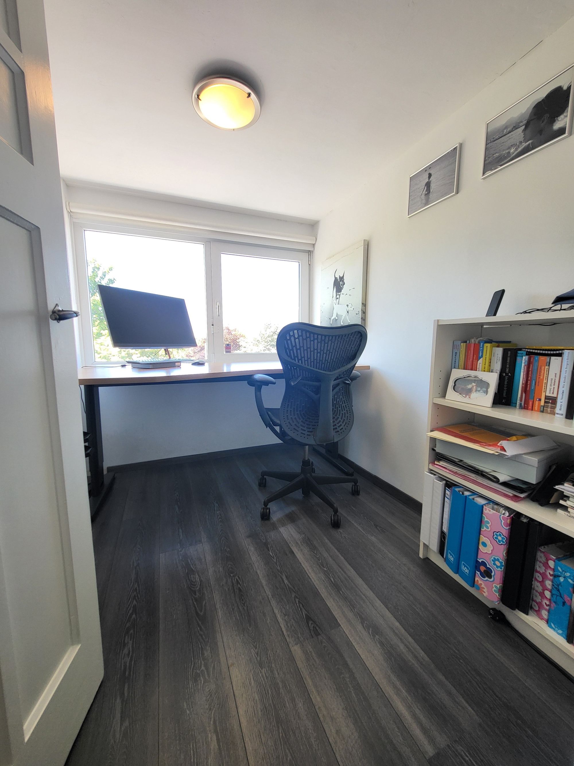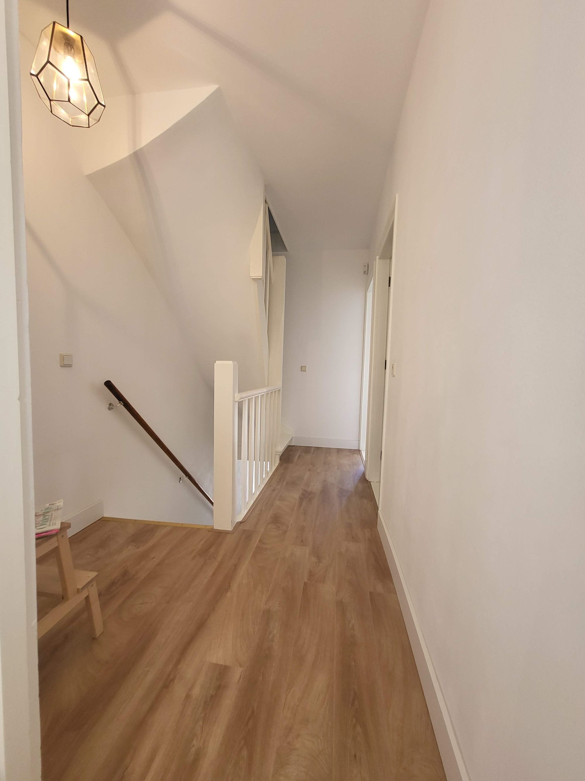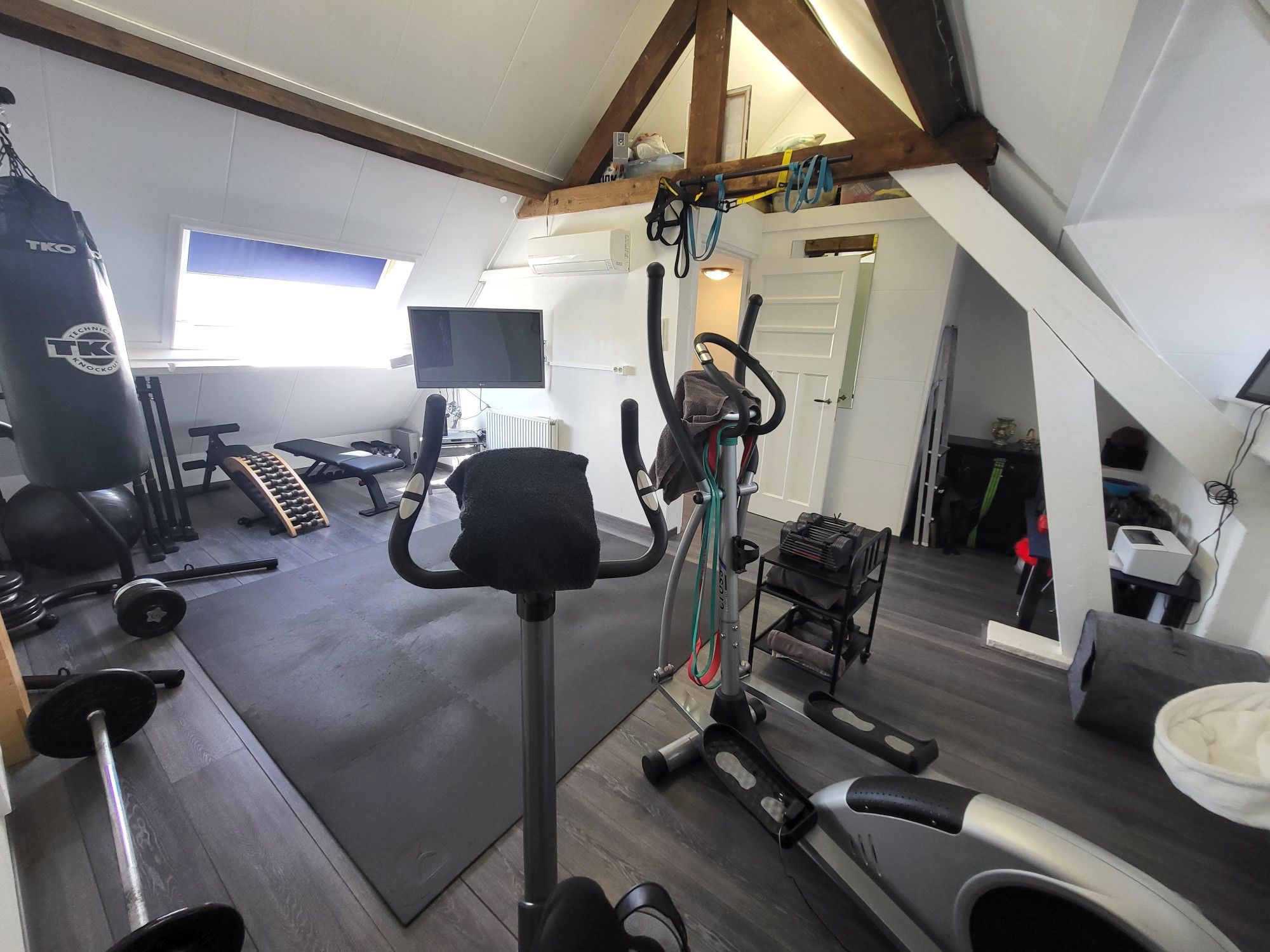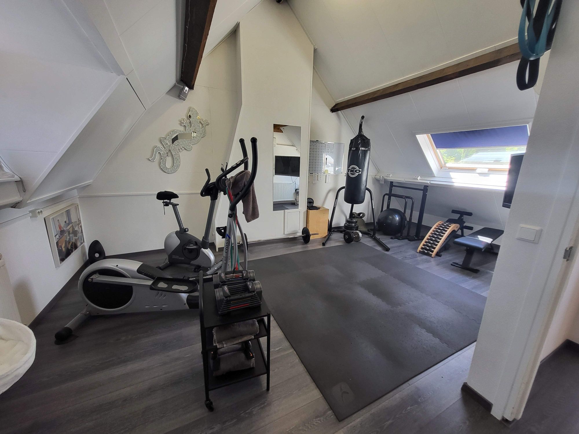Middels vaste trap te bereiken overloop met toegang tot een compacte werkkamer en de zolderruimte welke op dit moment fungeert als sportruimte.
