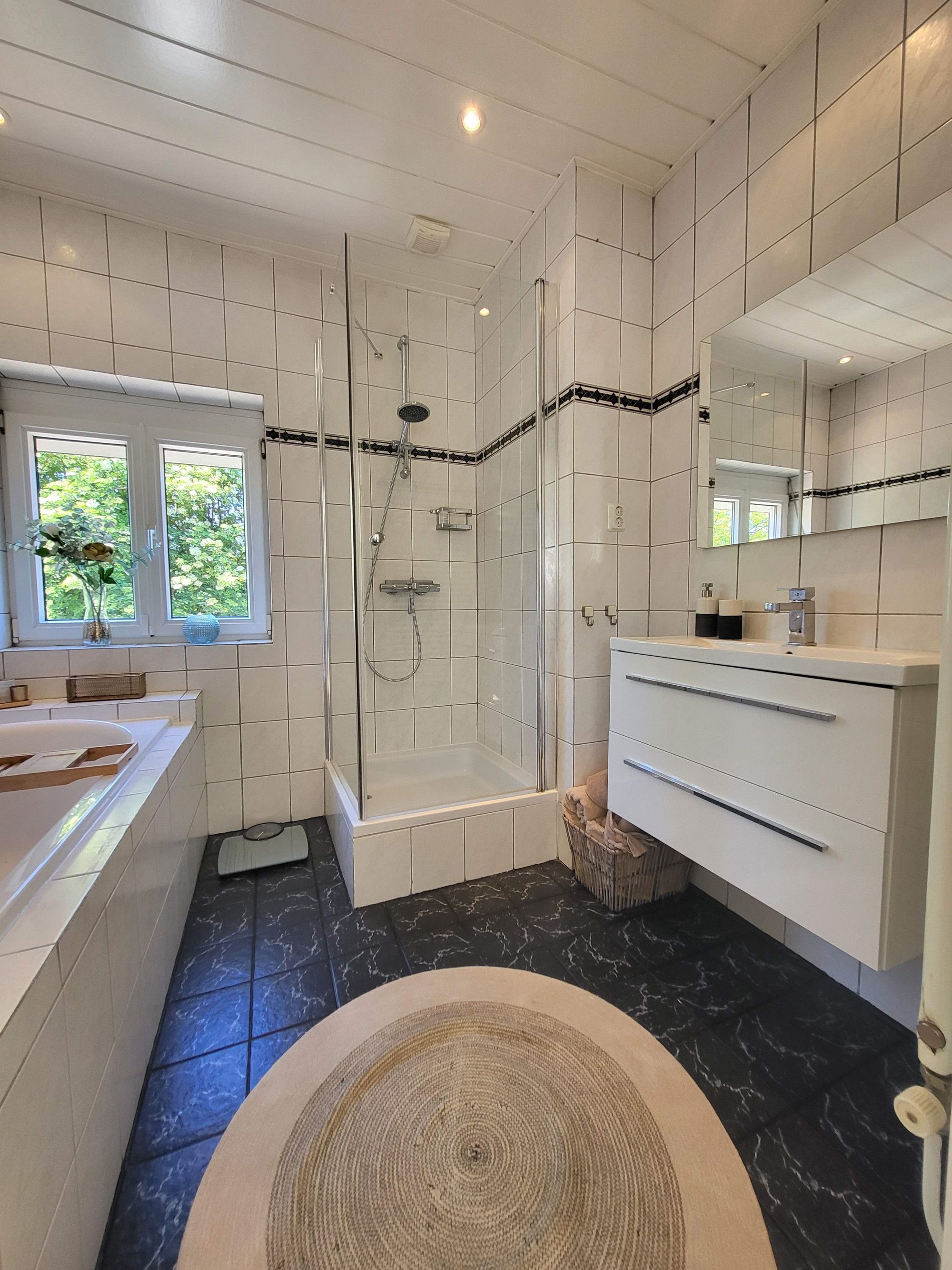 Ruime overloop met toegang tot de ruime slaapkamer (17m2), walk in kamer met kastenwanden (12m2), tussen kamer met vaste kastenwand (9m2) en de badkamer welke is voorzien van een ligbad, aparte douche en wasmeubel en de trapopgang naar de tweede verdieping.