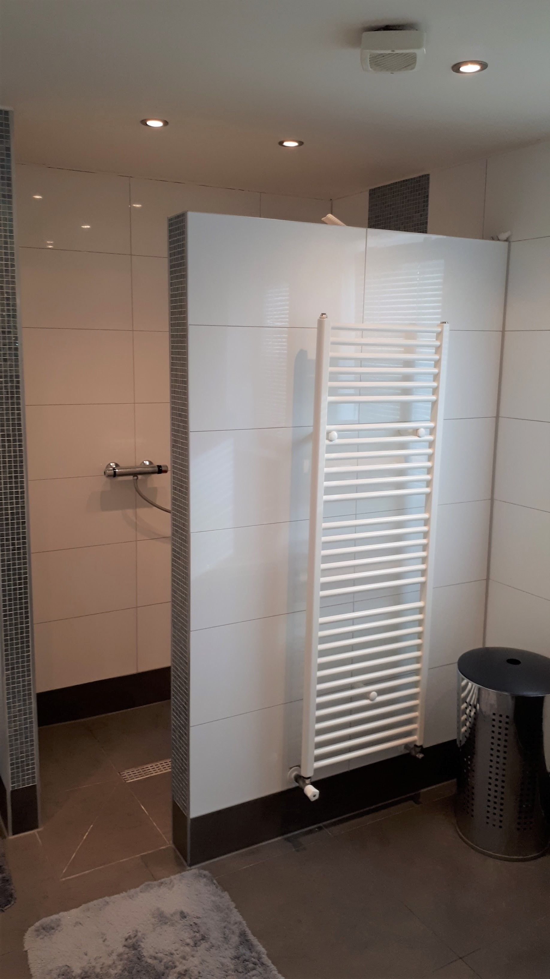 First floor: spacious landing with skylight. 3 bedrooms of 14m2 / 12m2 / 12m2 respectively. From the large bedroom also direct access to the walking closet and bathroom. The modern bathroom has a bath, walk-in shower, toilet, double sink and designer radiator.