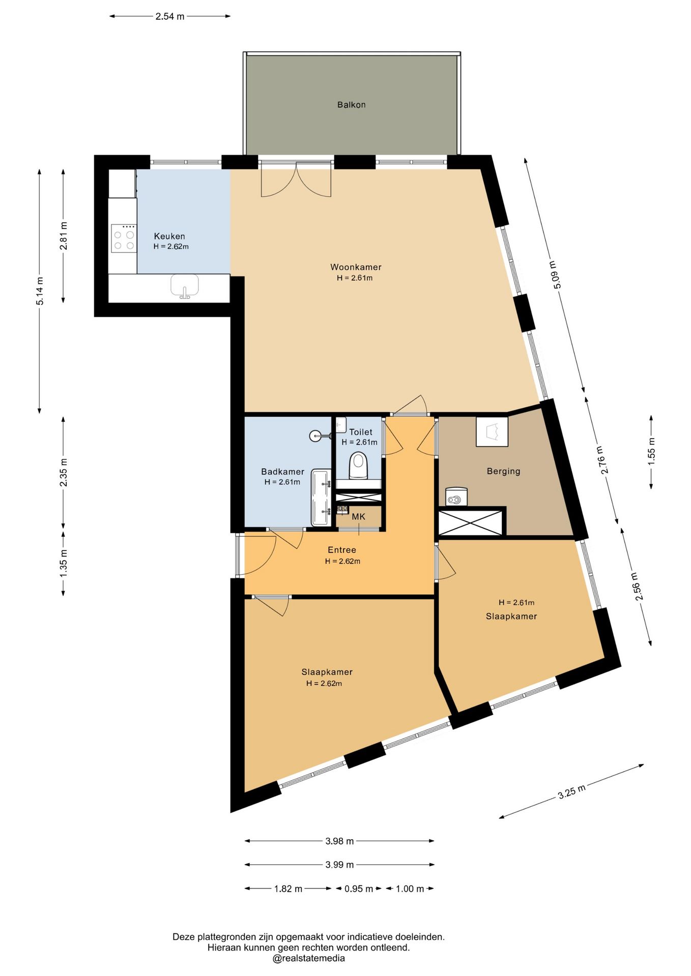 VVE kosten: €166,50 (incl. o.a. onderhoud, opstal- en glasverzekering en reservering)
