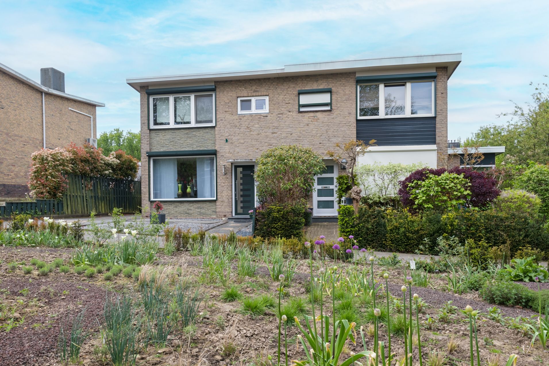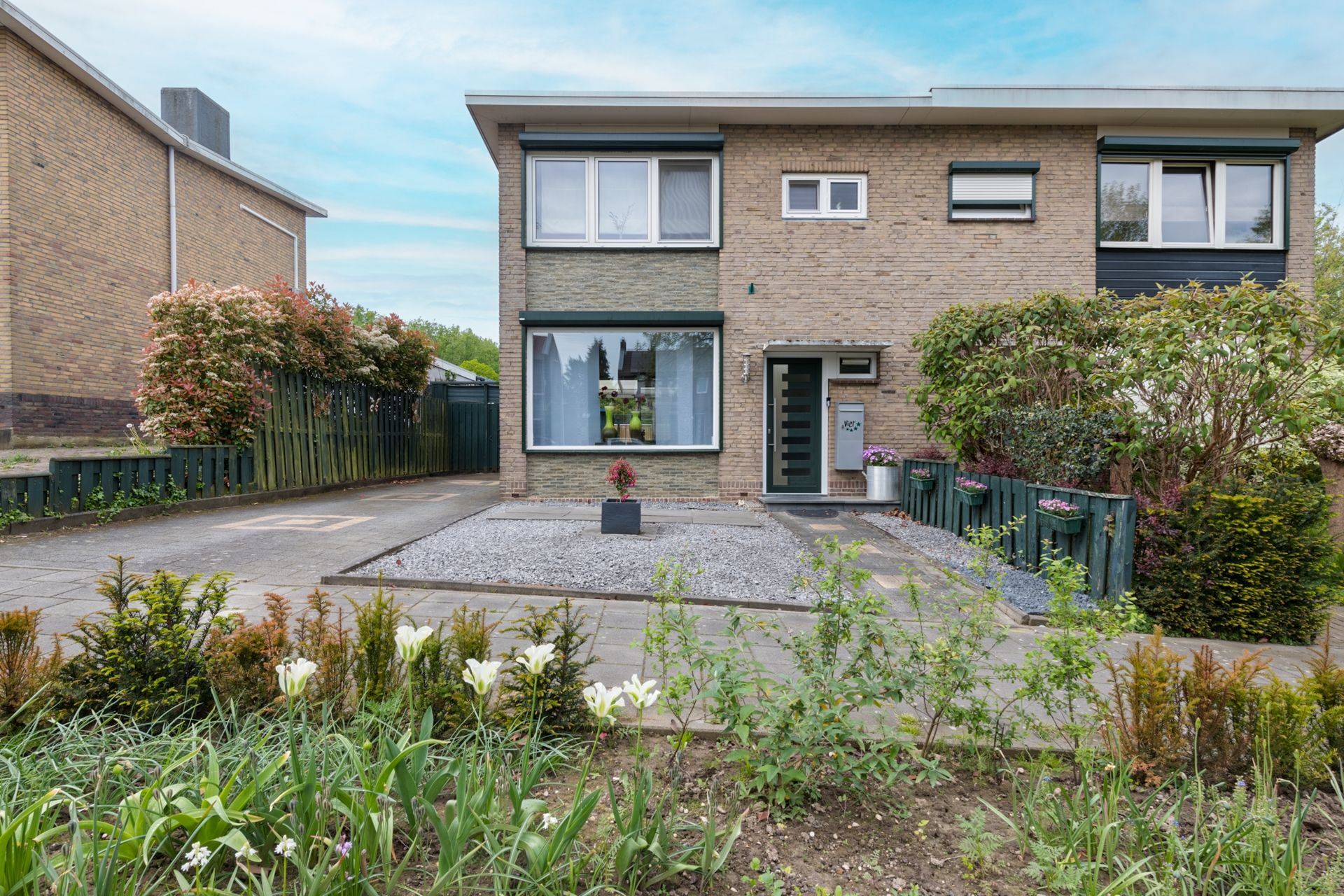 De voortuin is door de huidige bewoners ook geheel onderhoudsvrij ingericht.