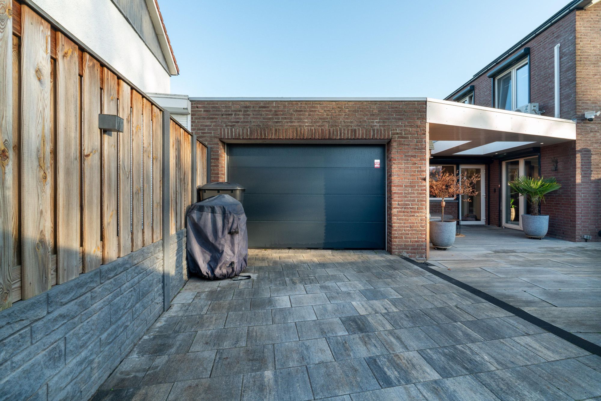 Garage(4.65mx4.06m) betegelde vloer en vaste wastafel, aansluitpunten wasmachine en droger.