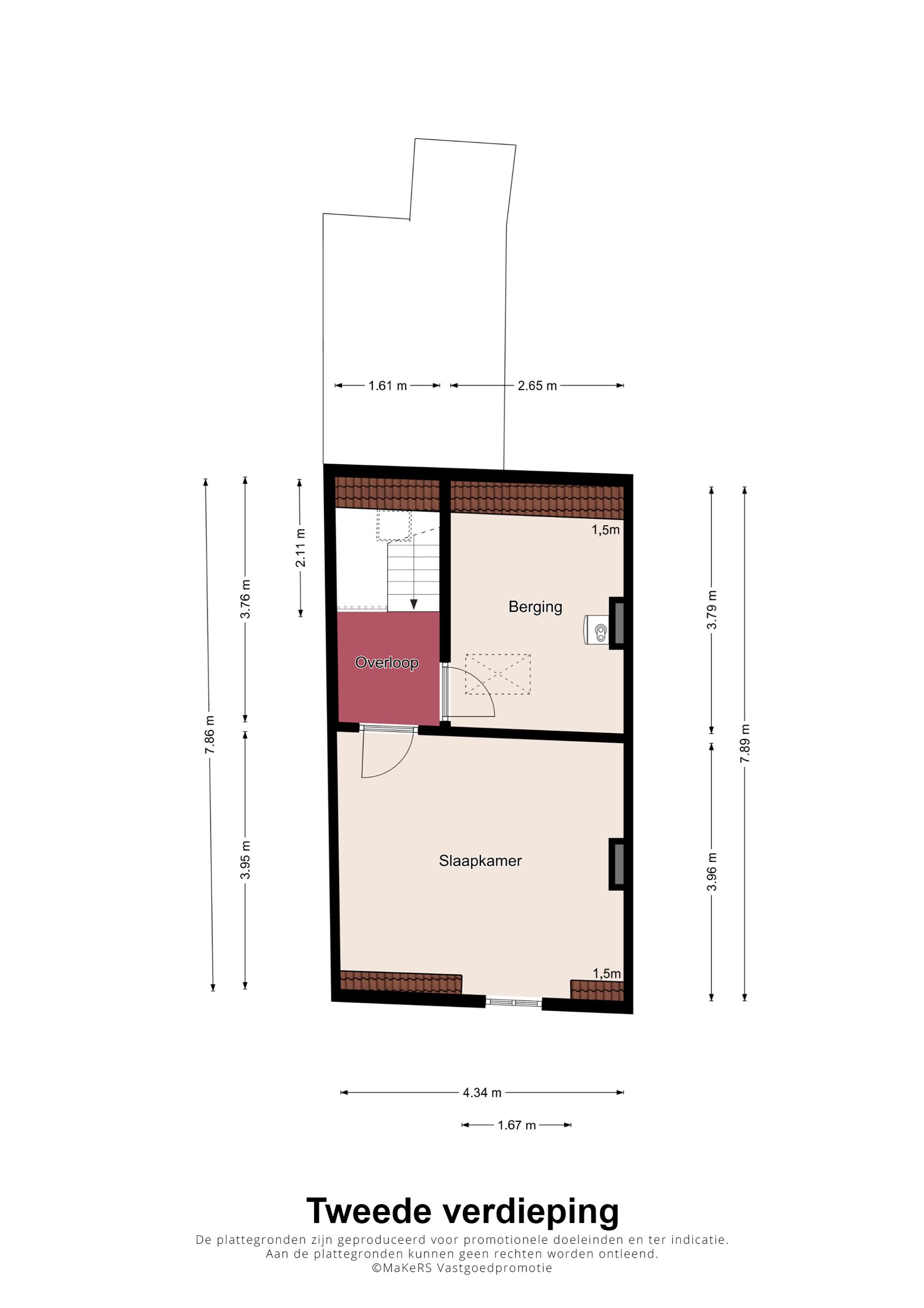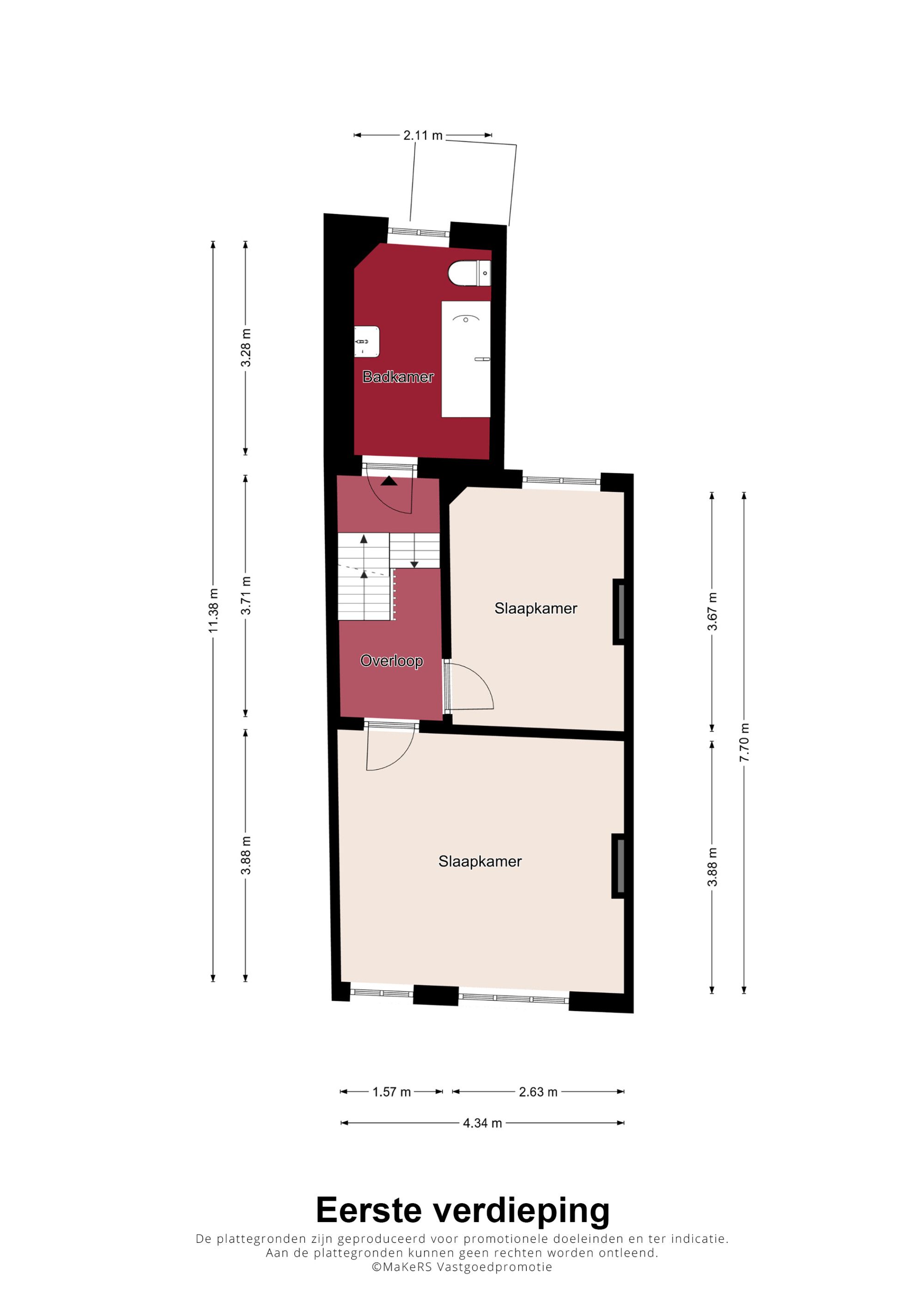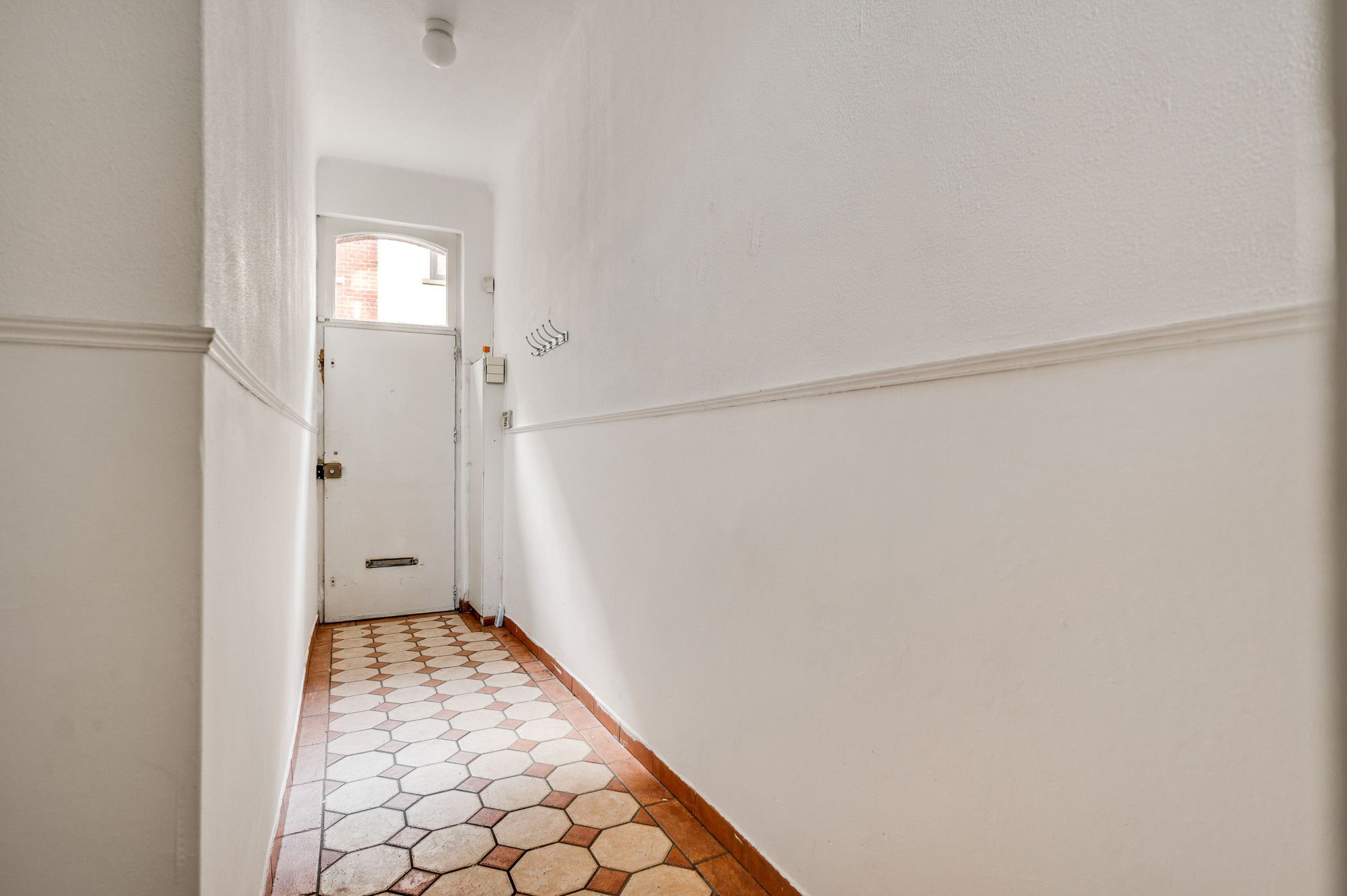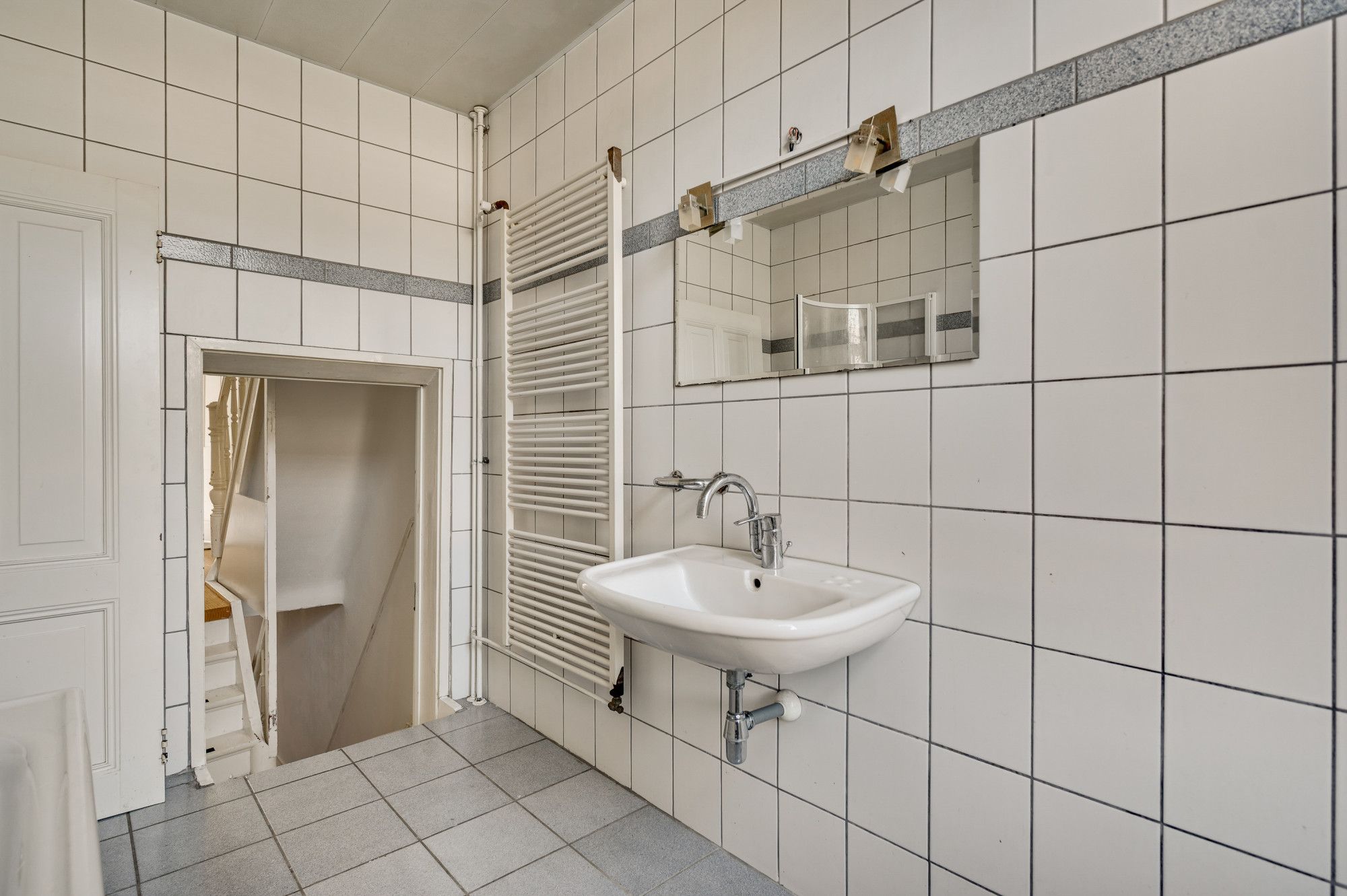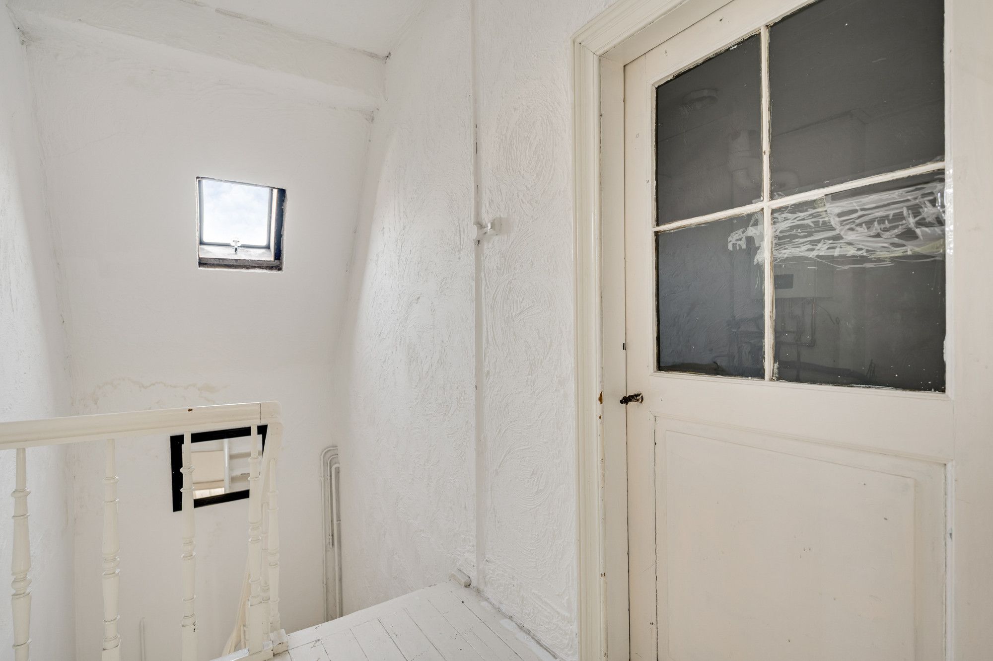 Vanuit het bordes betreedt u de badkamer. De eenvoudige badkamer beschikt over een bad-/douchecombinatie, toilet en wastafel. Vanuit de overloop verder toegang tot de eerste 2 ruime slaapkamers. Beide slaapkamers bieden voldoende ruimte voor een tweepersoonsbed. De slaapkamer aan de achterzijde heeft sfeervol zicht op de stadstuin.