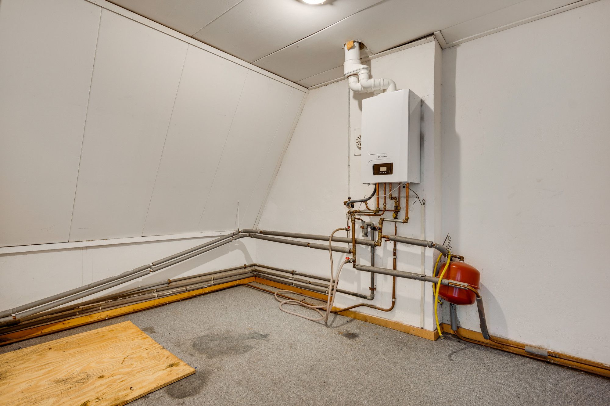Te bereiken via een vaste trap; overloop en toegang tot de royale 3e slaapkamer en de berging/wasruimte. Deze ruimte heeft de opstelling voor de cv-installatie (Remeha Avanta HR, 2024, eigendom) en de aansluitingen voor het witgoed. Vanuit hier is er nog toegang tot de vliering.